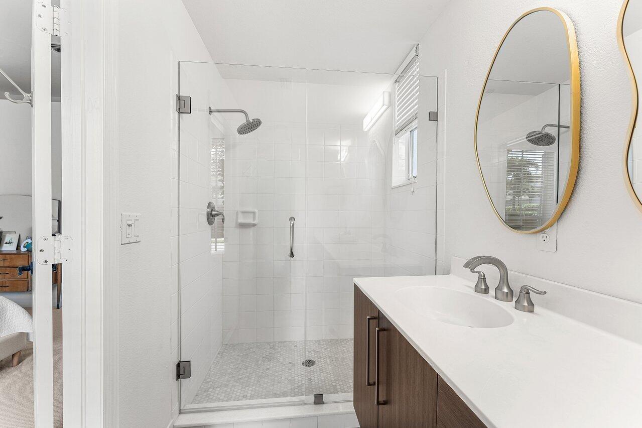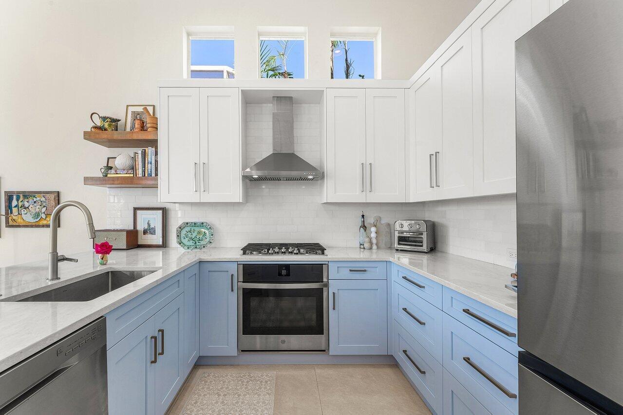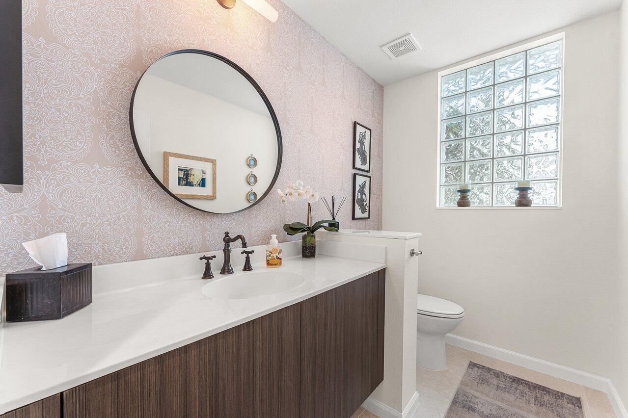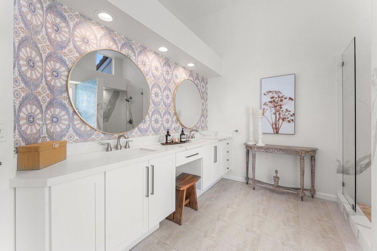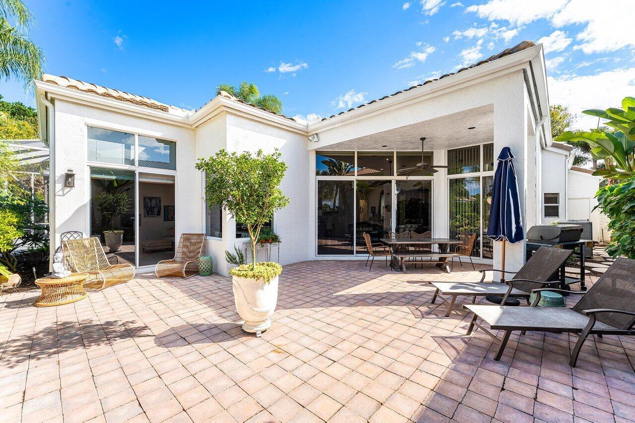 Immediate Full Golf Membership Opportunity! Skip the waitlist! Welcome to 112 Sunset Bay Drive in award-winning BallenIsles Country Club. Set at the Professional tee box of the picturesque 9th Hole, Par 5 of the South Course, this charming home enjoys some of the most magnificent sunsets in all of BallenIsles given its' Western rear exposure! This beautifully renovated home offers timeless style and creates a sense of calm the moment you arrive. Featuring 3 bedrooms (one of which is currently an office), 2 1/2 baths and 2 car garage, the meticulously maintained 2,193sf living space is designed with classic finishes offering serenity in perfect balance with practical use. Upon entry, beautiful 40x40 imported Portuguese porcelain tile and soaring 12 foot ceilings create an open, airyinterior. Floor to ceiling windows and sliding glass doors allow for abundant light and brightness throughout the home. The fully renovated kitchen, bathrooms, laundry room, new flooring and custom cabinetry throughout along with a 2018 new roof allow you to enjoy this move-in-ready home from the day of purchase! The Gourmet Kitchen showcases beautiful white and pale blue shaker cabinetry, stainless appliances, a gas range, thoughtfully planned pantry and abundant storage. Adjoining the kitchen is a breakfast nook and cozy family room with a built-in window seat offering the perfect place to relax and unwind while taking in the outdoor view of the patio and golf course. The Primary Suite features an extremely large closet fitted with custom built-in shelving. The fully updated spa-like Primary bathroom showcases dual vanities with custom cabinetry topped with gorgeous porcelain. The stunning porcelain also surrounds the bathtub and continues with fabulous full slabs in the shower offering seamless cleaning. A private water toilet completes the large Primary bathroom. The Guest Bedroom is oversized providing space for guest seating and plenty of room to add a desk for remote work. The En-Suite guest bathroom has an updated vanity and flooring. The Office/Den can easily be converted into a 3rd bedroom and adjoining half bath can also be converted into a full bath. The redesigned interior laundry room with beautiful Spanish tile, sink and cabinetry from California Closets offers a pleasing welcome when entering the home from the garage. Step outside into the spacious patio which can either offer privacy or allow for great views of the golf course. Perfect for entertaining and taking in the beautiful sunsets! Sunset Bay offers a neighborhood pool just a short walk away. Don't miss your opportunity to secure your Full Golf Membership (mandatory purchase in addition to the home price) and begin enjoying all of the amenities and leisurely lifestyle of BallenIsles! Ballenisles Country Club is recognized as a 5-star platinum rated club offering world class amenities and facilities with three championship golf courses, a top rated tennis & pickleball facility, beautiful newly renovated clubhouse and sports complex, six dining options, fitness center, spa & salon, community pool, dog park, walking paths, and so much more!