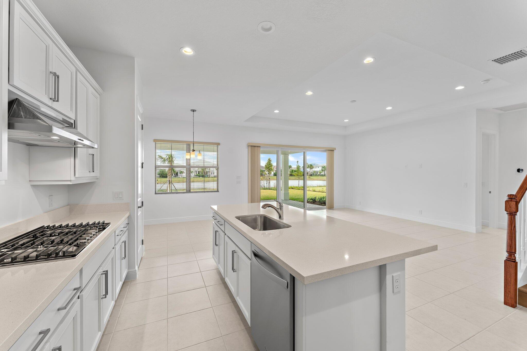 Beautiful WATERVIEW! NO CARPET AT ALL for those who don't like carpet as the house has upgrades with luxury flooring on the 2nd floor and stairs. Offering 5 Bedrooms, 3 Bathrooms, A Dedicated Office & A 3 Car Garage. Step Inside This Magnificently Upgraded Home With Neutral Wood Look Tile Floors And Open Concept Kitchen That Overlooks the Family Room. The Kitchen Boasts Wood Shaker Style Cabinetry With Modern Hardware, White Quartz Countertops, SS Appliances, GAS Cooktop, and Spacious Pantry. ALL Impact Windows & Doors, Beautiful Wood Staircase. Your Guests Will Enjoy Complete Privacy With the Guest Room And Full Bathroom On the First Floor.The Second Level Includes 3 Additional Guest Bedrooms With A Shared Guest Bathroom, Large Open Loft, Laundry Room With Cabinetry and water sink