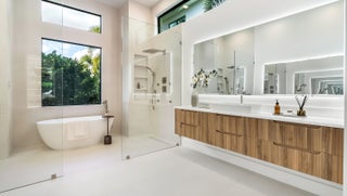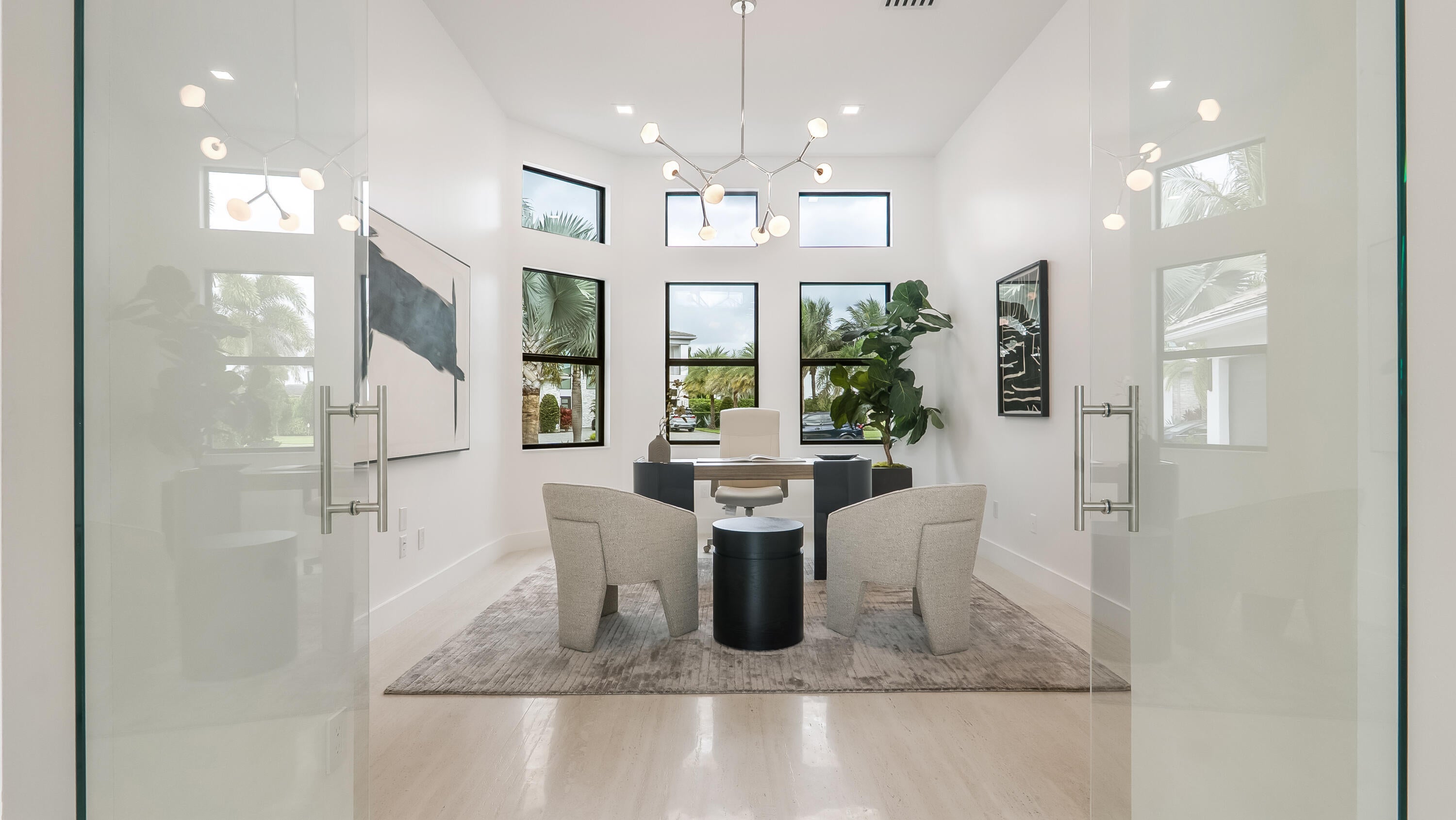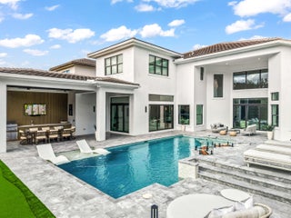 A true architectural masterpiece located within the prestigious Boca Bridges community; this residence has undergone a complete redesign and rebuild with no builder grade materials remaining. Essentially a brand new custom home, the transformation was just completed in December 2025 and reflects an uncompromising commitment to luxury, craftsmanship, and design. Offering an exceptional two story layout, the home includes six bedrooms, seven full bathrooms, two half bathrooms, a private office, a spacious loft, a custom movie theater with Martin Logan surround sound, and a three car garage. The home is introduced by dramatic 48 x 48 Spanish porcelain flooring throughout the main living areas, paired with rich custom Reserve hardwood floors in the bedrooms and along the staircase.Designer lighting and refined finishes are showcased throughout, creating a sophisticated yet warm atmosphere. The custom kitchen is a statement of both form and function, featuring leathered Bianco Rhino quartzite countertops, custom cabinetry, and a professional appliance suite by Wolf, Sub Zero, and Viking, ideal for everyday living and elevated entertaining. The primary suite is a private retreat, highlighted by a spa inspired bathroom with a luxurious wet room featuring separate his and her showers, a designer soaking tub, Hansgrohe fixtures, and smart EPLO electric toilets. Every bathroom in the home reflects the same level of detail and craftsmanship, finished with imported tile from Spain and premium materials throughout. The backyard is a true resort style oasis, perfectly positioned on an extremely private south facing lot with no rear neighbors. Designed for entertaining and relaxation, the outdoor space features a fully upgraded pool, an expanded covered summer kitchen with grill and pizza oven, outdoor fireplace, putting green, new turf, lush landscaping, and a full exterior lighting package. Whether hosting gatherings or enjoying quiet evenings, this backyard delivers the ultimate Florida lifestyle. This extraordinary residence inside Boca Bridges is more than a home. It is a work of art that must be experienced in person to be truly appreciated.