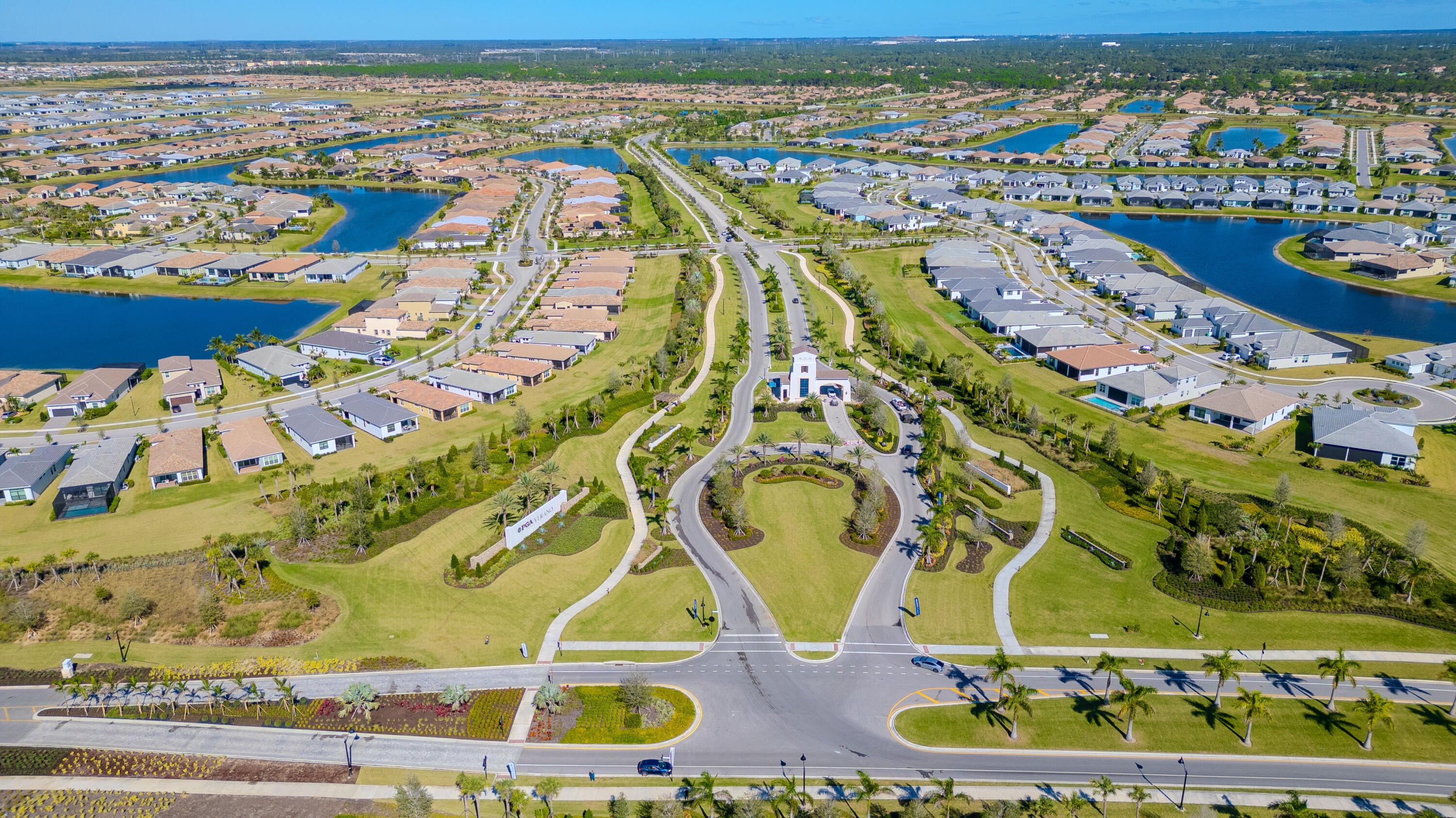 This Madison model with extension is a beautifully designed 3-bedroom, 2-bath home with a flex room and 2-car garage, offering exceptional versatility. The flex space can easily function as a 4th bedroom, formal dining room, or home office. A gourmet kitchen anchors the home, seamlessly connecting the main living areas for both everyday comfort and entertaining.The thoughtfully planned layout places the secondary bedrooms at the front of the home, while the Owner's Suite is privately tucked away at the rear, creating a true retreat. Highlights include a tray ceiling, split vanities, and a spacious wrap-around walk-in closet.Resort-style living at PGA Village Verano, with pickleball, pools, fitness, tennis, golf access, and a full-time Lifestyle Director.