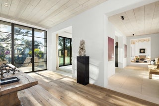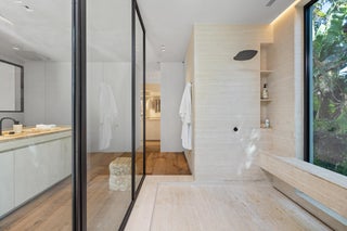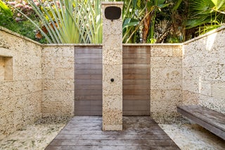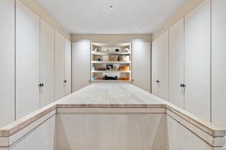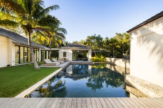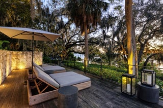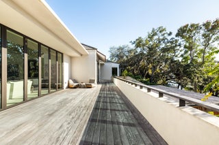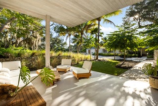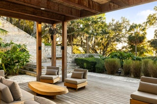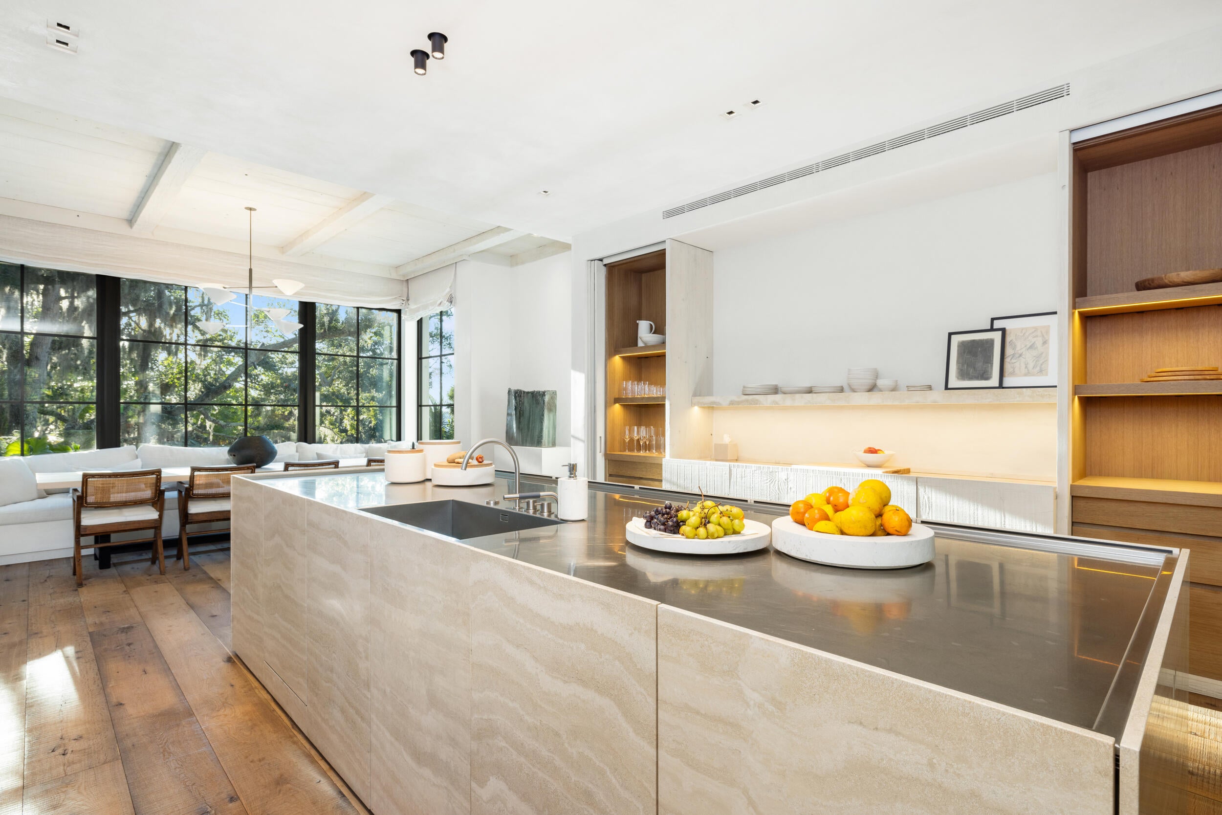 Known as River House, this newly completed riverfront estate of international distinction is elevated atop a commanding 30 foot bluff in Sewalls Point, spanning 4.3 acres and capturing sweeping, mile long sunset views across the St. Lucie River.Conceived as a modern Bahamian retreat, the residence blends imported Belgian modern materials with warmth, restraint, and timeless elegance. The architecture unfolds as a series of distinct pavilions in stone, oak, and plaster, thoughtfully positioned to embrace the land, the river, and effortless everyday living. The home has been internationally recognized and featured in Vogue Australia for its refined design and craftsmanship.Curated by Melhorn Architecture & Construction with interiors by Design Studio JAC, the estate reflects a level of intention and craftsmanship rarely achieved, resulting in a residence designed for longevity rather than trends. Dominican coral flooring, creamy lime plaster walls with Roman clay texture, and expansive walls of glass create a calm, gallery like backdrop for art and waterfront vistas. Vaulted ceilings accented by reclaimed European oak beams lend depth and permanence, while subtle variations in tone and texture define an atmosphere of quiet luxury. Outdoor living is seamlessly integrated through impact glass wall systems, with a resort style pool, expansive deck spaces, and lush gardens extending the living areas into the landscape and down toward a private beach. Mature oak and banyan trees frame the setting, reinforcing the estate's sense of privacy, scale, and serenity. A world class boating compound offers deep water dockage with multiple lifts, accommodating vessels over 100 feet with ease while providing direct access to the inlet and open ocean. The estate is further complemented by a private guest house, three garages with capacity for up to 17 vehicles, and meticulously designed grounds. Thoughtfully curated from architecture to landscape, River House represents a generational waterfront offering. Timeless in design, rich in detail, and among the most distinguished estates in South Florida.