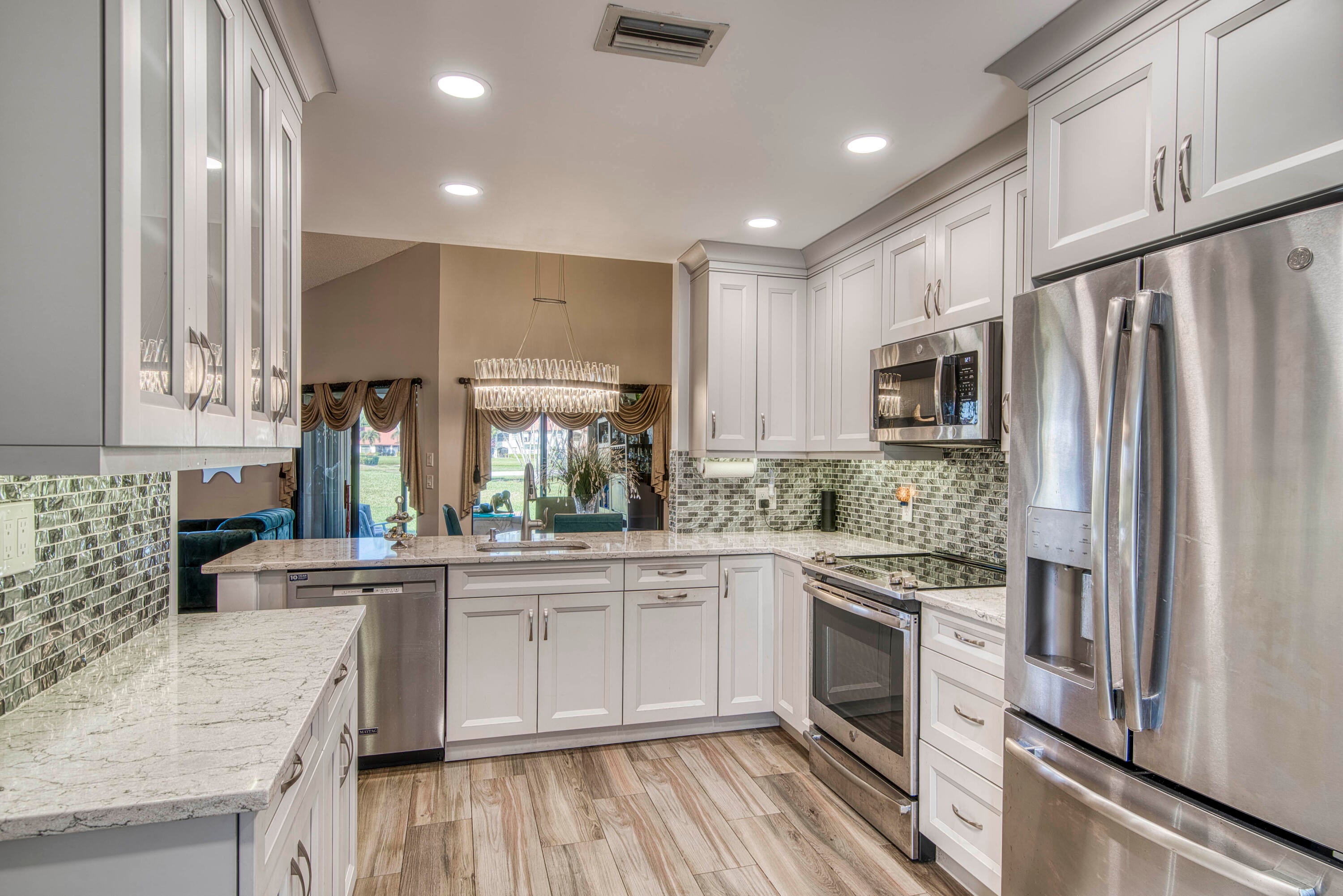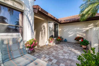 Welcome to this beautifully maintained villa in The Moorings at Aberdeen East, a desirable community with NO mandatory membership. This 2-bedroom, 2-bath home with attached garage features a private paved courtyard, mature landscaping, and low-maintenance living. Inside, enjoy a bright open floor plan with neutral finishes, flexible living/dining areas, and an updated eat-in kitchen with modern appliances and ample cabinetry. The spacious primary suite offers a walk-in closet and en-suite bath; the guest bedroom is versatile for visitors, office, or hobbies. Additional highlights include a Florida room overlooking the lake, unique side yard, shutters, well-maintained sliding doors/screens, and epoxy garage floor. Residents enjoy pools, fitness center, tennis, pickleball, clubhouse, andtheater, all near highways, shopping, dining, and beaches.