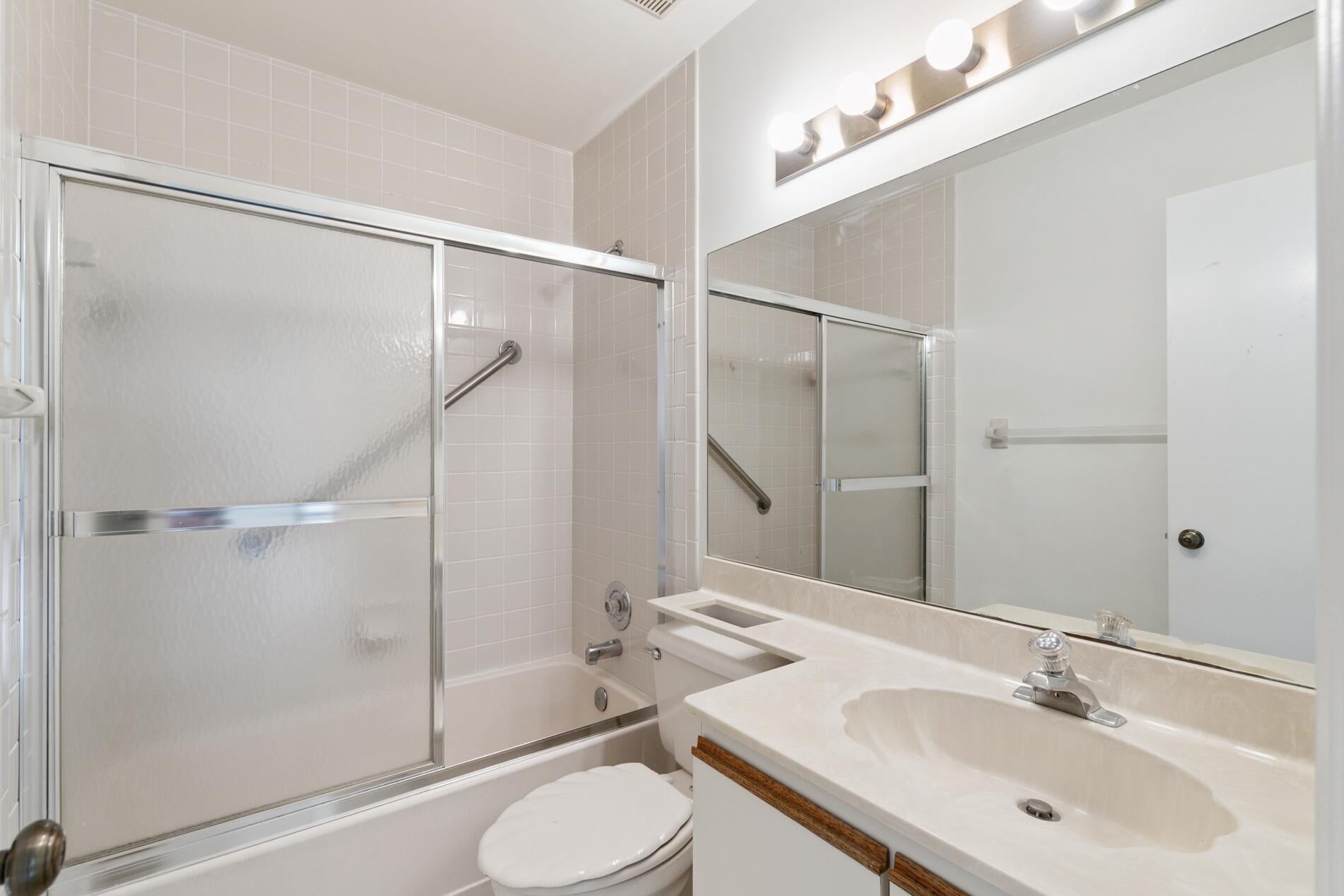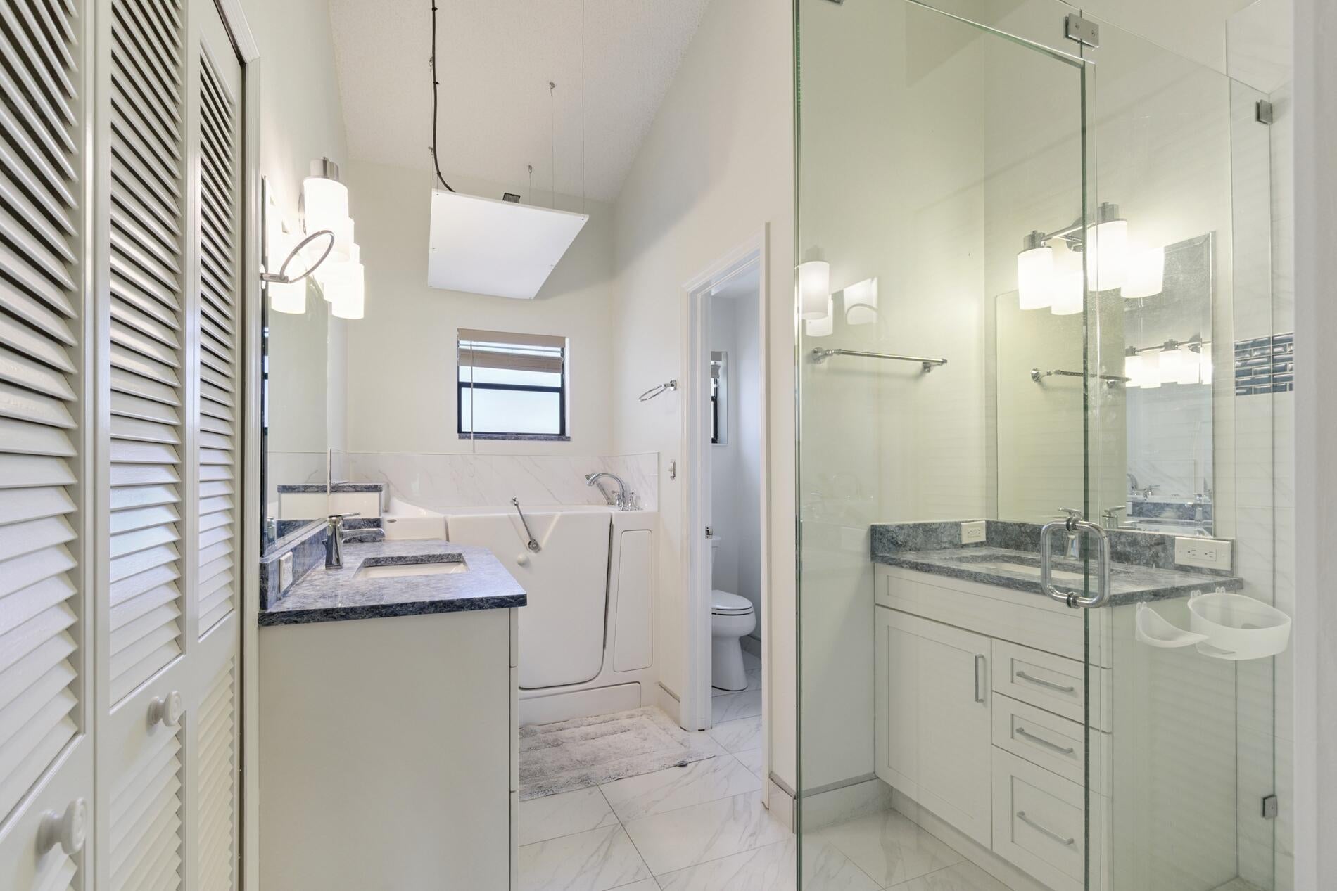Aberdeen Shores 55+ No Equity Membership Required, Discover the potential of this 2-bedroom, 2-bath villa in the sought-after Aberdeen Shores community of Boynton Beach. A NEW ROOF (2025), fresh interior paint, vaulted ceilings, and abundant natural light provide a solid foundation for you to make this home your own. Enjoy tranquil water views that add to the relaxed South Florida lifestyle.The primary suite is generously sized and features a large walk-in closet, enclosed patio, and an updated bath with dual sinks, a luxurious walk-in spa tub with warming panel, and a separate walk-in shower with dual shower heads. The home offers an excellent layout with room for personal updates and customization. Plus, community clubhouse with pool, tennis, pickleball.