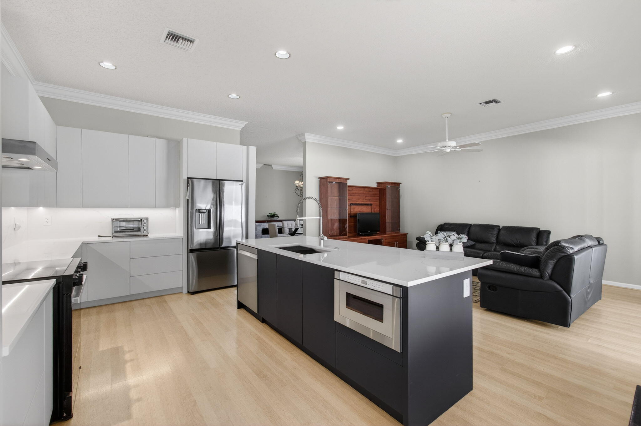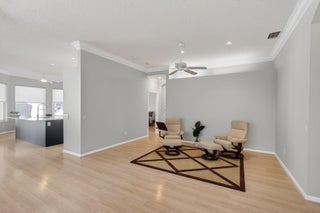 IMMACULATE RENOVATED MOVE-IN READY 3BR Mediterranean model in lush 55+ Valencia Lakes. New Roof. This contemporary home features blonde oak laminate flooring, crown molding, sleek Euro kitchen cabinetry, SS appliances, eat-in brkfst nook, amazing ensuite Bathroom with freestanding tub, renovated guest bath, Master walk-ins w/ wall safe, Formal DR, built-in office in BR3, screened lanai. ''The Friendliest Valencia'' offers: Newly renovated clubhouse !! New Cafe by Bagel Twins, Open Daily !! New Pickleballl Courts w/ League play !! New Bocce courts !! Full-time Lifestyle Director !! Dog-friendly community !! Plus, Fitness program, Tourny Billiards, Arts Programs, Theater troupe, Karaoke, Clubs galore !!