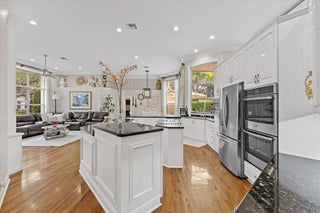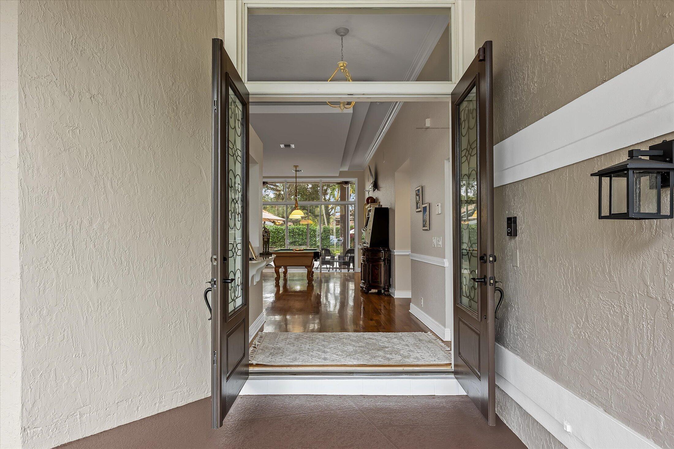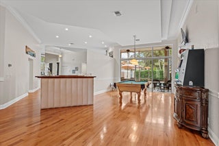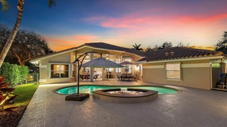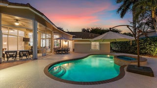SPACIOUS & quiet, this single-owner 4-bed, 3.5-bath home is perfectly positioned on a corner lot on a double cul-de-sac. The large kitchen layout and family room create a great area for everyday living and entertaining. Gorgeous new wall unit with 3 TVs will keep everyone entertained! Storage and space is abundant throughout: 3 walk-in closets in the primary suite and 2 pantry closets in the kitchen. The oversized 3-car garage provides extra room for large vehicles, storage, or hobbies. Major upgrades include a 2020 ROOF, full accordion hurricane shutters, and impact-rated front & garage doors. Outdoors, relax on your front porch and in the backyard, enjoy a partial screened-in patio & a heated pool & spa, completely fenced-in. Gated community. Walk to A-rated schools!