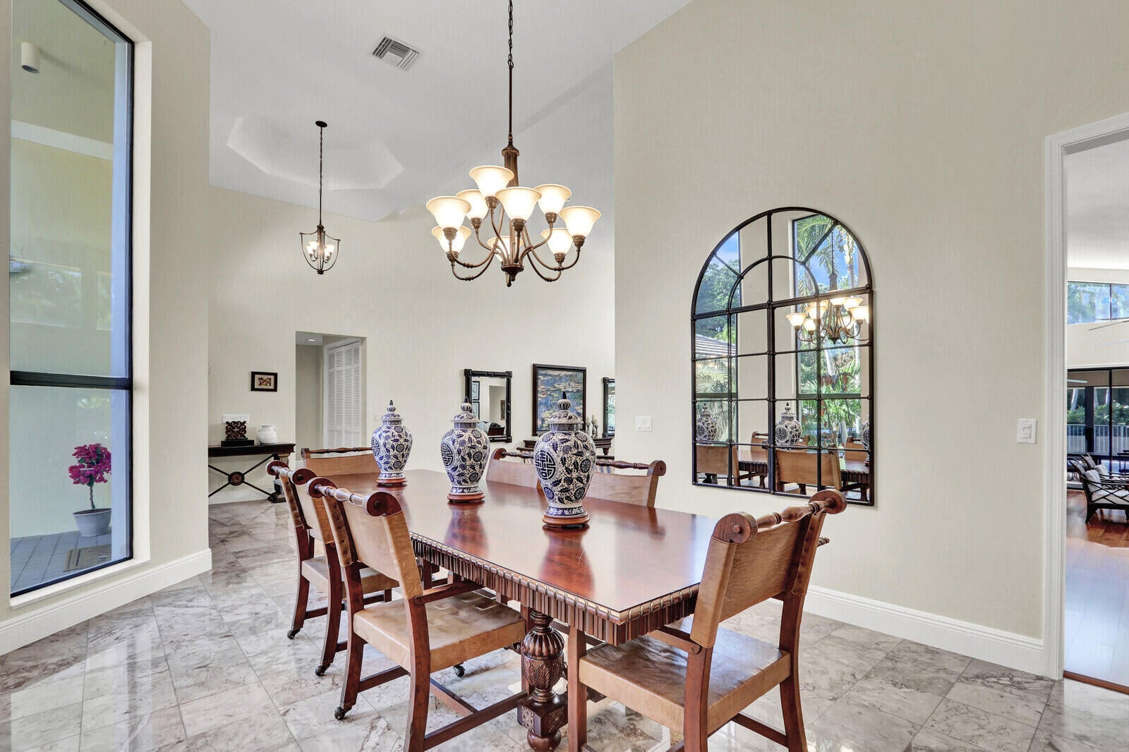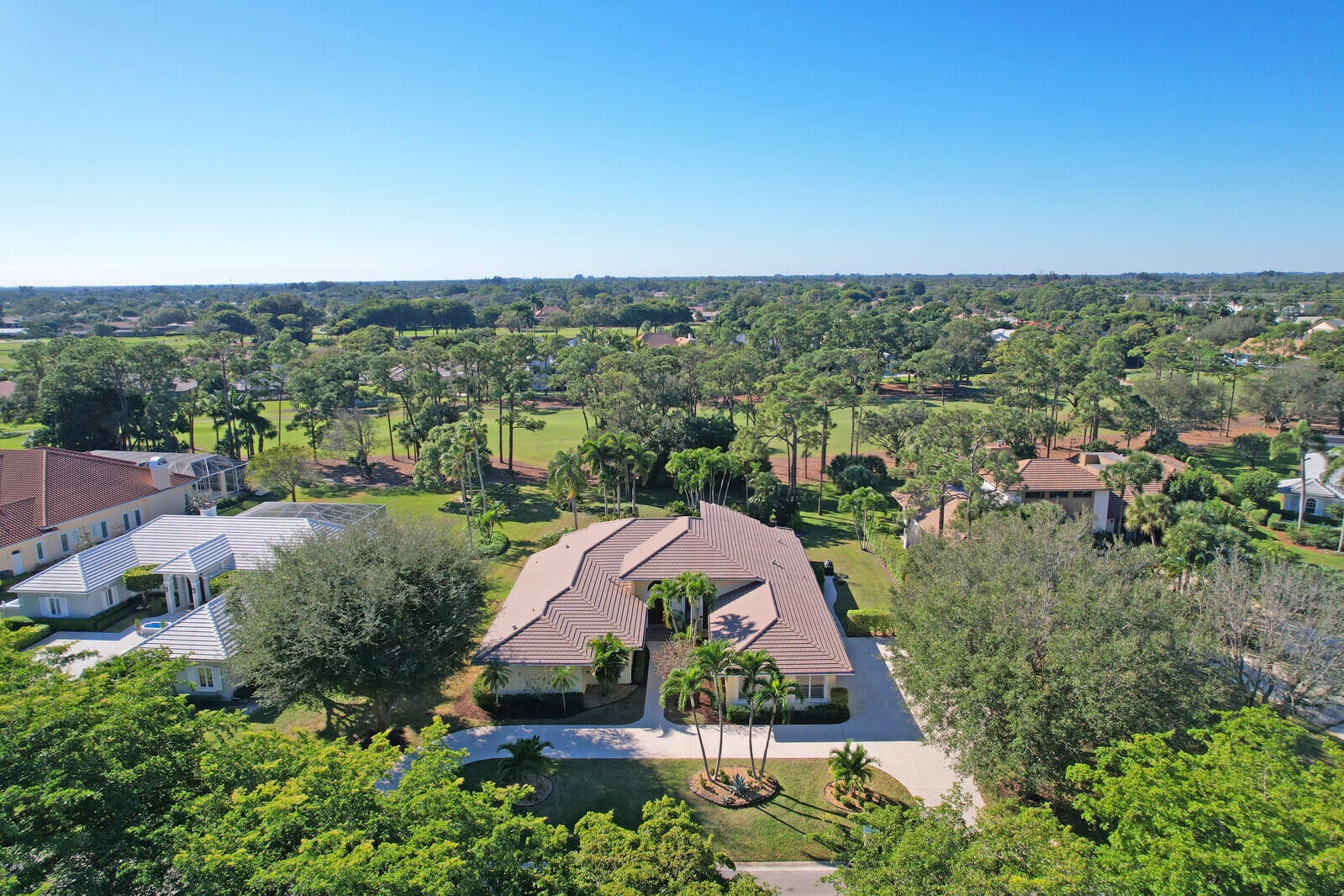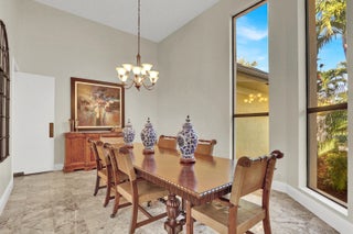 Located within the estate enclave of Turnberry Estates in the City of Atlantis, this light-filled residence rests on an expansive .66-acre lot overlooking the rolling fairways of the Atlantis Country Club Golf Course. Thoughtfully designed for both everyday comfort and effortless entertaining, the home features soaring 20-foot ceilings anchoring the main living area, creating a dramatic yet welcoming sense of space.The layout is exceptionally well planned, with all bedrooms positioned together on one private wing, while the main living and entertaining areas are set apart ideal for hosting while maintaining a sense of retreat.Outdoors, a large covered and screened patio opens to a fenced pool area, with substantial green space beyond, offering rare openness, privacy, and tranquility. With four bedrooms, four full bathrooms, and a setting that blends scale, light, and timeless Atlantis charm, this residence delivers a lifestyle as special as its surroundings. A gracious foyer sets the tone upon arrival, immediately drawing the eye straight through the home to sweeping views of the expansive backyard and the golf course beyond. The main living room is truly grand in scale, highlighted by dramatic 20-foot ceilings that impress while remaining warm and inviting. Adjacent to this space, the family room offers a more relaxed setting ideal for everyday living. Just off the foyer, the formal dining room comfortably accommodates seating for ten or more, making it perfect for holidays, celebrations, and elegant dinner parties. Together, these spaces create an open, balanced interior that functions beautifully for both entertaining and daily life. The kitchen is generously sized and designed to support both casual living and hosting on a larger scale. It features a center island with cooktop, a wall oven, an additional microwave/convection oven, and a Sub-Zero refrigerator. A generous walk-in pantry provides exceptional storage, while the charming window-seat dining area creates a warm, light-filled space for informal meals and morning coffee. The primary suite serves as a private retreat, featuring high ceilings, peaceful views of the pool and garden, and a comfortable sitting area within the suite. Two walk-in closets offer ample storage, while the renovated primary bathroom is beautifully appointed with a separate shower and a freestanding soaking tub, creating a spa-like experience. All four bedrooms are thoughtfully arranged on one wing of the home to preserve privacy, with generously sized rooms throughout. One additional bedroom includes a large walk-in closet, and all four full bathrooms are seamlessly integrated into the home's layout. Interior details include Brazilian cherry hardwood flooring throughout the main living areas and marble flooring in both the foyer and formal dining room. Sliding glass doors in the living room and family room provide seamless access to the covered and screened patio, while transom windows above the sliders flood the interior with exceptional natural light and enhance the home's airy feel. The home is equipped with a concrete tile roof in Victorian Slate, natural gas service currently supplies the outdoor barbecue and pool heater. Storm protection includes impact-rated windows in the kitchen, accordion shutters for the transom windows, and storm panels for the remaining windows and sliding glass doors. Outdoor living is a true highlight, with a covered and screened patio ideal for year-round enjoyment. The fenced pool area features a heated, chlorinated pool, while the expansive green space beyond the pool offers endless possibilities. The property backs directly to the golf course and includes mature avocado and walnut trees, enhancing both beauty and privacy. There is also an opportunity to extend the fencing to enclose additional yard area if desired. The three-car garage is discreetly located on the side of the home, keeping vehicles out of direct front view and enhancing curb appeal. A circular front driveway is complemented by a large side driveway connected to it, providing ample parking and easy access. Beyond the home itself, life in the City of Atlantis offers a rare sense of connection and charm. This fully gated city feels like stepping back in time, where neighbors wave, children ride bikes through tree-lined streets, and community is part of everyday life. Atlantis is known for its non-mandatory country club lifestyle and two award-winning golf courses. The Atlantis Country Club and Lost City Golf Club along with a vibrant calendar of events including Spring Fling, Independence Day fireworks, Halloween celebrations, a festive holiday golf-cart parade, and the beloved annual Christmas tree bonfire. With its own city hall, police department, and three manned guard gates, Atlantis delivers an exceptional quality of life in a setting that feels both secure and warmly familiar.