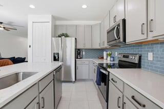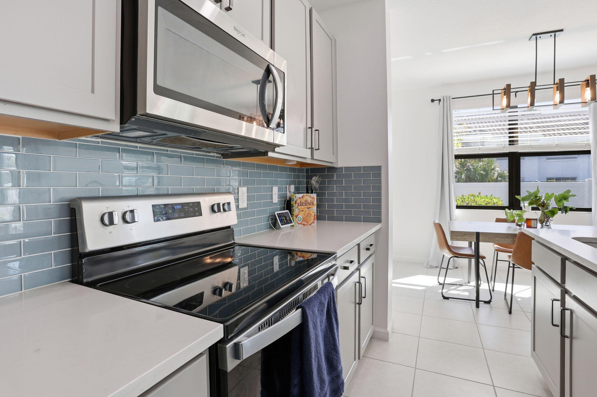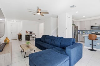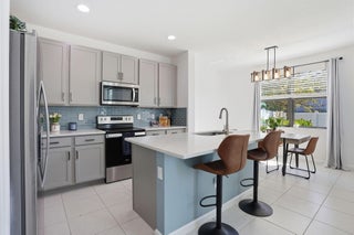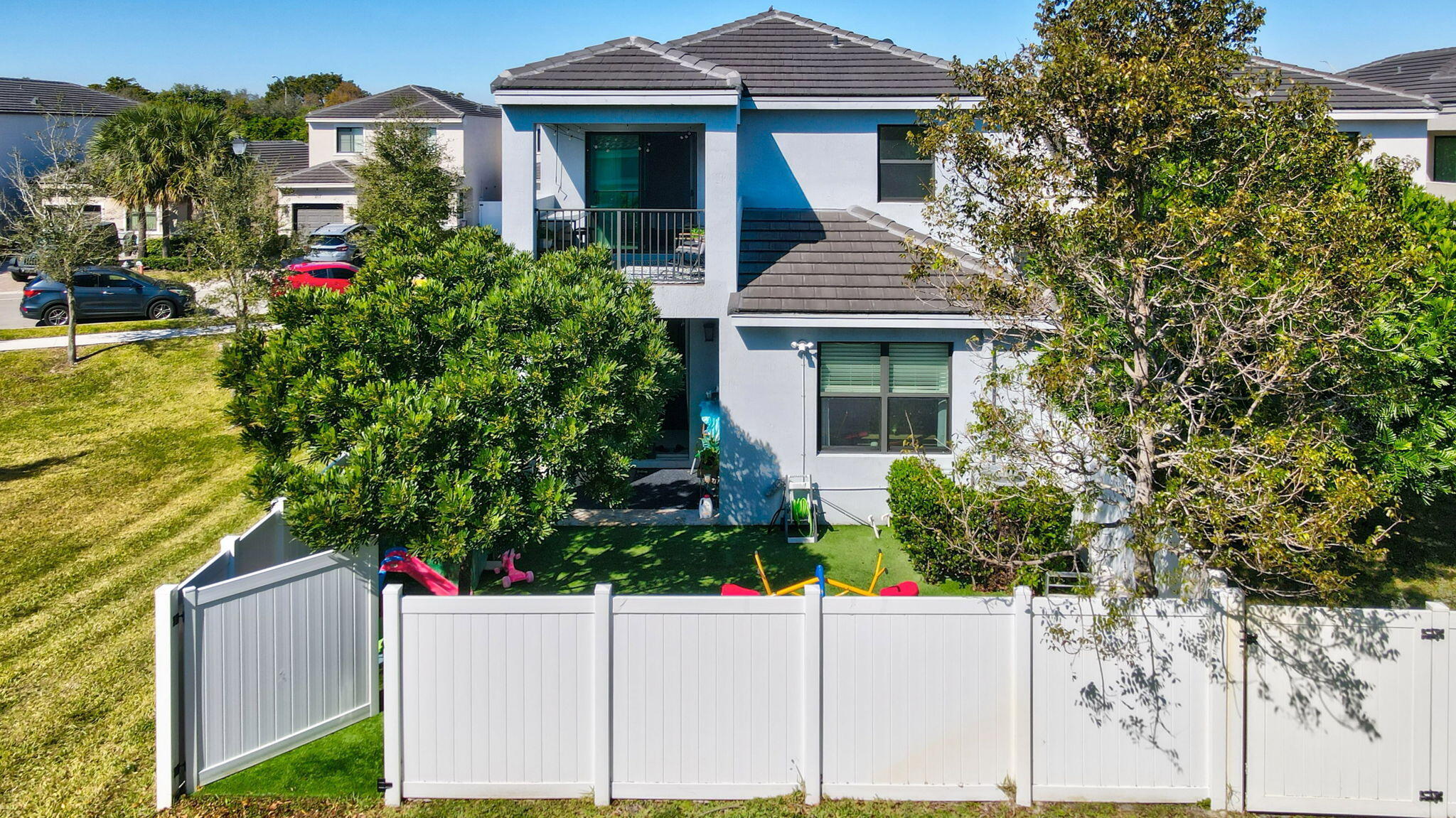 Beautiful two story, single family home built in 2021, move in ready, located in the gated community of Vantage at Pal Aire. Situated on a large corner lot with a fully fenced backyard and newly installed premium turf. Bright open-concept layout with tile flooring throughout the first floor and a contemporary kitchen featuring stainless steel appliances, soft-close wood cabinetry, granite countertops, and a large island. The spacious primary suite offers a private balcony and large walk in closet. Hurricane impact windows, keyless entry, two car garage, paver driveway. Conveniently located near the Turnpike, I-95, shopping, and just 20 minutes from the beach. Association includes water, sewer, cable, internet and landscaping and Community pool.