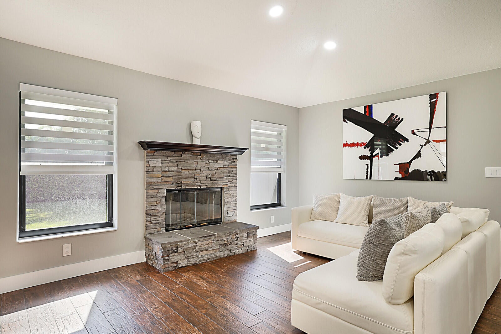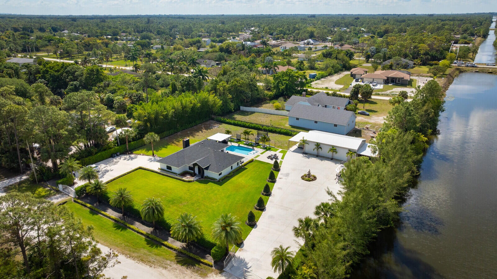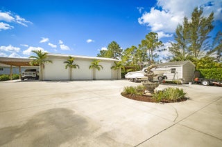 SPECIALTY PROPERTY! ONE-OF-A-KIND POOL HOME on a spacious 1.7-acre lot offers the perfect blend of indoor comfort and outdoor living. This 3-bedroom, 2-bathroom home features a 2024 roof, impact windows and doors, and an open-concept layout with vaulted ceilings. The modern kitchen includes quartz waterfall countertops, updated appliances, ample cabinetry, and recessed lighting. Both bathrooms have been tastefully updated with contemporary finishes. Step outside to a private oasis with a heated saltwater pool (2021), expansive pool deck, and designated entertainment area. There is an attached 2-car garage PLUS there is a detached 3-car garage ideal for boats, RVs, motorcycles, more storage and flex space. The extra poured concrete extends the driveway throughout the property. So MUCH MORE