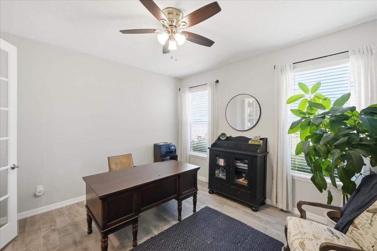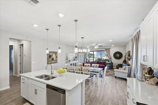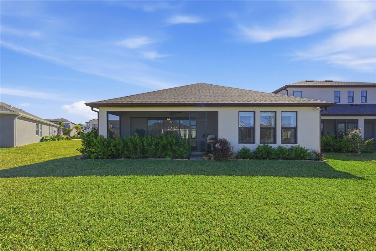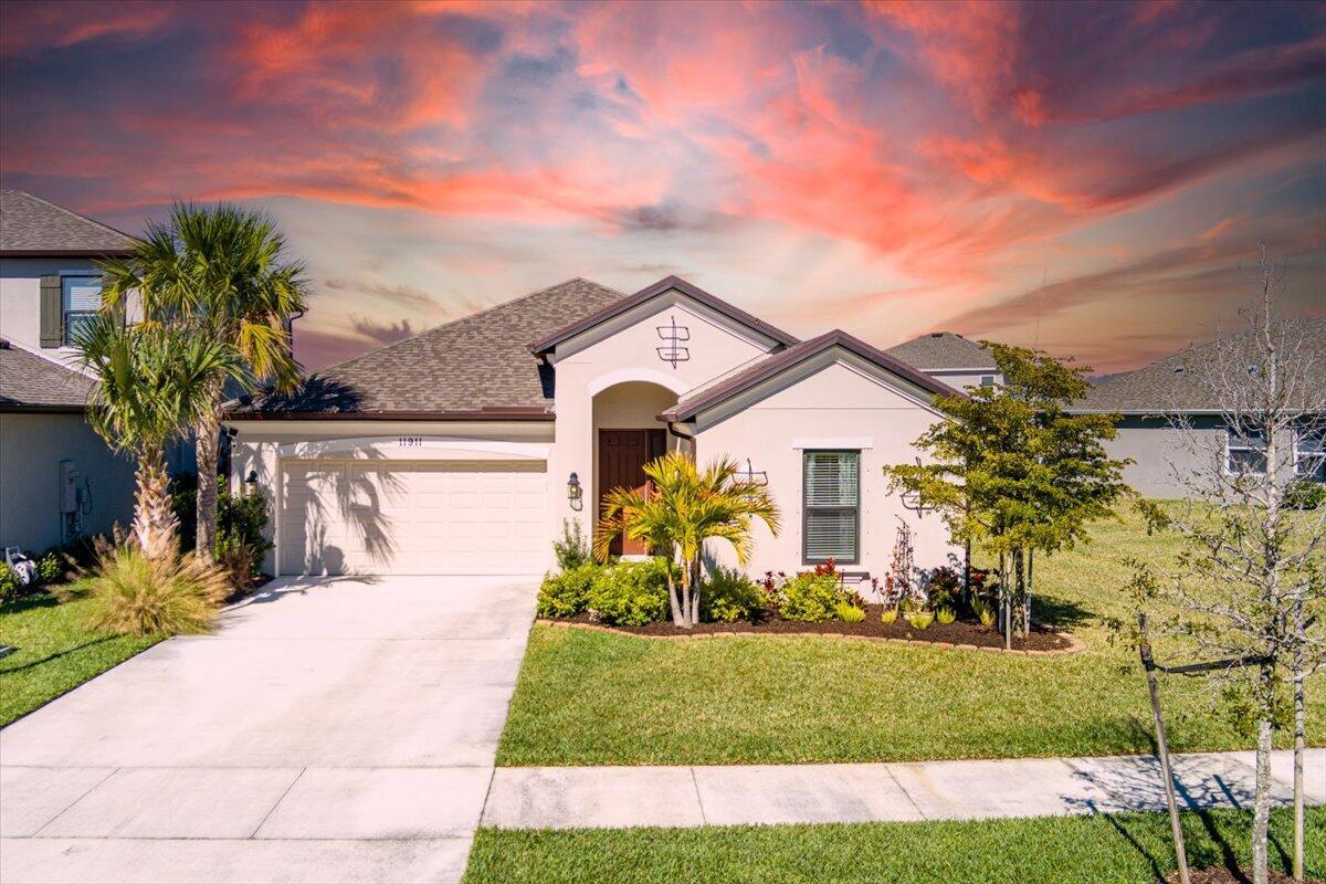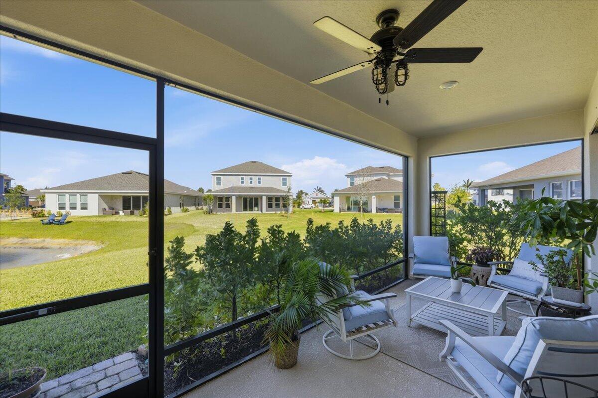 Built in 2023 near Tradition, this beautiful 4-bedroom, 3-bath, with office offers comfort in a peaceful setting. Thoughtfully designed with soaring ceilings, 8 ft doors, designer lighting, and upgraded tile. The gourmet kitchen features quartz surfaces and an expansive walk-in butler pantry, while the owner's suite boasts a customized closet. Expansive sliding glass panels fully tuck away, seamlessly blending the interior living space with the screened lanai and water views. Two car garage with a generator connection and added storage. Central Park amenities feature a resort-style pool, clubhouse, pickleball, basketball, dog park, and playground. Convenient to I-95 for easy commuting. Seller offering prepaid 2026 HOA Dues!