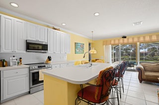 Come and see this beautifully maintained 5 bedroom, 3 and 1/2 bath home in the desirable Villagewalk community. This home consists of a primary bedroom on the FIRST floor, with 4 additional bedrooms upstairs. There is a half bath downstairs with access to the pool. A den/office can be found on the first floor perfect for remote work or homework space. The open concept kitchen opens to an expansive family room with an eat in kitchen area. The kitchen consists of all new stainless steel appliances. 3-car garage provides plenty of space for parking. Villagewalk is a manned guard-gated, resort-style community located in Wellington, Palm Beach County, one of the most desirable areas in South Florida! The master-planned community consists of 954 residences, with miles of walking/joggingtrails designed around 112 acres of lakes, waterways, and a wildlife preserve. The result is a stunning community where 96% of the homes are built on waterfront cul-de-sac lots. The HOA supports countless events for all to enjoy throughout the year with an on-site activity director and property manager. A new cafe is opening this year on site, featuring world class cuisine with local chefs renowned for their dishes. Amenities include: large resort style pool, lap pool, clay tennis courts, pickleball courts, bocce ball. basketball court, playground, clubhouse, library, state of the art gym, meeting rooms and ballroom for events. We are minutes away from A-rated schools, shopping, dining, the heart of the equestrian world, and polo fields, with beautiful South Florida beaches and Worth Avenue on Palm Beach Island.
