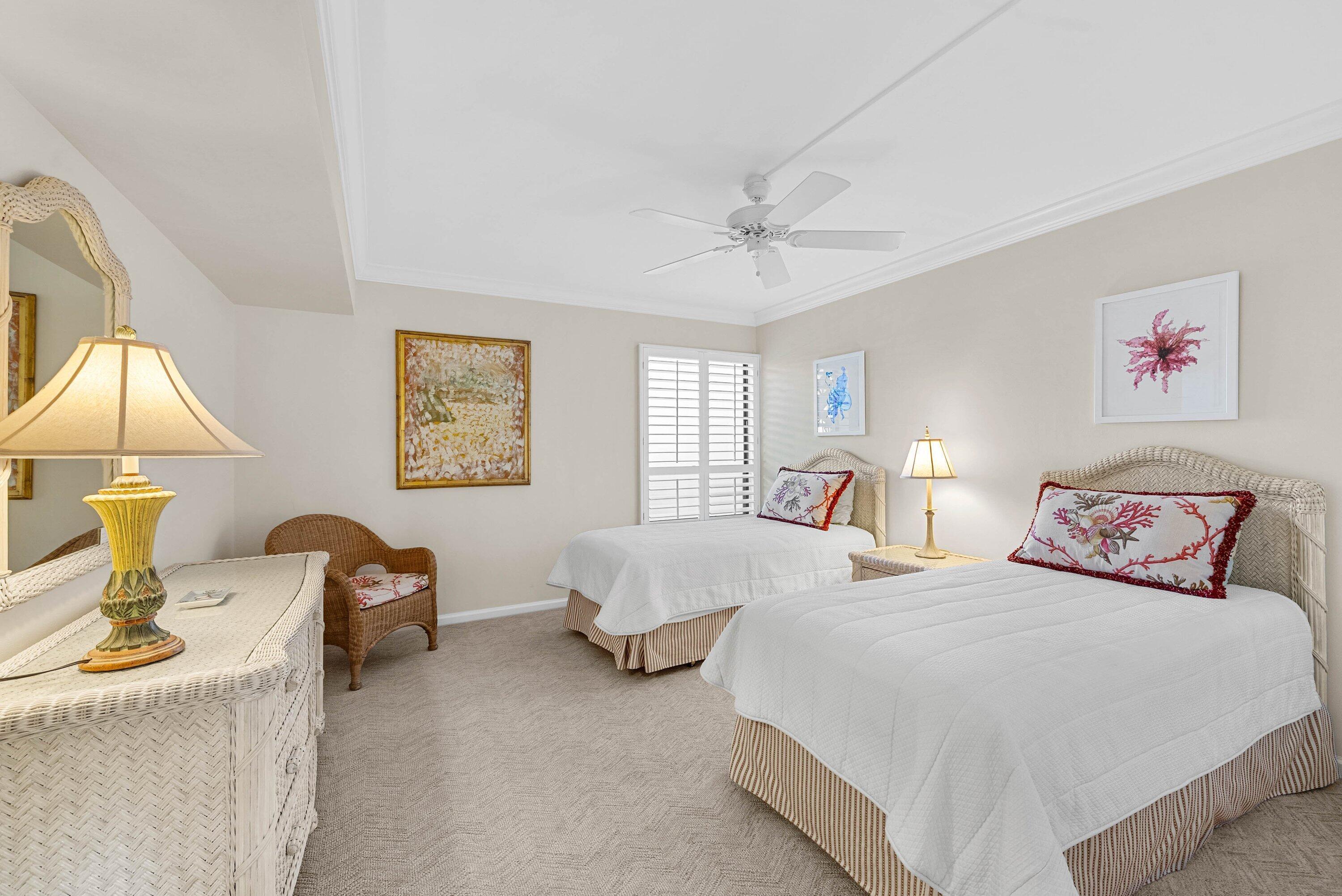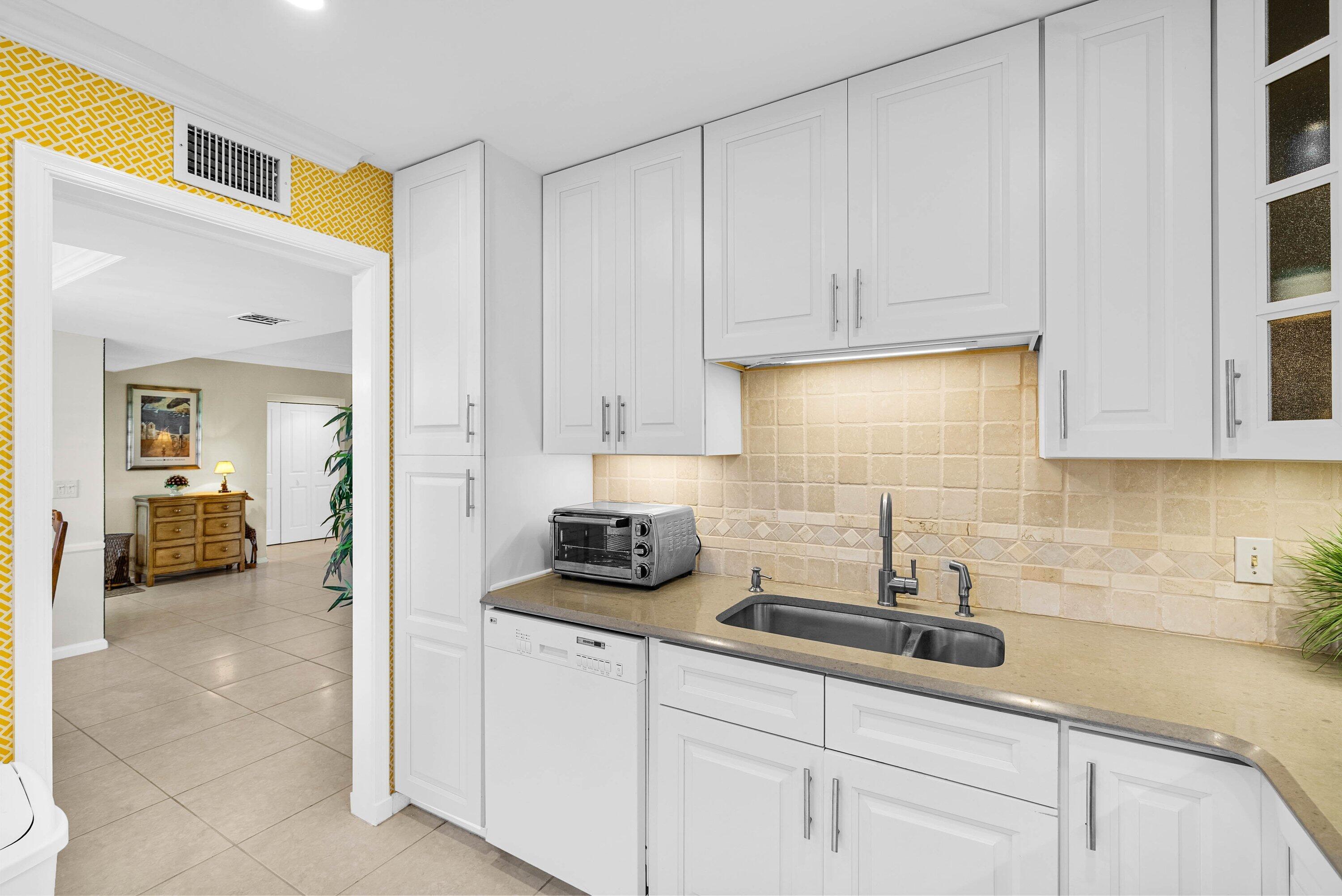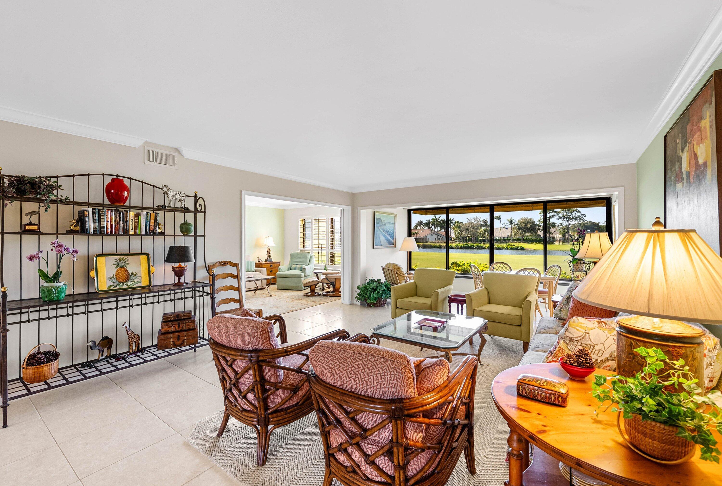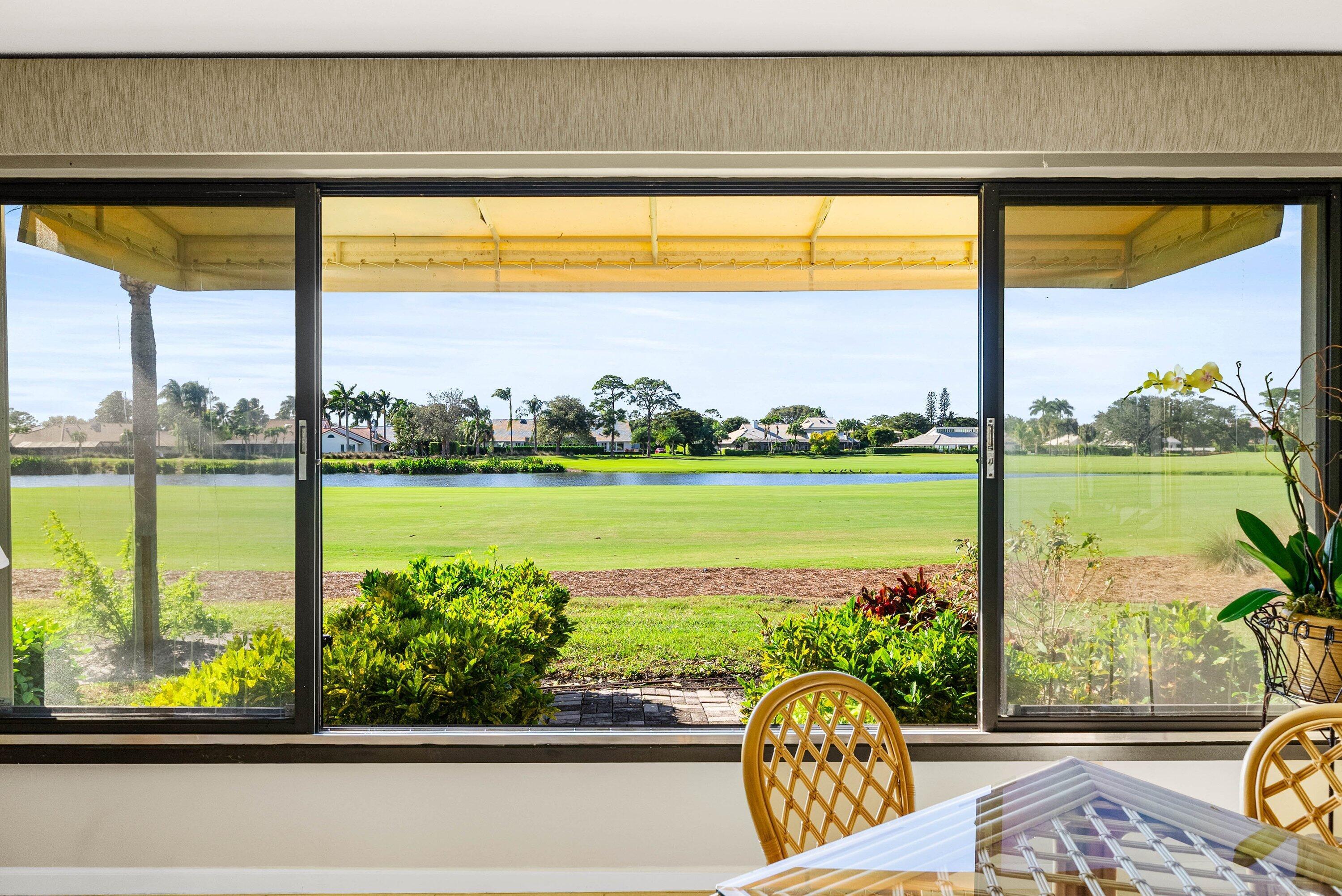 Exceptional lake and golf course views from this spacious first-floor 3-bedroom, 2-bath condo located in the beautiful Azalea area of Quail Ridge. This ground-level residence features a paved open patio, ideal for outdoor relaxation and entertaining. The dining area showcases an elegant tray ceiling, adding architectural interest and charm. The primary bedroom includes a walk-in closet, while the guest bedroom also offers its own walk-in closet for added storage. The spacious kitchen is appointed with stone countertops and ample cabinetry. Updated bathrooms enhance the home's modern appeal. Enjoy low-maintenance condo living, scenic views, and convenient first-floor access in this desirable golf course community. Quail Ridge is a mandatory membership community.
