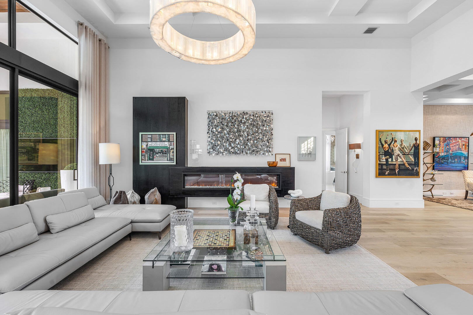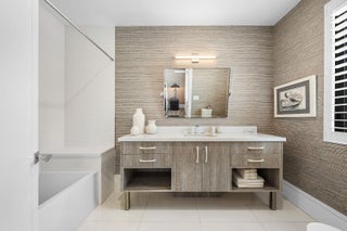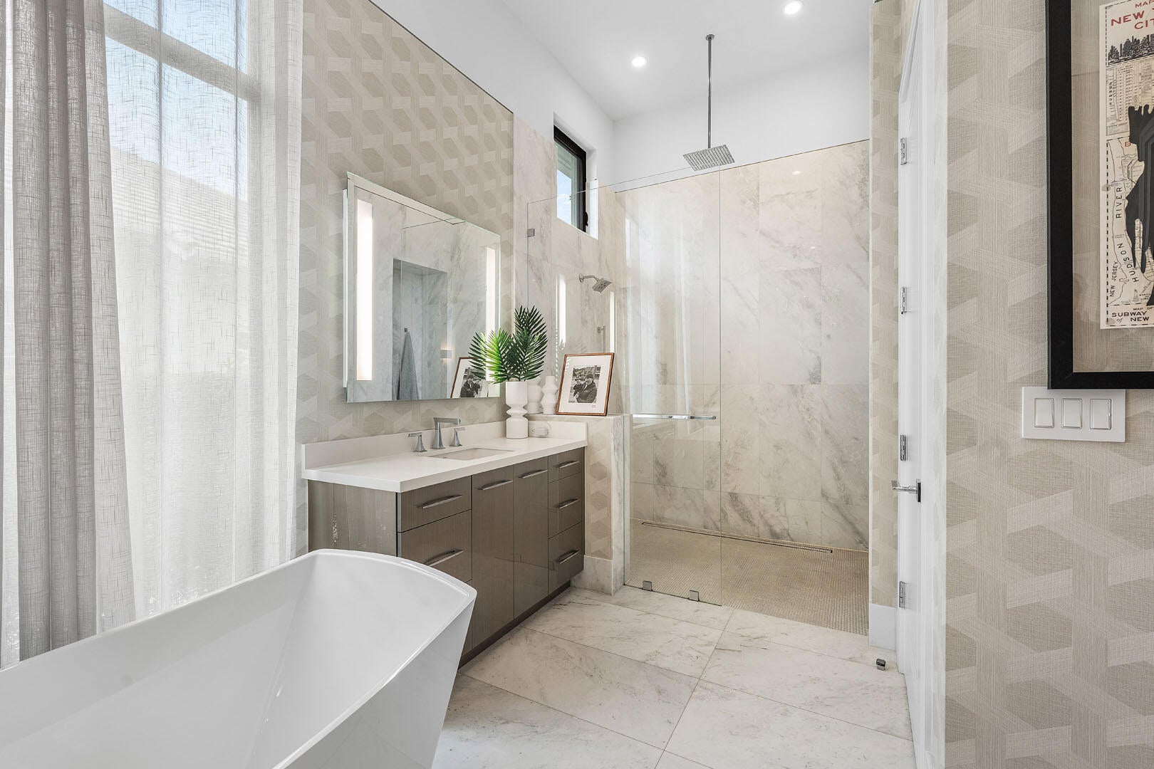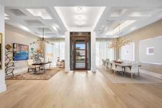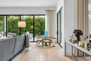 2424 Queen Palm Road is a striking modern estate by River Birch Construction, created for those who value precision, privacy, and effortless luxury. Spanning more than 5,200 square feet, the residence pairs bold architectural lines with warm, refined interiors, anchored by wide-plank oak floors that carry throughout the home.At the heart of the design, a gourmet kitchen commands attention with a generous center island and premium Miele appliances--equally suited for intimate mornings or elevated entertaining. Nearby, a formal dining space sets the stage for memorable evenings, while a dedicated office and an upstairs loft-style media lounge offer flexibility for work, retreat, and relaxation.The first-floor primary suite is a true sanctuary, thoughtfully positioned with no living space above for an added sense of quiet and exclusivity. Spa-inspired baths, boutique-caliber walk-in closets, an adjacent laundry, and a private entrance from the south garage create a seamless, resort-like experience reserved entirely for the owner. Outside, the home transforms into a private backyard escape. A custom heated pool and spa invite year-round enjoyment, complemented by a built-in BBQ and a covered patio designed for lingering afternoons, complete with retractable screens and lounge seating for effortless indoor-outdoor living. Every modern convenience is integrated, from smart home controls for climate, lighting, and music to natural gas, a full generator, impact glass windows and doors, and a pristine turf backyard. With four-bedroom suites and a three-car garage with space for car lifts, the home delivers a rare combination of craftsmanship, comfort, and contemporary sophistication.