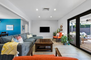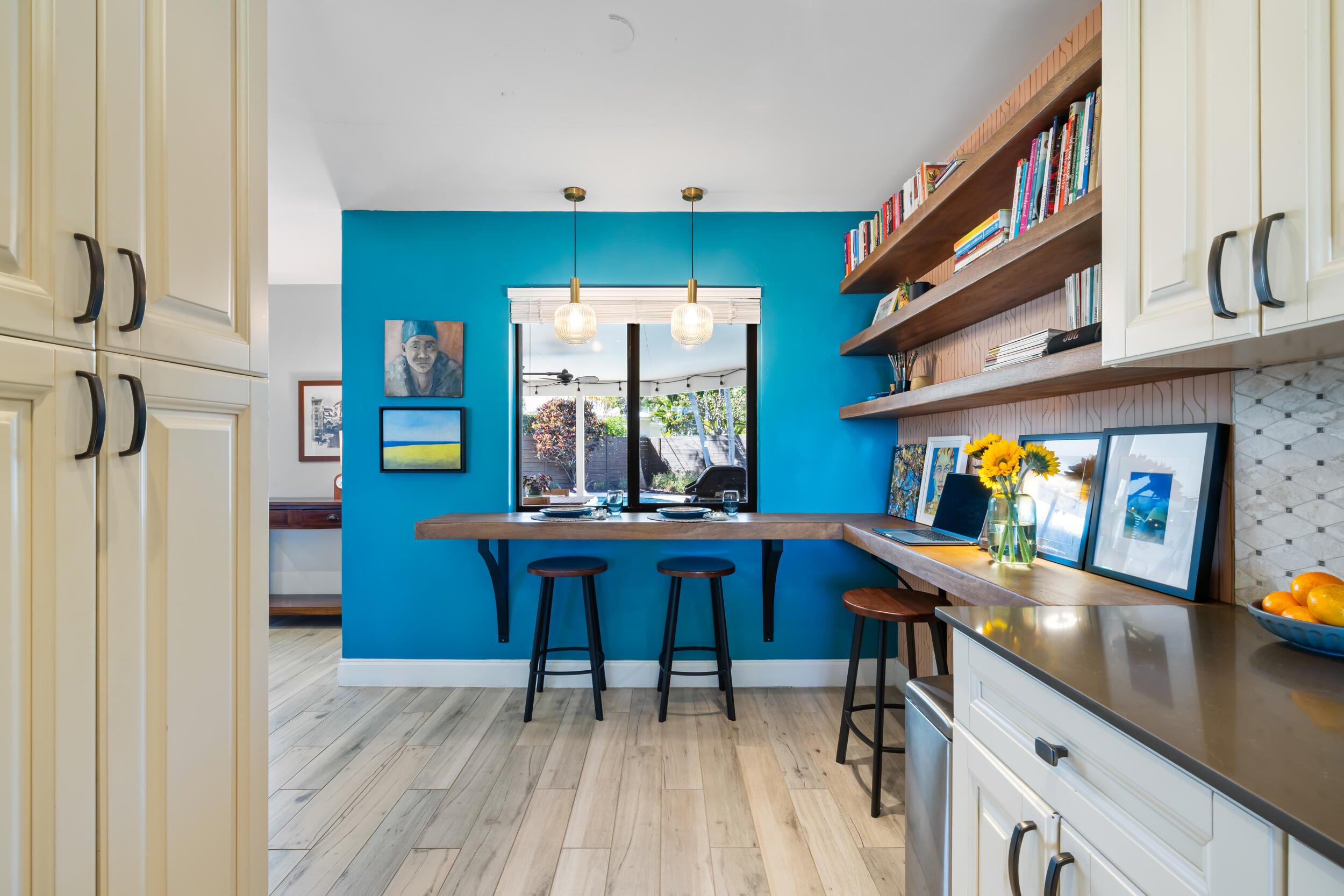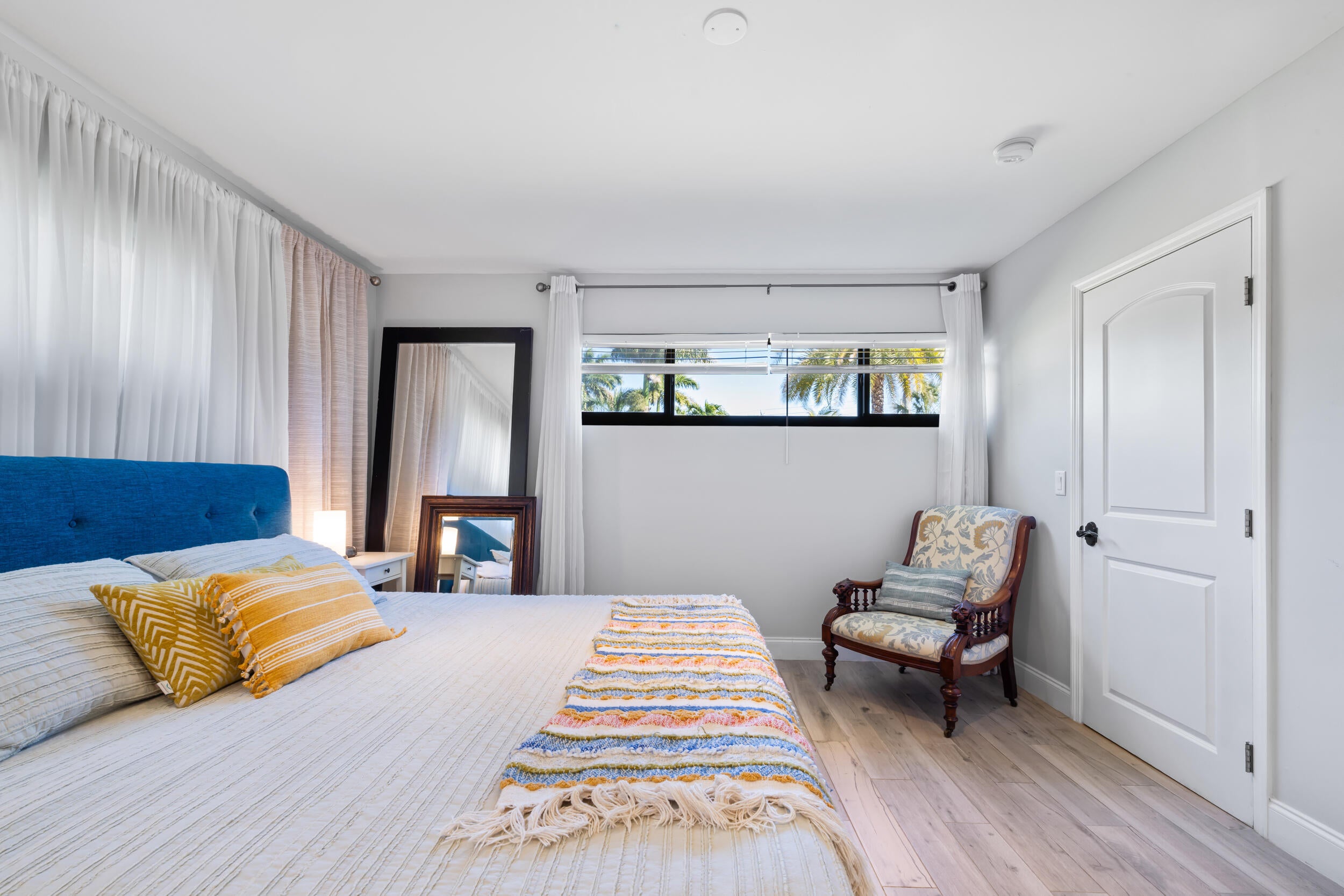 Set on a manicured lot in the heart of the 'It' Neighborhood, South End West Palm Beach AKA 'SoSo', this stylish mid-century residence pairs timeless character with thoughtful modern updates. A circular drive and mature landscaping create an inviting first impression. Inside, wood-look tile floors anchor the open living spaces, flowing effortlessly to a covered patio and poola"ideal for relaxed indoor-outdoor living.The renovated eat-in kitchen offers stainless steel appliances and streamlined cabinetry, blending function with clean design. French doors open to a beautifully paved backyard retreat centered around a sparkling pool. The primary suite features generous storage and an updated bath, completing this serene South of Southern escape.