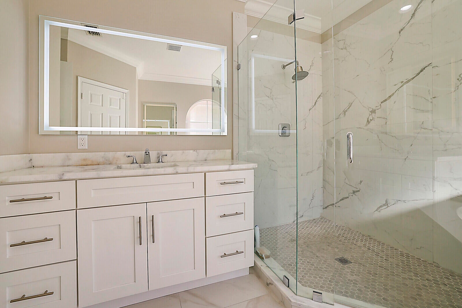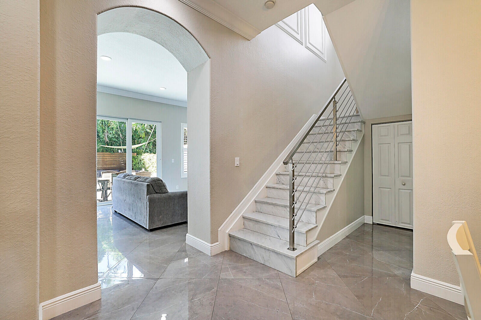 This beautifully upgraded 4-bedroom, 2.5-bath home with a 2-car garage delivers the ideal South Florida lifestyle. Enter through double impact doors to an open living and dining space featuring volume ceilings, recess lighting, crown molding and ceramic flooring throughout the main level. The renovated chef's kitchen showcases quartz countertops, a waterfall island, and abundant cabinetry. Impact sliding doors open to a private backyard oasis with a heated saltwater pool, outdoor kitchen, and outdoor shower. Marble staircases lead to the upper level where the oversized primary suite offers walk-in closets and a private en-suite bath. Additional bedrooms provide for guests, office, or family needs. Minutes from shopping, dining, beaches, and major highways. Inquire for more!!