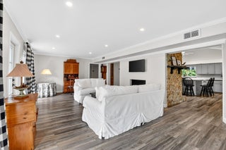 Discover this beautifully updated 3-bedroom, 2-bath pool home in the highly sought-after Chapel Hill neighborhood of East Boynton Beach. Thoughtfully enhanced while preserving its original charm, this residence offers an exceptional blend of sophistication, comfort, and timeless design. Upon entering, you're welcomed into the family room, highlighted by oversized windows and a striking two-sided wood-burning fireplace. The opposite side of the fireplace serves as a focal point in the kitchen, highlighted by a beautiful stone surround creating a warm and inviting atmosphere. The spacious, remodeled kitchen features vaulted ceilings with a skylight and wood beams, abundant cabinetry, quartz countertops, white subway tile backsplash, and an oversized island with generous seating-- perfectfor entertaining friends and loved ones with the warmth of the fireplace as a backdrop. The primary bedroom offers private access to the secluded backyard and pool area and includes an ensuite bathroom. Engineered wood flooring throughout adds warmth and elegance, while hurricane impact windows and doors, updated electrical, tankless gas water heater, PVC piping, new irrigation system, new brick paver extended driveway, natural gas service and a one-car garage with freshly painted floors and walls provide modern efficiency and peace of mind. Step outside to your own tropical oasis with lush landscaping, no rear neighbors, an inviting pool, and a fully fenced backyard. Relax under the covered patio awning, creating a serene setting for outdoor living and entertaining. Ideally located in a non-HOA community just minutes from Bethesda Hospital, Downtown Delray Beach, pristine beaches, premier dining, and shopping. A rare opportunity to own a refined home in one of East Boynton's most desirable neighborhoods.