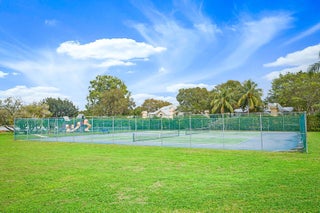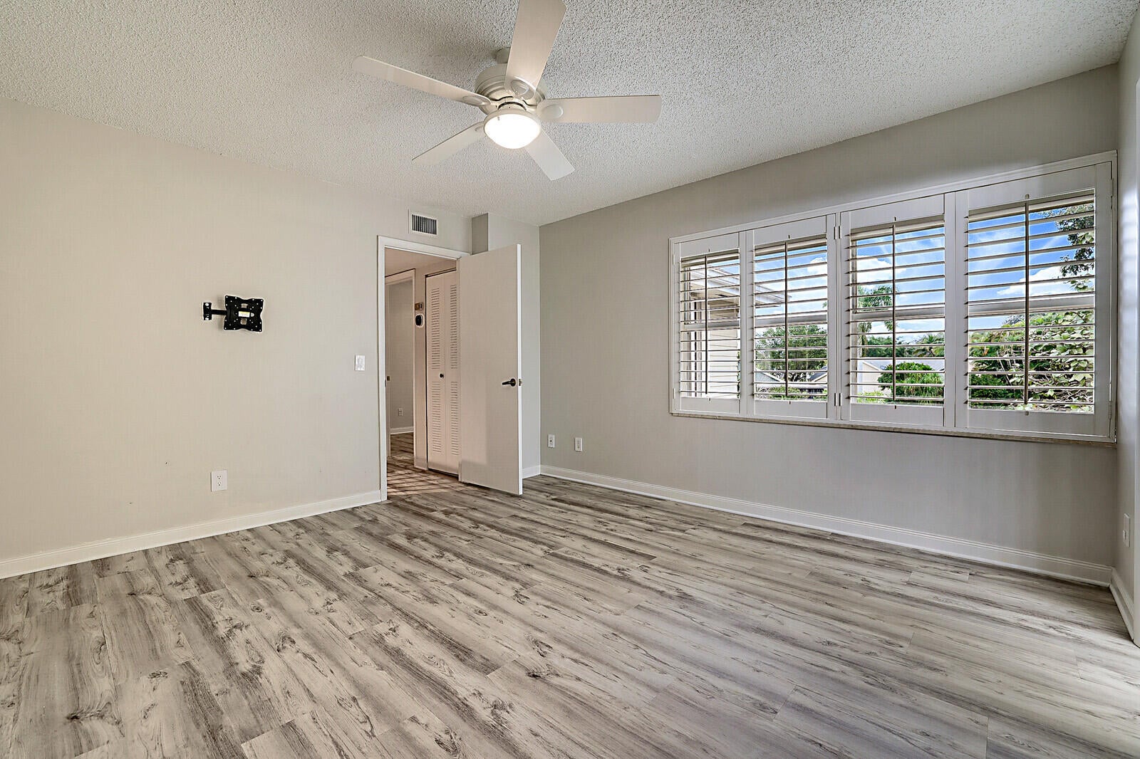 Lovingly maintained, move-in ready, courtyard style townhome on private lot w/canal and garden view. Fenced patio safe for pets & kids, and to enjoy BBQ-ing or just relaxing outside with your favorite beverage! Freshly painted interior, new luxury vinyl flooring, stainless steel appliances, new fans w/remotes + beautiful plantation shutters on the windows. Storage closet under staircase has water heater & central vacuum + more space for ''stuff''. Powder room on 1st level also has full size washer & dryer. Accordion shutters for hurricane protection. TWO Master Bedrooms upstairs both w/ensuite bathrooms. 24hour Manned Security Gate + roving security, Community pool, tennis, playground & clubhouse + building insurance included in LOW quarterly HOA fee. Association approval required.ANSWERS TO FREQUENTLY ASKED QUESTIONS + Things You Should Know: * AC 2018 * Water heater approximately 7 years old * Stainless steel range/oven approximately 3 years old * TWO assigned parking spaces * Association will paint exterior of buildings sometime this year * Quarterly HOA fee of $1,625 covers common areas, Manned security, building insurance, lawn/landscaping maintenance, roof maintenance + recreational facilities. * Resort style lakefront community pool. * Clubhouse * Playground * Lakeside Picnic Area * Tennis Courts * Association approval + interview required. Application fee $100 per person or married couple + $50 administrative fee. Allow 30 days for approval. * 2 pet maximum - no size restriction. * Must own for 2 years before renting
