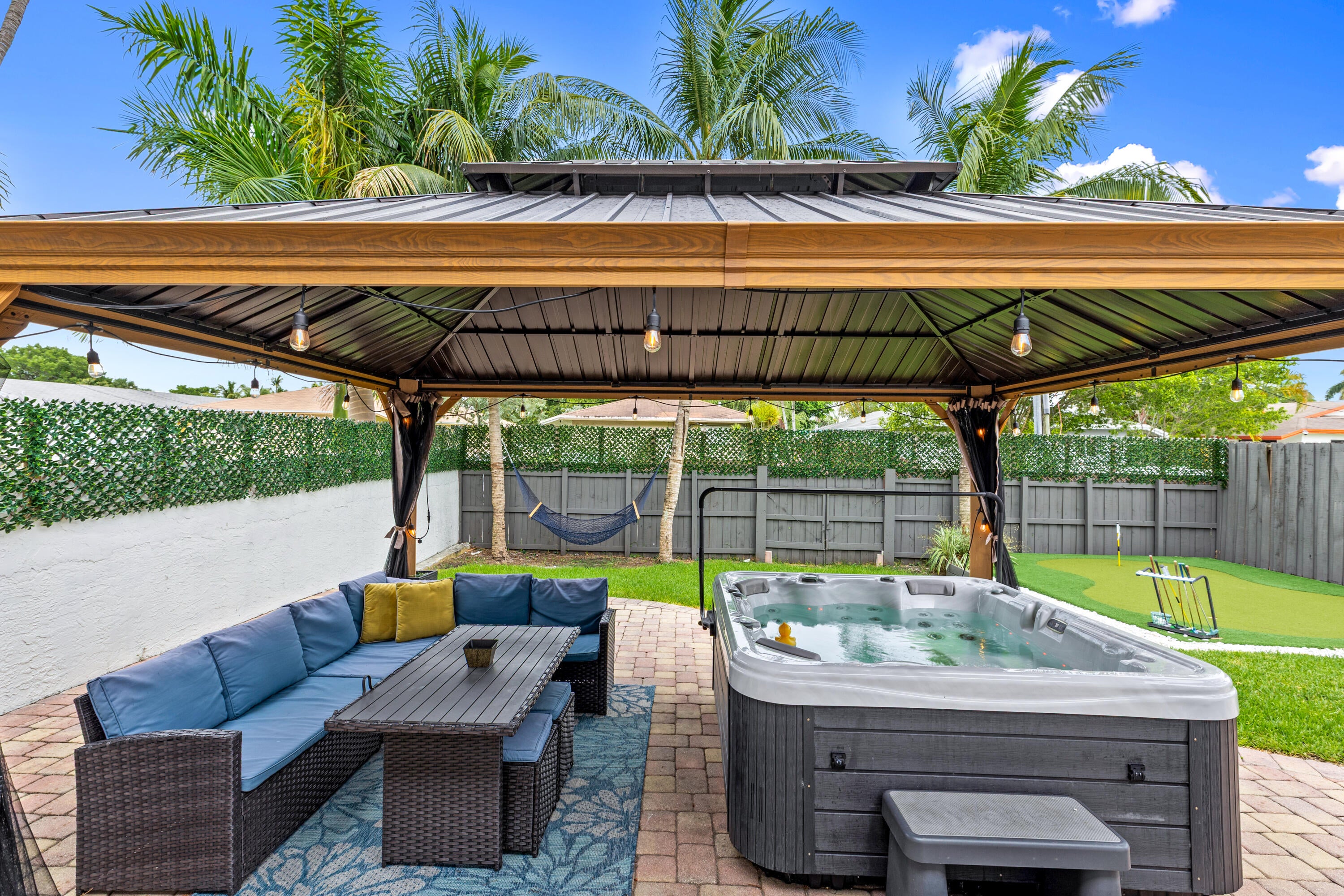 Amazing location! Recently remodeled 3-bedroom, 2-bath home with a 1-car garage in the heart of SE Dania Beach. This modern gem features a spacious primary suite and an open-concept kitchen with brand-new cabinets, stainless steel appliances, and quartz countertops. Additional upgrades include new bathrooms, waterproof vinyl flooring, a 2022 metal roof, and impact sliding doors.Currently used as a short-term rental, this home is perfect for investors or as a primary residence. The fenced backyard is ideal for entertaining--complete with a jacuzzi, mini golf, and mango and coconut trees. A rear alley offers convenient storage for a boat or water toys.Situated on a quiet street, close to supermarkets, restaurants, casinos, Fort Lauderdale Airport, Dania Pointe, downtown areas, state parkmarinas, and just 1.9 miles to the beach. No HOA and exceptional rental potential!