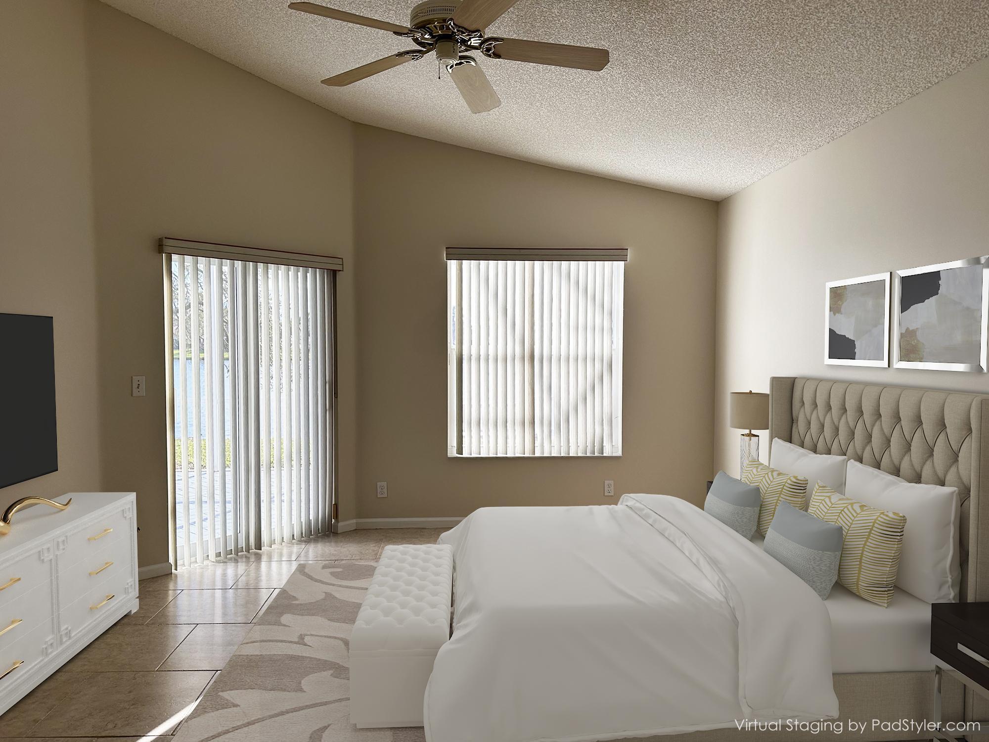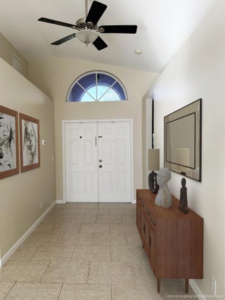 Spectacular wide view of Lake Wellington-3 bedroom 2 bath split plan -Remodeled kitchen, all impact windows & sliding doors, tiled floors throughout-Can move right in with newly painted fresh interior-Light & bright with vaulted ceilings & panoramic lake views-Enjoy beautiful sunsets and serene lake views from your tiled screened patio & private dock-Short walk to community pool-Relax on your boat on quiet Lake Wellington (canoes, sailboats, kayak pontoon ''party boats'')-Walk or paddle to Community Center events & amphitheater where you'll find live music & entertainment as well as classes & events for all ages & weekly Green Market-Conveniently located to restaurants, equestrian activities, shopping, A-rated schools, hospitals, Turnpike & PBI Airport-EZ to show-All meas. approx