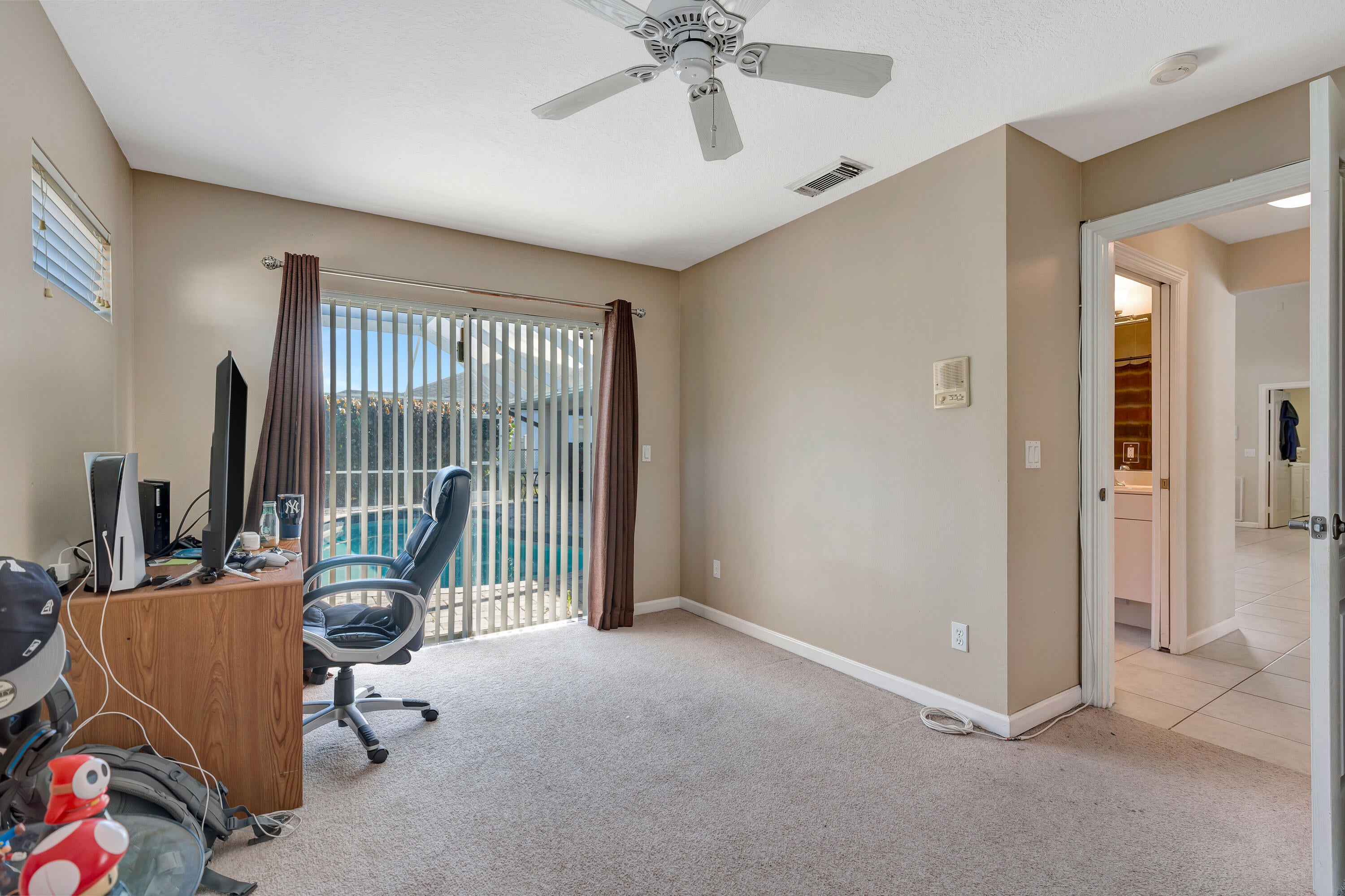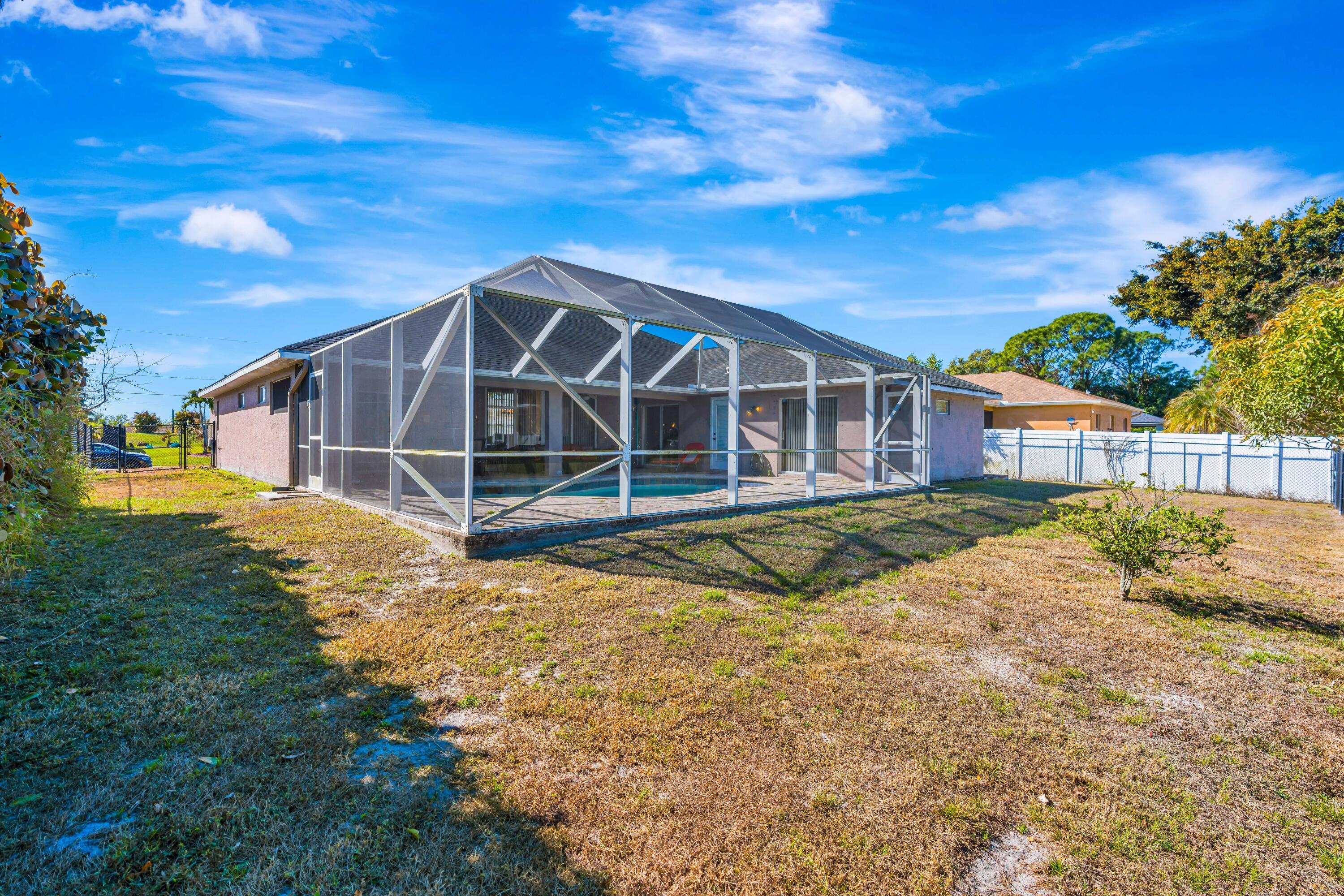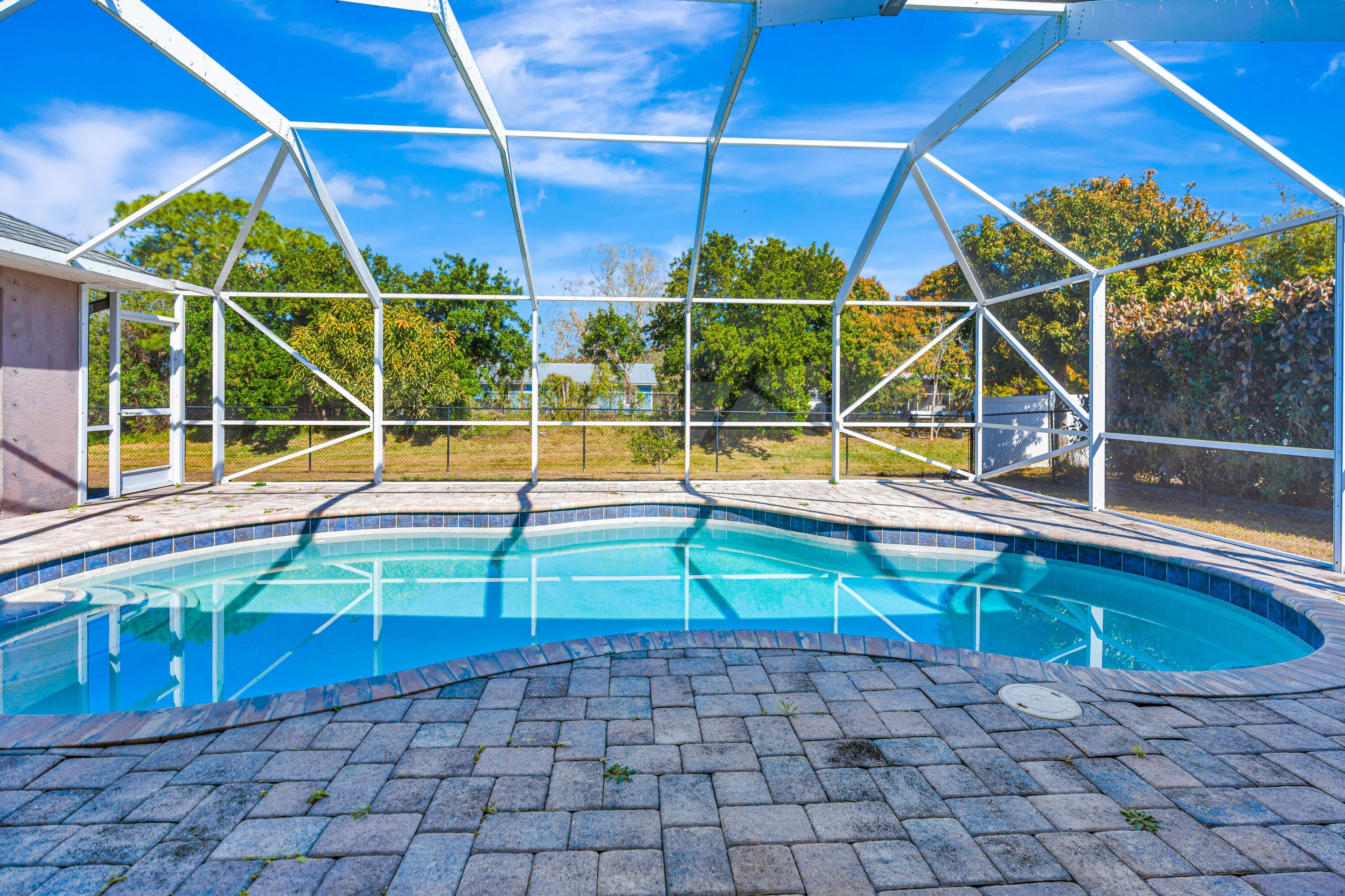 Fantastic opportunity to own a spacious split-floorplan home designed for the Florida lifestyle! The interior boasts a massive primary retreat with a spa-style bath, a private office/den off the kitchen, and guest bedrooms featuring oversized walk-in closets. Enjoy hosting in the large formal dining room or the light-filled family room with its custom TV built-in.The backyard is a true oasis, featuring a screened-in pool and lanai (2016) with stylish pavers, a full cabana bath, and a fully fenced yard for ultimate privacy. Recent upgrades include a brand-new water heater (2025), a kitchen reverse osmosis system, and city water/sewer connections. Complete with a 2-car garage and storm shutters, this home offers a functional layout and a stunning outdoor space ready for your personal touch. All information pertaining to the property is deemed reliable, but not guaranteed. Information to be verified by the Buyer. Be advised that cameras may exist recording audio and video inside/outside the property, such as ring doorbells. Photos are digitally enhanced and could be altered, please verify.