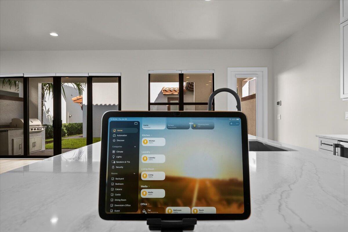 One of the newest homes in Alton. Showcasing organic modern design and advanced smart home technology on a quiet, no-through street in Palm Beach Gardens' most sought-after community. This Exeter/Park C plan offers abundant natural light and a private-entry casita ideal for guests, multigenerational living, or a home office. The home includes every builder upgrade plus extensive post-construction enhancements, including Level 5 plaster walls, hardwood floors throughout, upgraded interior/exterior paint, glass doors, and a chef's kitchen with GE Monogram smart appliances. Solar with three Tesla Powerwall batteries, Span smart panels, smart lighting, whole-home water filtration with reverse osmosis, integrated security, and EV charging deliver exceptional efficiency and comfort.