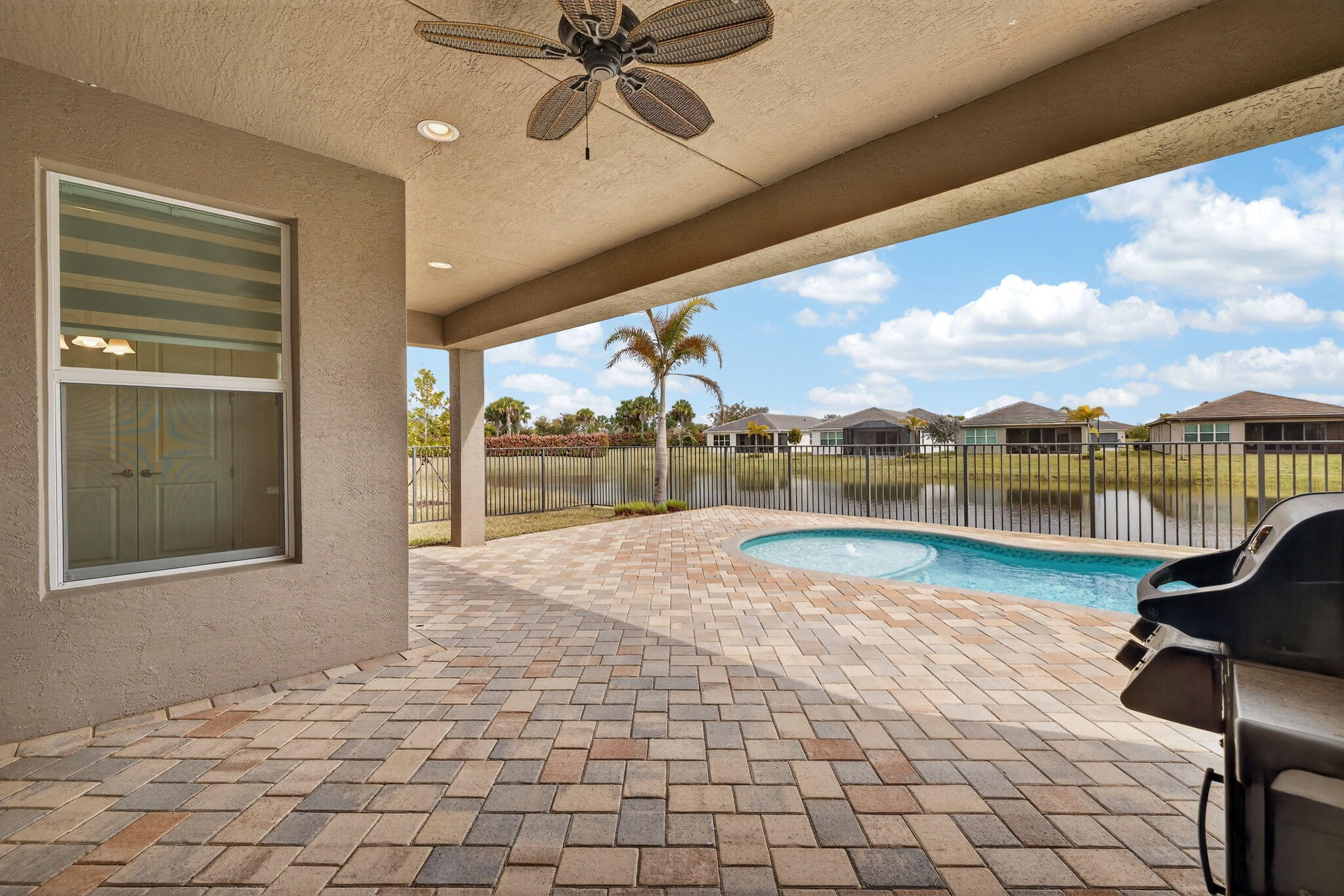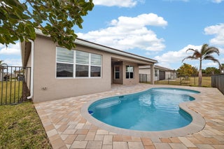 Lakefront Palazzo Model with Custom Pool located in Valencia Grove at Riverland:Experience the perfect blend of luxury, comfort, and serenity in this beautifully appointed Palazzo model, ideally positioned on a premium lakefront lot in the heart of Valencia Grove. This home elevates the Riverland lifestyle with a custom-designed pool that transforms the backyard into a private oasis, offering peaceful water views and a setting made for relaxation. Step inside to discover a bright, open layout enhanced by thoughtful upgrades and timeless finishes. The spacious great room flows effortlessly into the gourmet kitchen and dining areas, creating an inviting space for both everyday living and entertaining. Large windows frame the shimmering lake, filling the home with natural light.The primary suite provides a restful retreat with tranquil views, generous closet space, and a spa-inspired bath. Guests will appreciate the well appointed secondary bedrooms and flexible spaces that adapt to your lifestyle. Outside, the custom pool and extended patio take full advantage of the lakefront backdrop perfect for morning coffee, sunset cocktails, or simply unwinding in your own slice of paradise. Living in Valencia Grove means enjoying the full Riverland experience: world class amenities, vibrant social clubs, miles of pathways, and access to the 55+ lifestyle that makes this community so sought after.