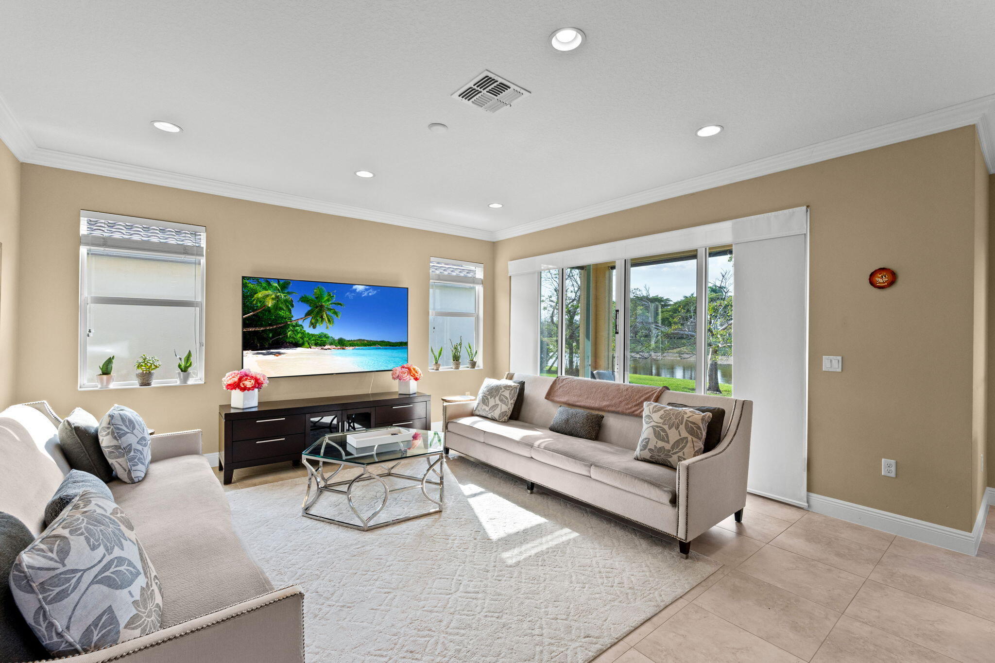 Live large, save big, and enjoy the view. Built in 2014 by Minto, this impressive 4-bedroom, 3-bath home offers over 3,100 sq ft of living space and a 3-car garage. This floorplan offers 1 bedroom and 1 full bathroom downstairs perfect for guest or in-laws. Enjoy tranquil lake views, abundant natural light, and crown molding throughout. Solar panels will be paid off at closing, keeping electric bills around $30 per month. Located in the desirable Portosol community with resort-style amenities including a heated pool, cabana, playground, splash park, sports courts, 24-hour gym, and billiard room--all just minutes from top dining and shopping.