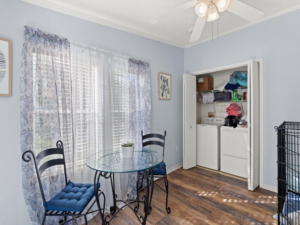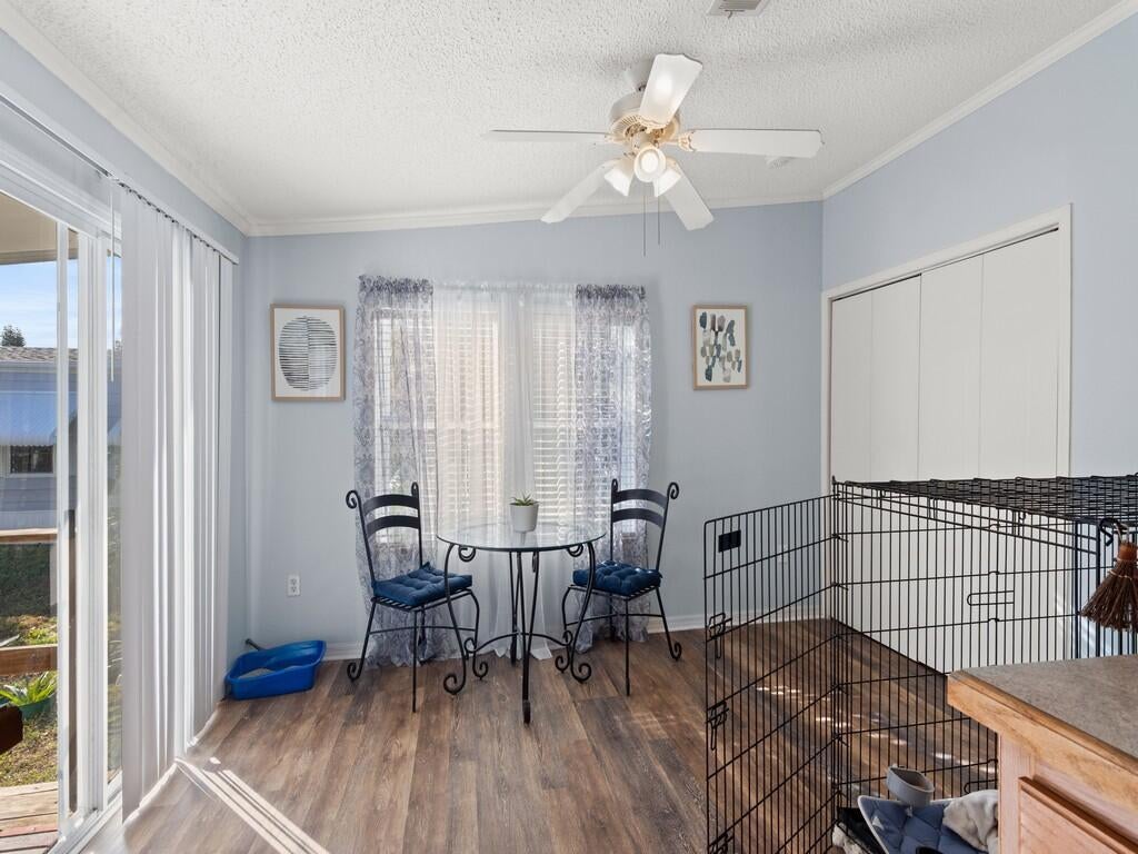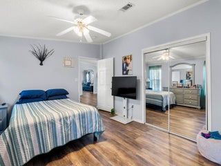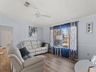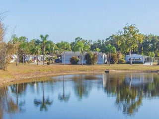 Welcome to this beautifully maintained home in the highly sought‑after 55+ community of Spanish Lakes Golf Village. This charming residence features spacious living and dining areas, perfect for both everyday comfort and entertaining with views of the lake. The kitchen offers generous counter space and cabinetry, while the primary suite provides a peaceful retreat with a large closet and private en‑suite bath. The bonus room is ideal for guests, hobbies, or a home office. Spanish Lakes Golf Village residents enjoy an impressive array of amenities, including a private 9‑hole golf course, clubhouse, pool, tennis, pickleball, shuffleboard, fitness facilities, and a full calendar of social activities. The land lease includes lawn care, trash removal, and access to all communi