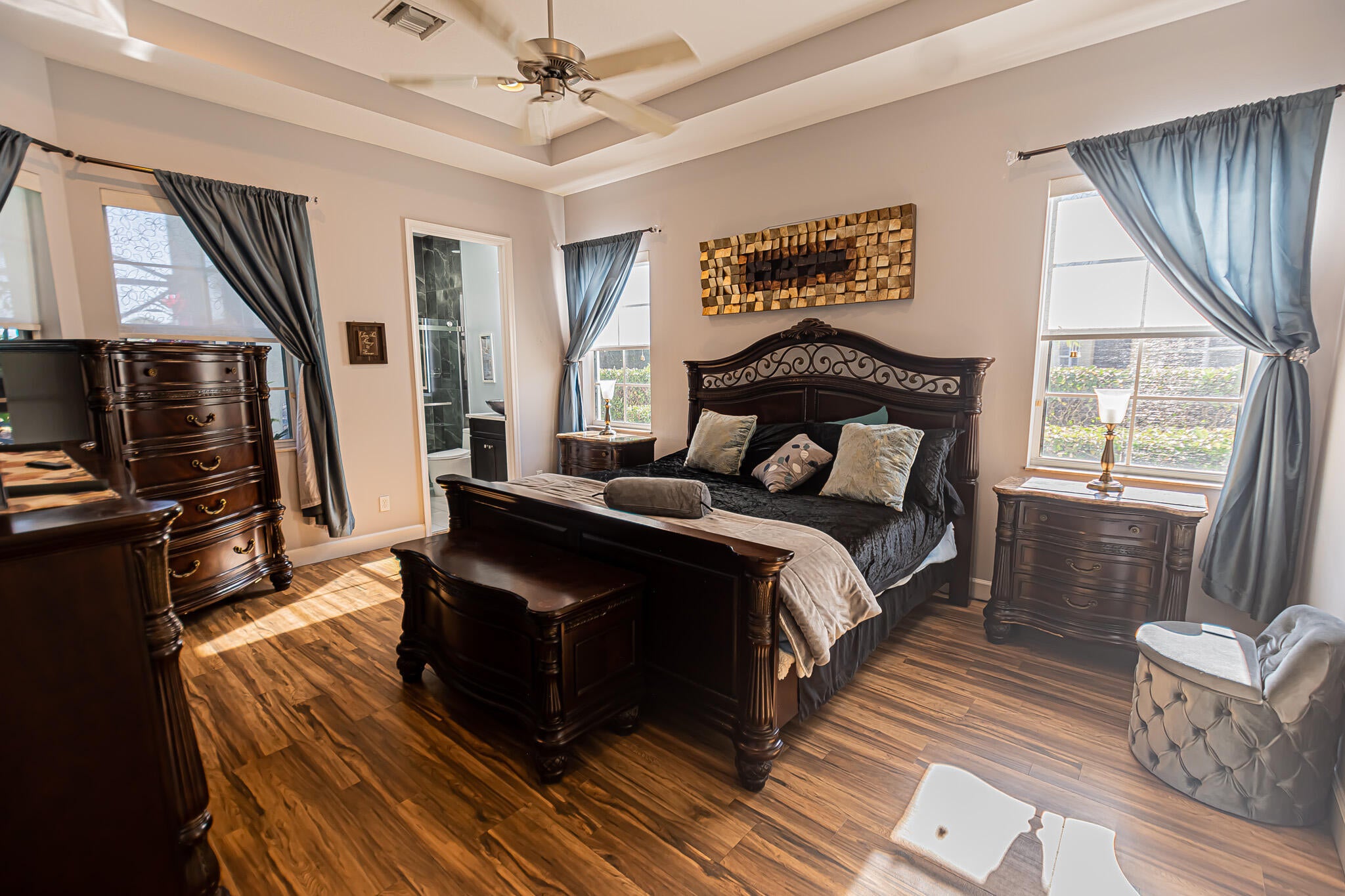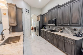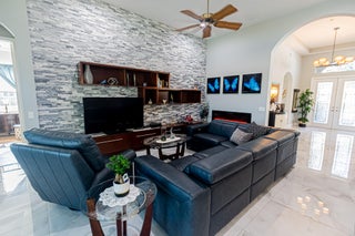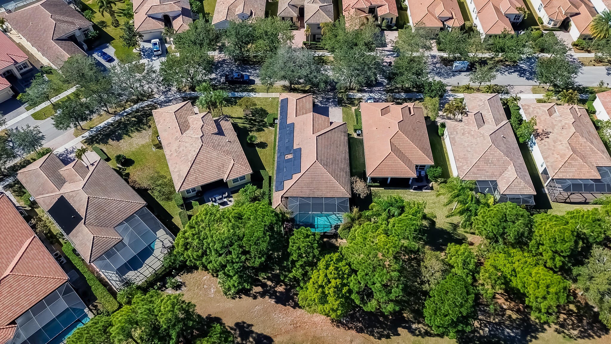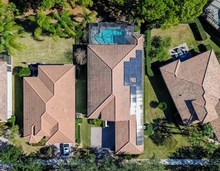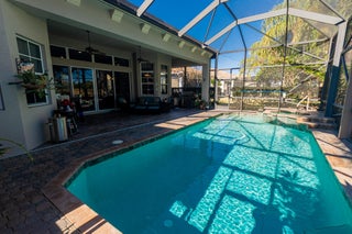 Impressive 3BR/3.5BA/2CG golf-front pool home in PGA Verano 4th green views! Features include a whole-house solar system, EV charger, high-impact windows, luxurious 24'X24' new procelain floors, custom closet cabinetry, beveled glass double-door entry, 2022 A/C. The gourmet kitchen offers granite countertops, 42'' wood cabinets with crown molding, gas cooktop, double wall oven, new stainless appliances, tiled backsplash, breakfast nook, pantry. Spacious layout includes living, dining, and family rooms with decorative fireplace and a large laundry room. Updated baths with touch mirrors, soaking tub. Relax in the covered and screened paver patio with solar-heated pool and spillway spa. HOA includes lawn care, cable, and resort-style amenities clubhouse, efitness center,pools, picklebalL