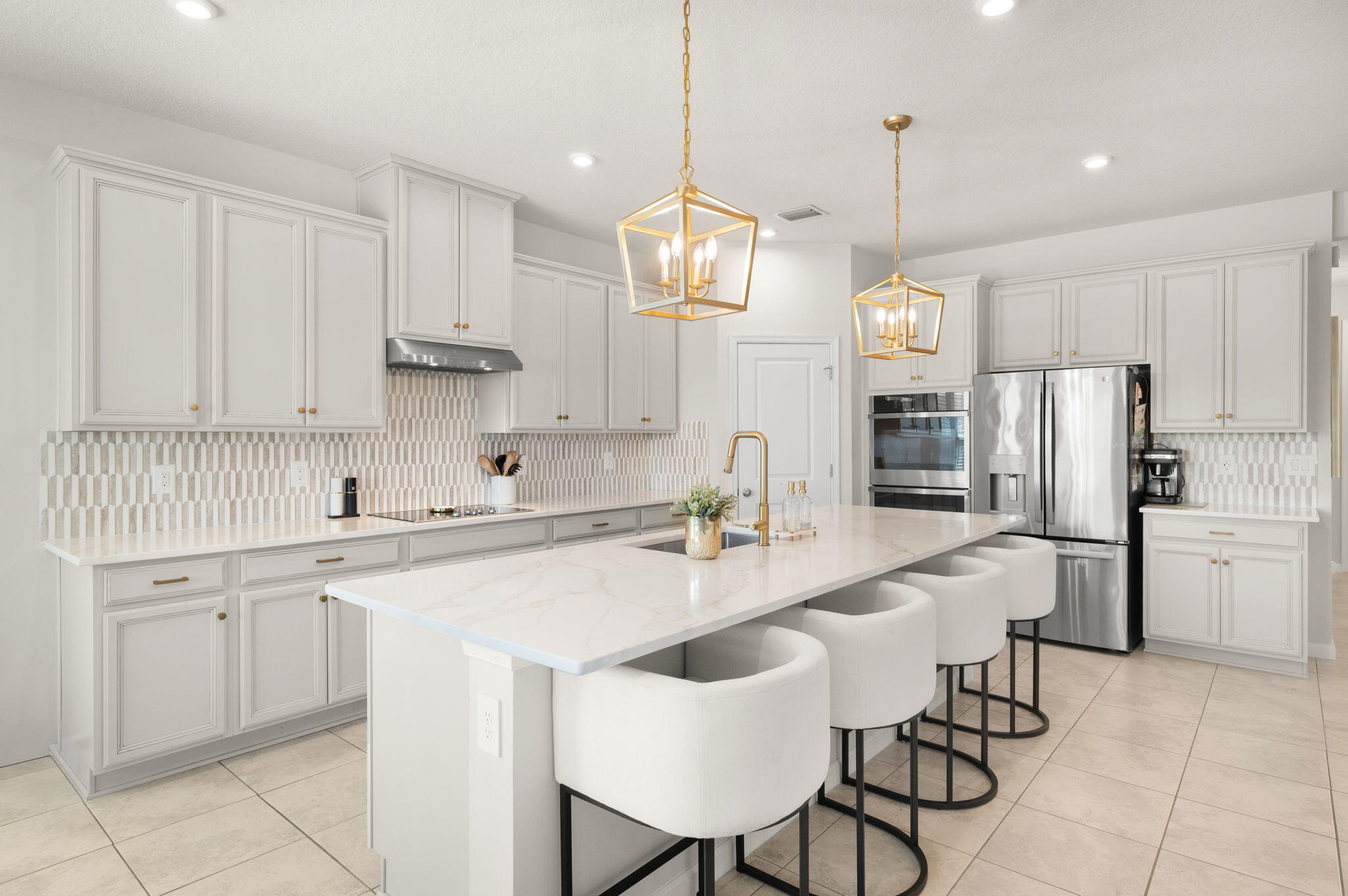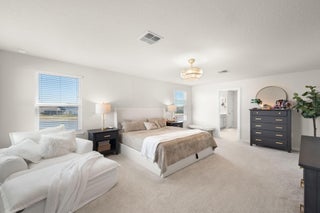 The highly sought-after Lynn Haven Plan offers 5 bedrooms, 3 bathrooms, a versatile loft, a glass French door study, and an extended lanai. This home features an upgraded kitchen with modern finishes, perfect for everyday living and entertaining, along with upgraded bathrooms that add style and comfort throughout. Designed for convenience, the main level includes a bedroom and full bath, ideal for one-level living or hosting guests. Upstairs, enjoy a spacious family room and a luxurious primary suite with a walk-in closet, dual-sink en-suite bath, and a separate water closet. Three additional bedrooms and another full upgraded bath complete the upper level. Modern features such as a WiFi-enabled garage door opener and Ecobee thermostat enhance comfort and functionality.