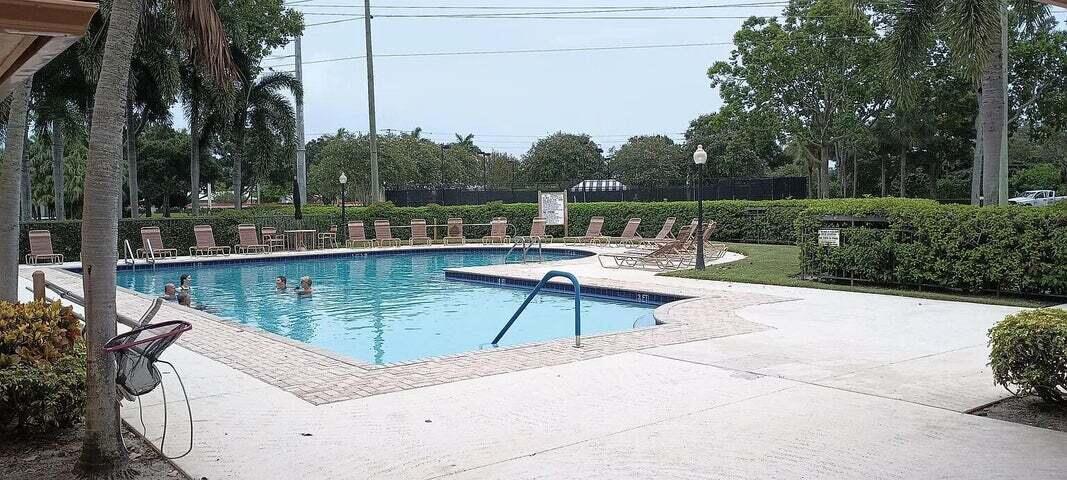 Welcome to your serene sanctuary nestled within the vibrant Villages of Palm Beach Lakes - Whitehall community. This spacious, move-in ready, meticulously clean and freshly painted 2-bedroom, 2-bath condo offers the perfect blend of comfort and convenience. Upon arrival, you'll find your assigned parking spot conveniently in front of the building. Take a short walk to the corner unit on the first floor. Step inside to discover a bright, open floor plan seamlessly connecting the dining room, kitchen, and living room. The well-appointed kitchen boasts ample cabinet space and a pantry for additional storage. The living and dining are open and inviting. Slide open the patio doors to reveal your own private screen that backs up to Bear Lakes Golf Course. Relax and enjoy the fresh air!A large laundry room, complete with a washer and dryer, offers additional space perfect for a home office or extra storage. Across the hall from the kitchen, you'll find a spacious guest room and a full bathroom featuring a shower/tub combo with a vanity and large mirror. Indulge in your private retreat within the oversized master bedroom, complete with a walk-in closet, substantial vanity with new fixtures, and a walk-in shower. The master bedroom also offers a private, screened patio. This home ensures comfort with ceiling fans, promising efficiency in cooling costs. Blinds have been installed on the kitchen and guest bedroom windows, while floor-to-ceiling blinds cover the patio windows. The condo has been freshly painted and everything is very clean. Accordion shutters wrap the entire condo providing a peace of mind during storms. As a tenant of this Whitehall condo, you'll enjoy numerous amenities including 4 heated saltwater pools, a fitness center, clubhouse, reading/game room, stocked fishing pond, and even a convenient location to wash your vehicle. Centrally located, this property is only a short drive to Tanger Outlets (2.7 miles), world renowned Palm Beach and Worth Avenue (6 miles), Palm Beach International Airport (6.7 miles), Ballpark of the Palm Beaches (3.4 miles), trendy SoSo District (5.3 miles), Downtown West Palm Beach & Cityplace (4.6 miles), Brightline Train Station (4.9 miles), Belgrove Hotel and the Dutchman's Golf Pipe Golf Club (4.1 miles) and so much more! This easy access makes this condo an ideal home or vacation sanctuary. Residents have the added benefit of access to three parks featuring saltwater pools, playgrounds, exercise trails, general-purpose fields, as well as facilities for bocce ball, racquetball, tennis, and pickleball. Meticulously cared for and ready for new tenants, this property welcomes you to a lifestyle of comfort and convenience. Make this condo your new home - your haven of tranquility awaits!