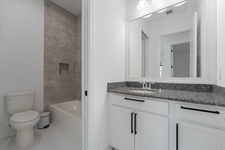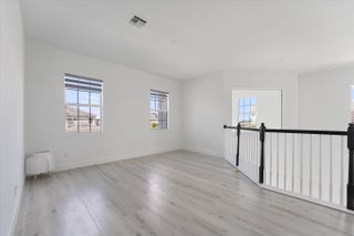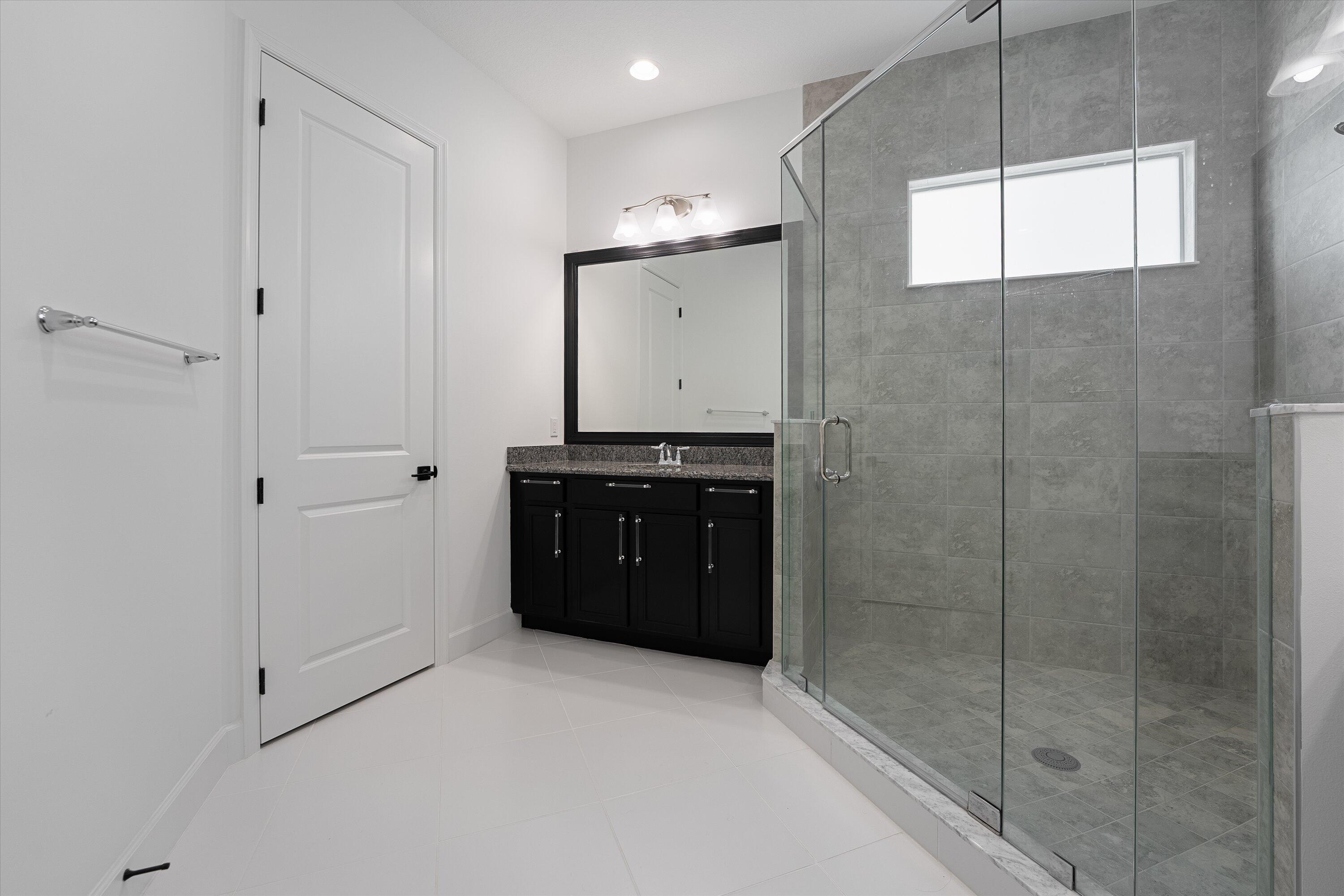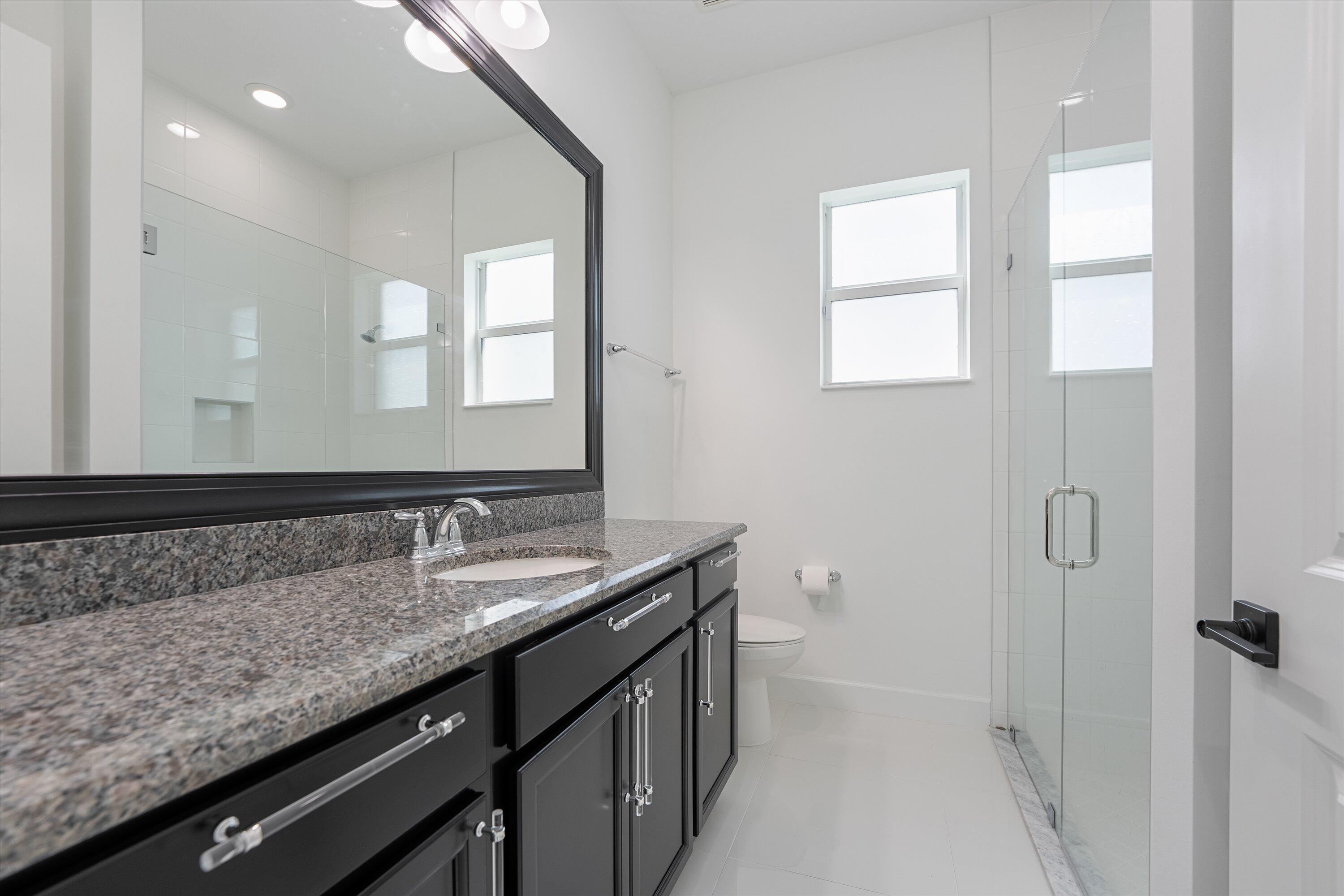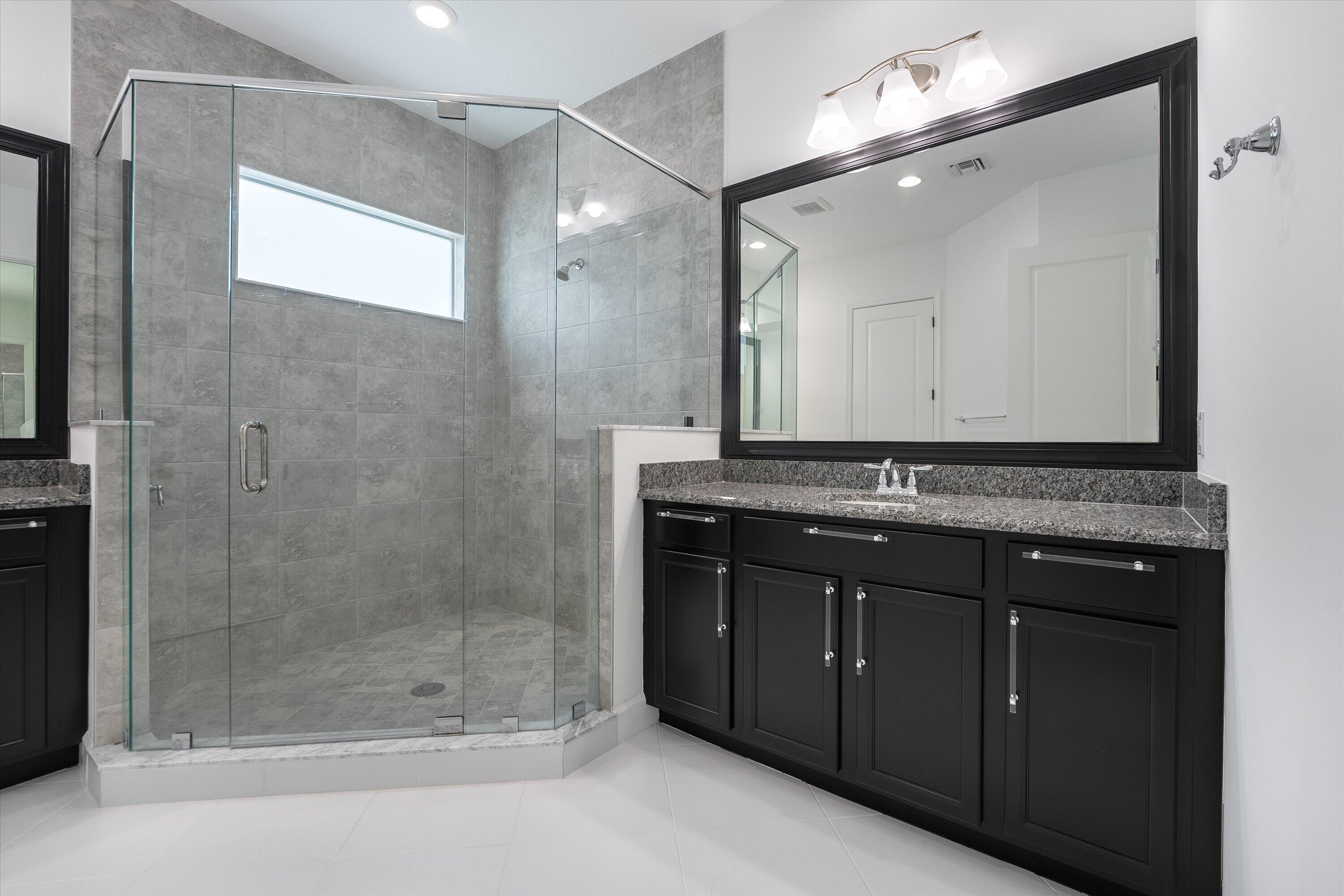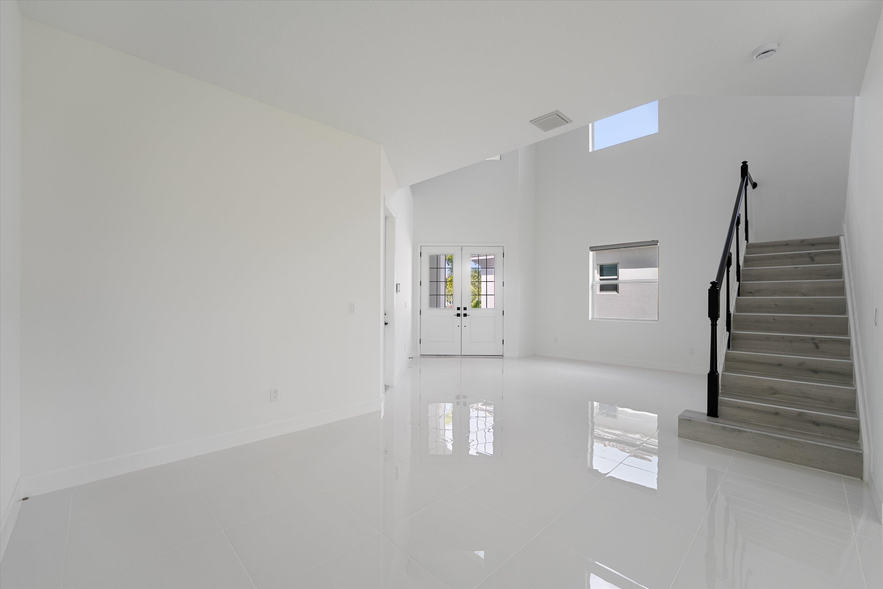 Welcome to this stunning Laurel Model two-story home with a balcony in the highly sought-after Orchards community in Westlake, Florida. With four bedrooms + Loft , three bathrooms and a three-car garage, this residence is filled with numerous upgrades and exudes a clean, modern aesthetic. As you approach the striking black double entry doors, the sense of luxury is immediate. Inside, the living area greets you with glossy white floors, soaring ceilings, and an abundance of natural light, enhancing the open and airy feel.The kitchen is a chef's dream, featuring white shaker cabinets with sleek white quartz countertops along the perimeter, a large closet pantry, and black shaker cabinets on the island for a dramatic contrast. Equipped with all-new stainless steel appliances, including a double wall oven and microwave complemented by a striking black hood, it epitomizes modern elegance. A spacious kitchen island, topped with a contemporary black and white quartz countertop, offers additional seating, while the kitchen also allows for a cozy breakfast area with a window view. The ample dining space and large family room with sliding glass doors provide seamless indoor-outdoor living, overlooking a vast backyard with extended pavers, perfect for relaxation or entertaining. Downstairs, you'll find a spacious bedroom with a walk-in closet, offering flexibility for guests or home office needs. Adjacent to this bedroom is a well-appointed full bathroom featuring black cabinets with upgraded pulls, a granite countertop with sleek silver fixtures, a beautifully framed mirror, and a seamless glass shower with elegant white tiles. Upstairs, grey wood grain ceramic tile extends throughout the entire level, leading you to a versatile loft area and the luxurious master suite. The master bedroom, with a tray ceiling, boasts a sitting area with impressive 10-foot ceilings. From the master suite, step out onto a covered balcony that overlooks the serene backyard. The master bathroom is spacious and stylish, offering dual sinks separated by a corner shower, black cabinets, sleek silver fixtures, and gray shower tiles with matching floor tiles. Its clean white tile flooring adds a touch of sophistication. Two additional bedrooms upstairs include a walk-in closet and another with a standard closet, both offering comfort and ample space. The upstairs bathroom features white shaker cabinets, gray granite countertops with black pulls, silver fixtures, and a white framed mirror, with a separate tub and toilet room. The shower is beautifully tiled in a horizontal pattern, with a clean white tile floor. The conveniently located laundry room includes brown shaker cabinets, granite countertops, and an upgraded washer and dryer. Experience the perfect blend of modern design and comfortable living in this exceptional rental home.