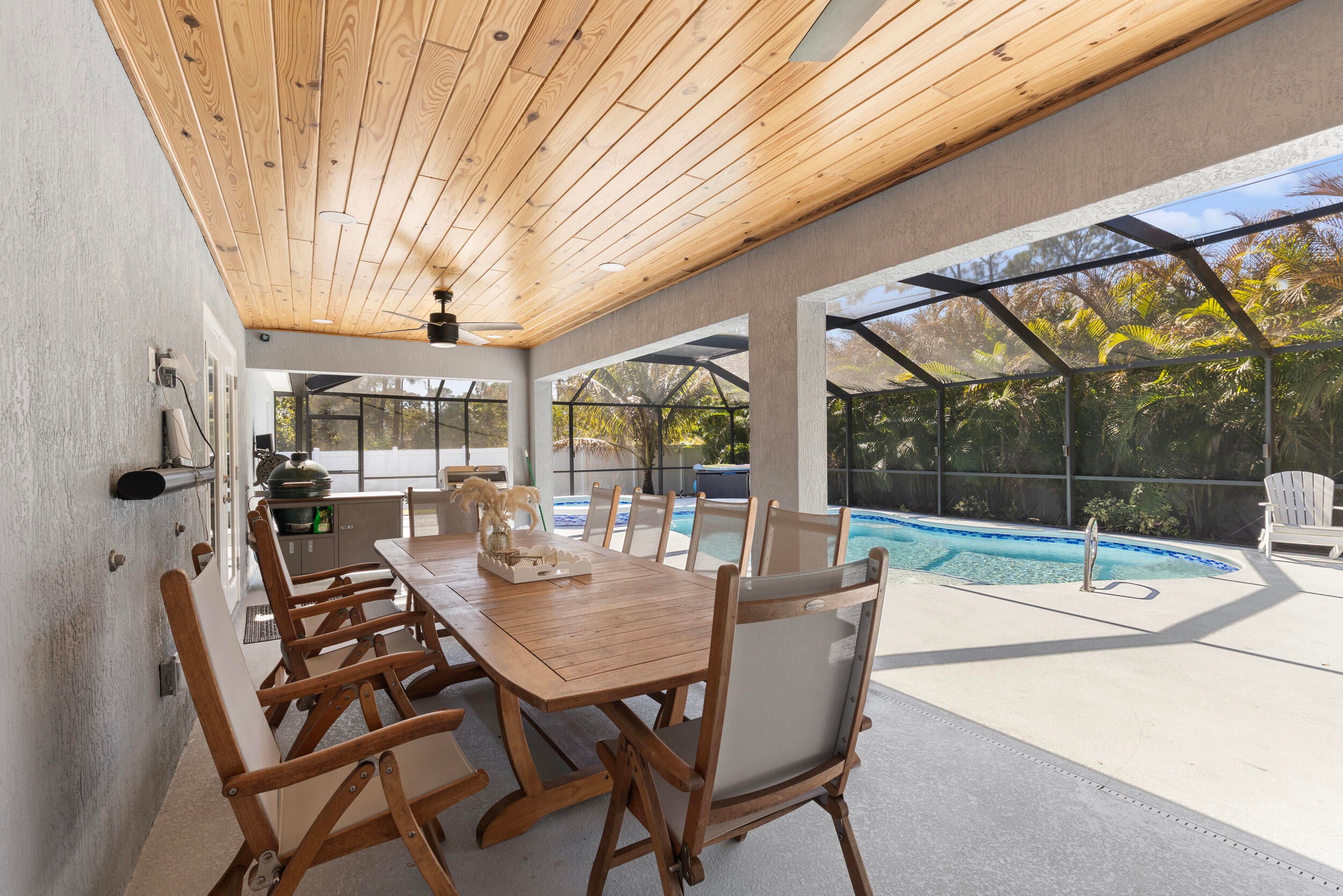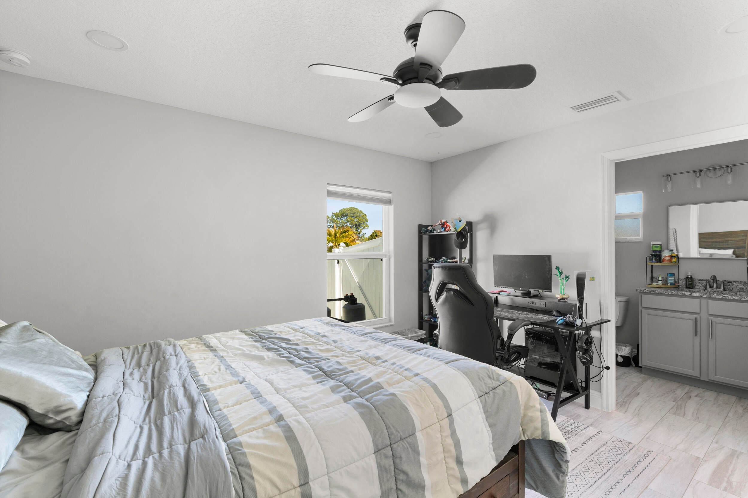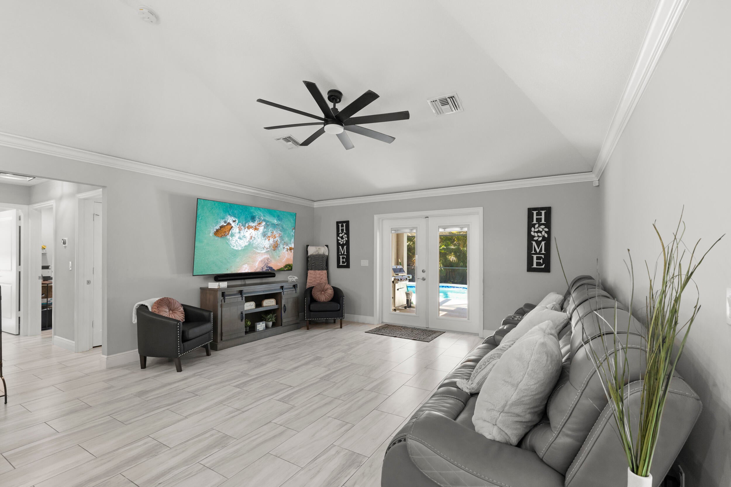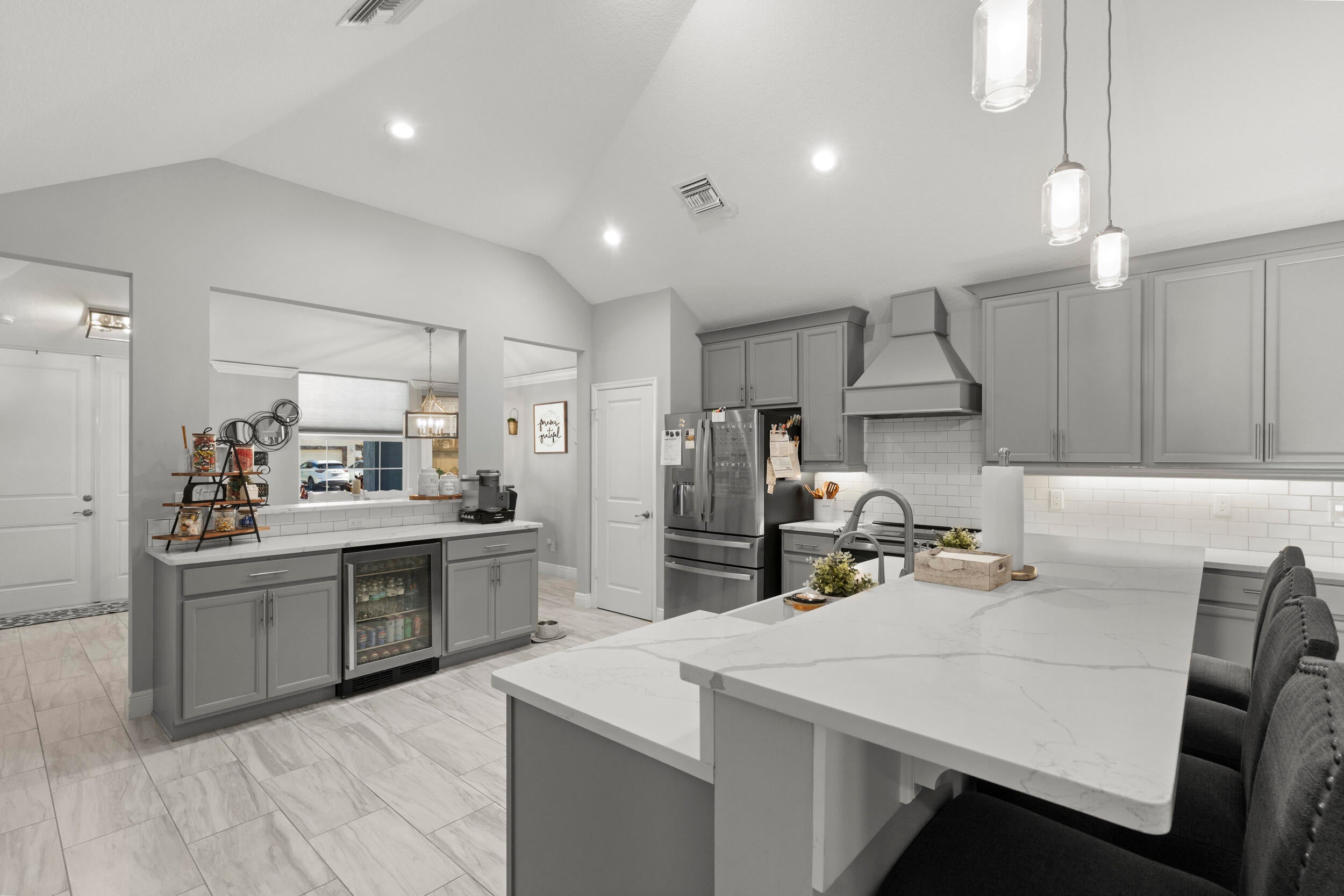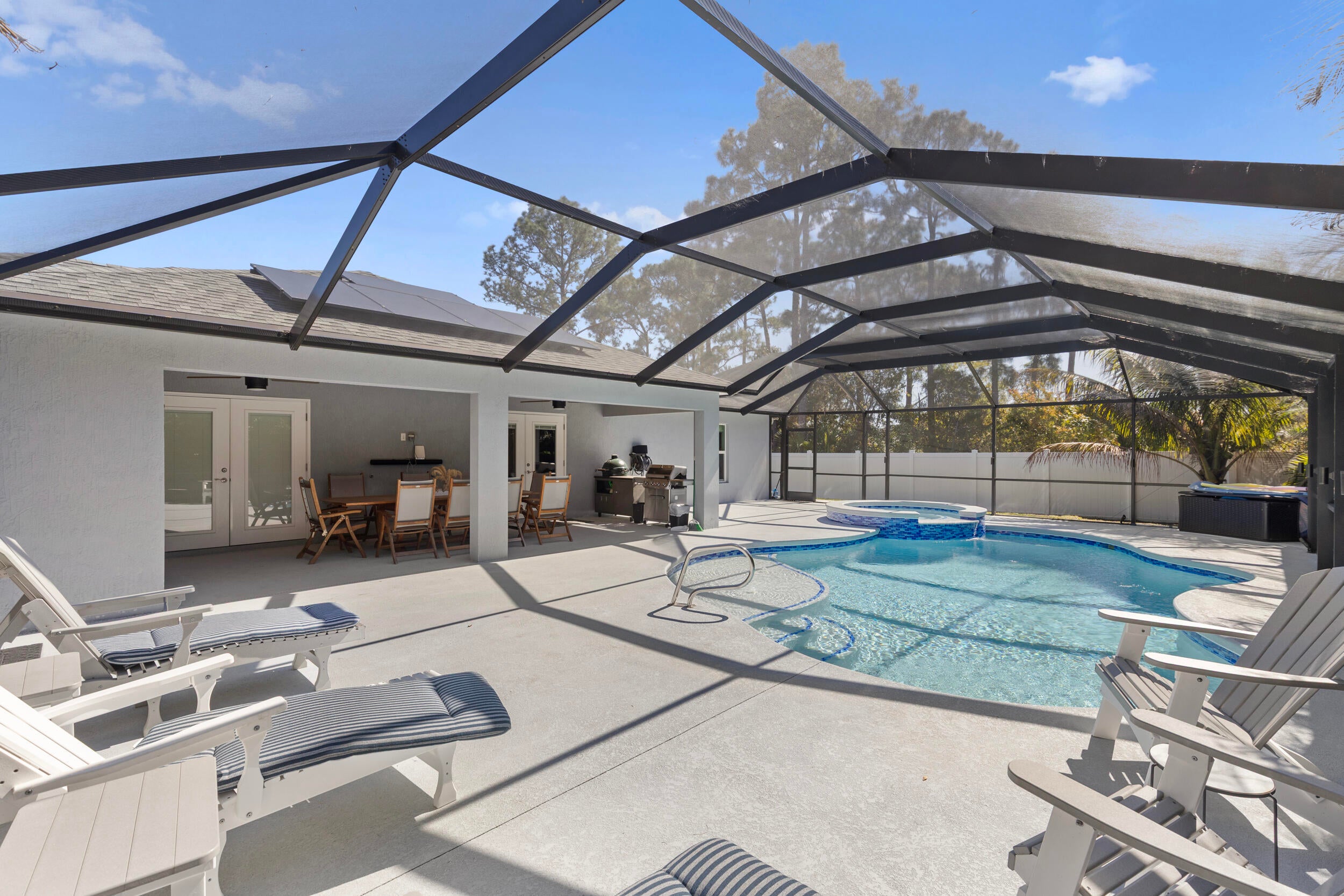 Stunning Groza-built 4-bedroom, 4-bath home with 2,120 sq ft under air, featuring a pool and spa and a 2-car garage, with a true split floor plan and high-end finishes throughout. The spacious kitchen is equipped with top-of-the-line stainless steel appliances, quartz countertops, and a large island perfect for cooking and entertaining. The primary suite offers a custom built-in closet system, dual sinks, and a beautifully finished modern bathroom, while all bedrooms feature additional recessed lighting for a bright, contemporary feel. This home is loaded with premium improvements, including owned solar panels, a whole-house generator with a 500-gallon underground propane tank, a full Ring security system, a whole-house water filtration system, a new reverse osmosis tap in the kitchenand a WiFi-controlled pool and spa. Outdoor living also features low-voltage landscape and pool lighting, a tongue-and-groove patio ceiling, a full irrigation system with rust prevention, and lush landscaping for privacy. The property is fully enclosed with vinyl fencing and features gutters around the entire home. Located in desirable Port St. Lucie with no HOA, this home combines comfort, efficiency, security, and luxury in one exceptional package. Schedule your private showing today.