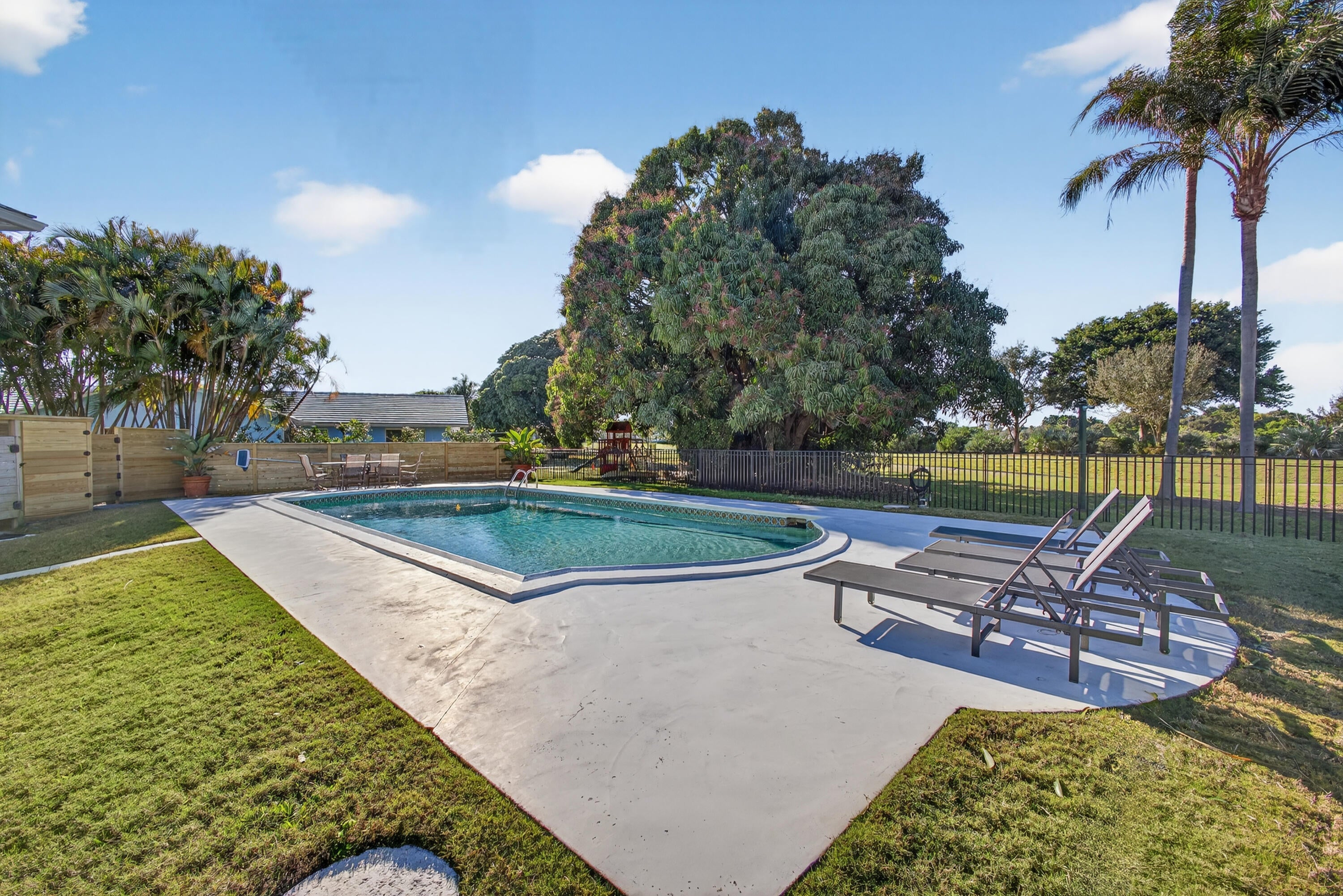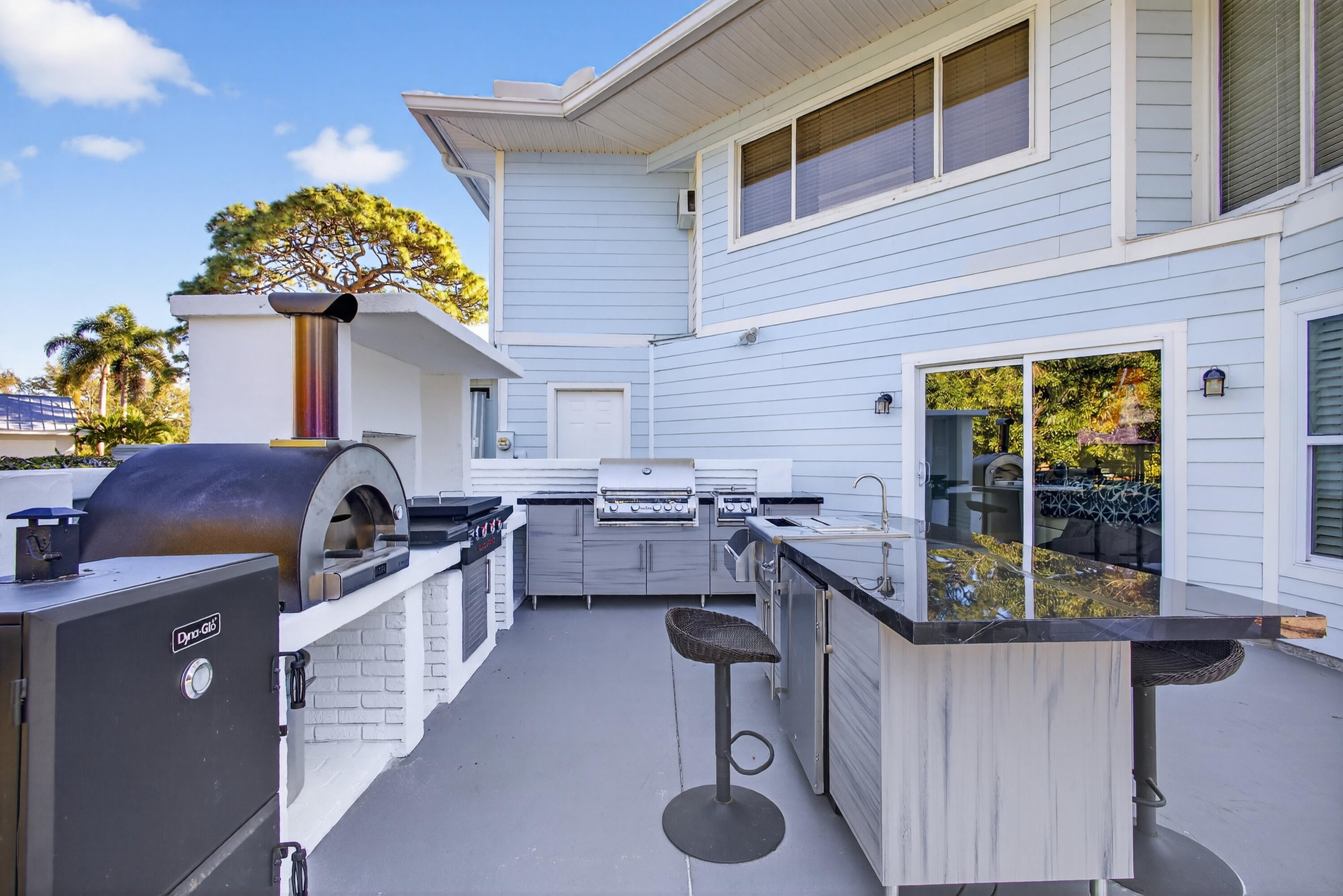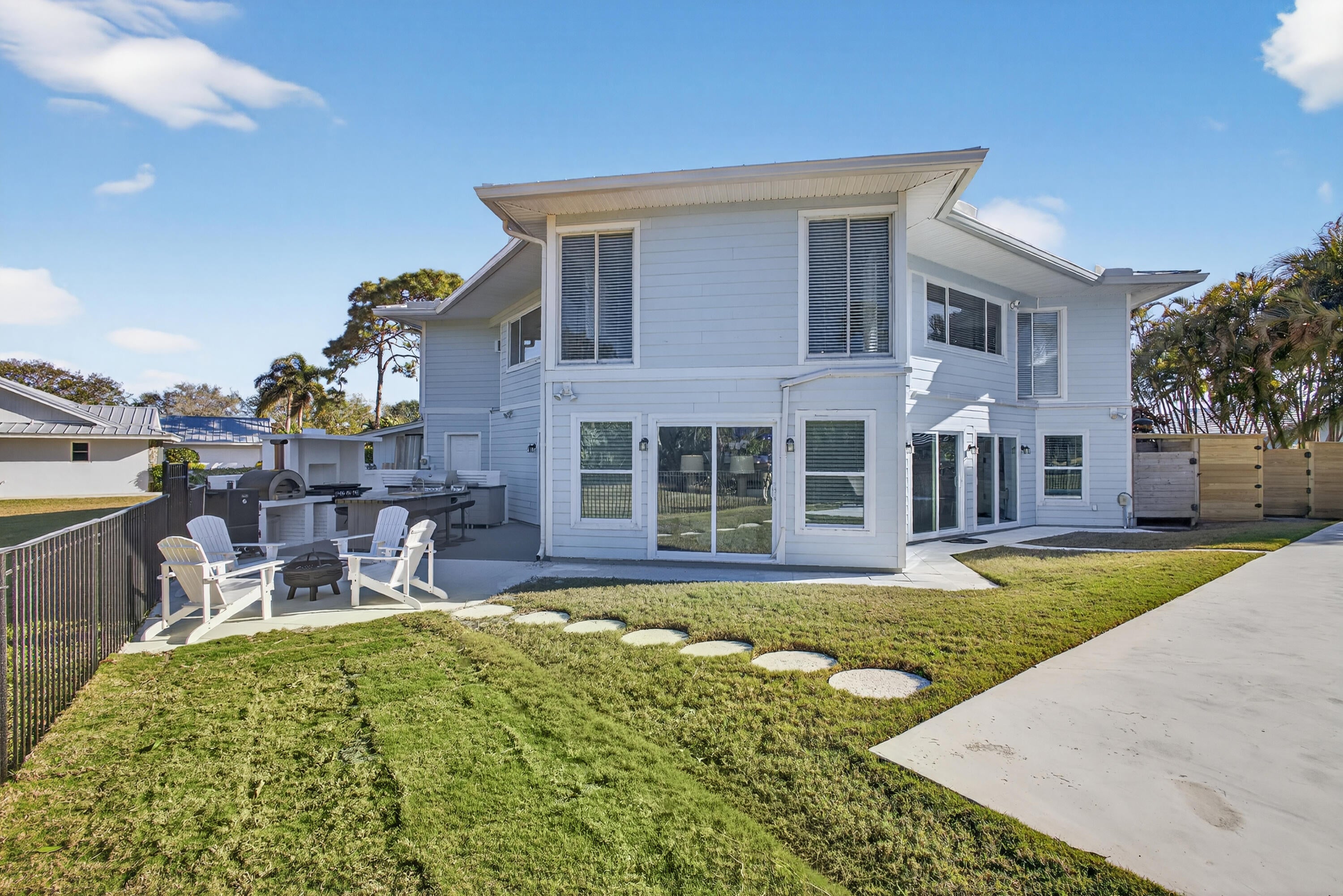 Auto Sprinkler, Built-in Grill, Covered Patio, Fence, Fruit Tree(s), Open Patio, Outdoor Shower, Summer Kitchen