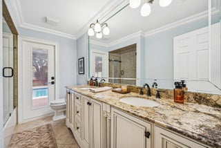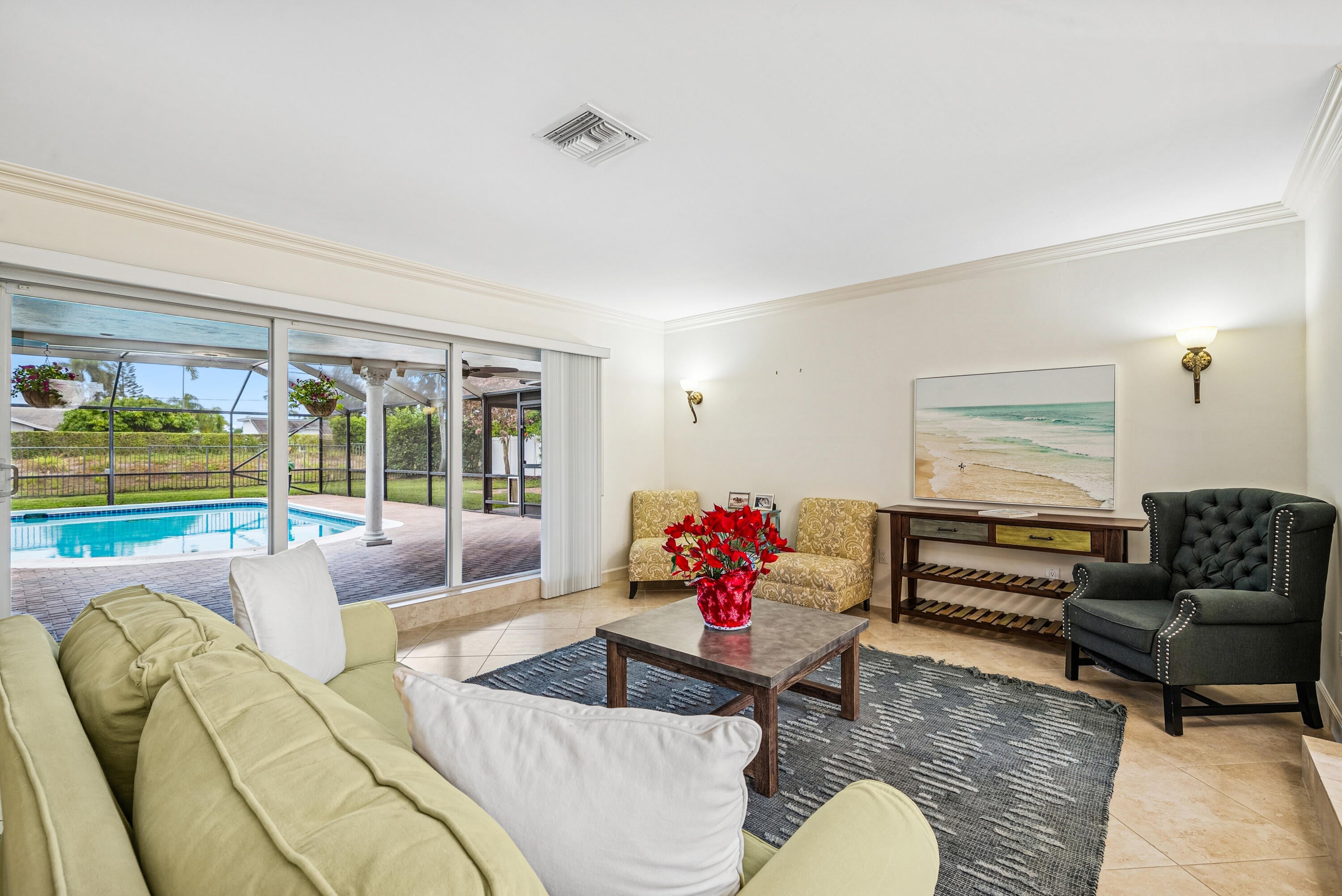 Exceptional 4-bedroom, 2.5-bathroom pool residence situated on an expansive, lushly landscaped 1/3-acre lot in the highly sought-after Sherwood Park community. The thoughtfully designed split floor plan features formal living and dining rooms along with a spacious family room--all seamlessly opening to the covered patio and pool for effortless indoor-outdoor living. The updated kitchen showcases white cabinetry, granite countertops, breakfast bar seating, and stainless steel appliances. The primary suite offers wood flooring, designer lighting, custom window treatments, a generous closet, sitting area, and a spa-inspired en-suite bath with dual granite vanities, custom lighting, glass-enclosed shower, and soaking tub.Complete impact windows and doors provide peace of mind and energy efficiency. Fully renovated throughout, the home is complemented by a resort-style backyard complete with a pool, screened patio, and outdoor kitchen ideal for entertaining. Located in one of Delray Beach's premier neighborhoods with no HOA, just minutes to the beach, golf, and vibrant downtown Delray.