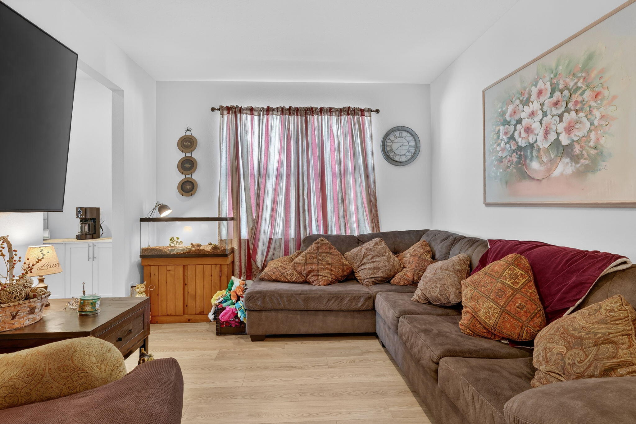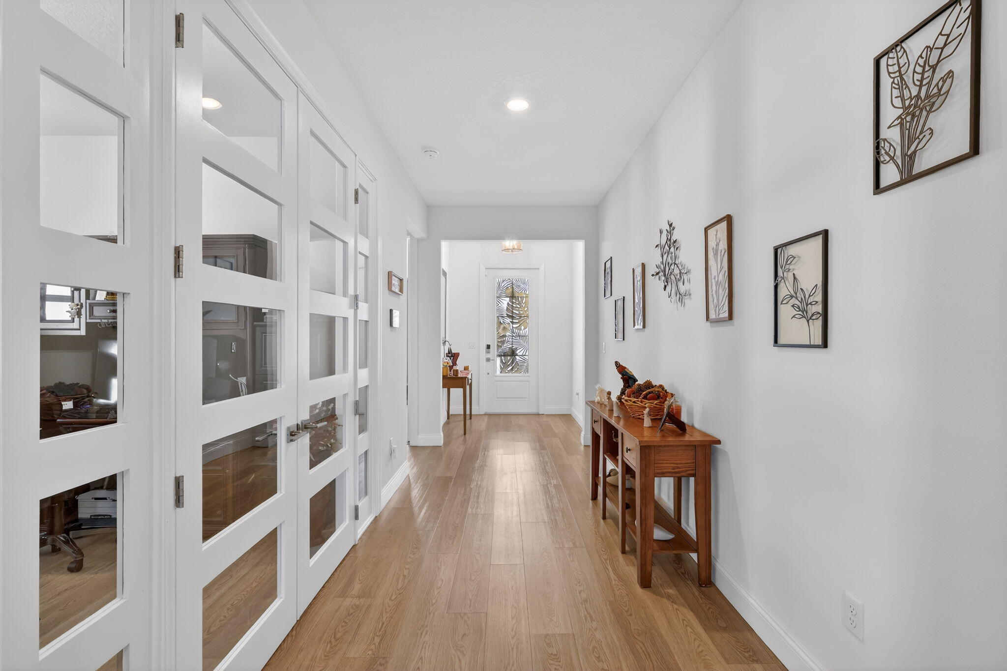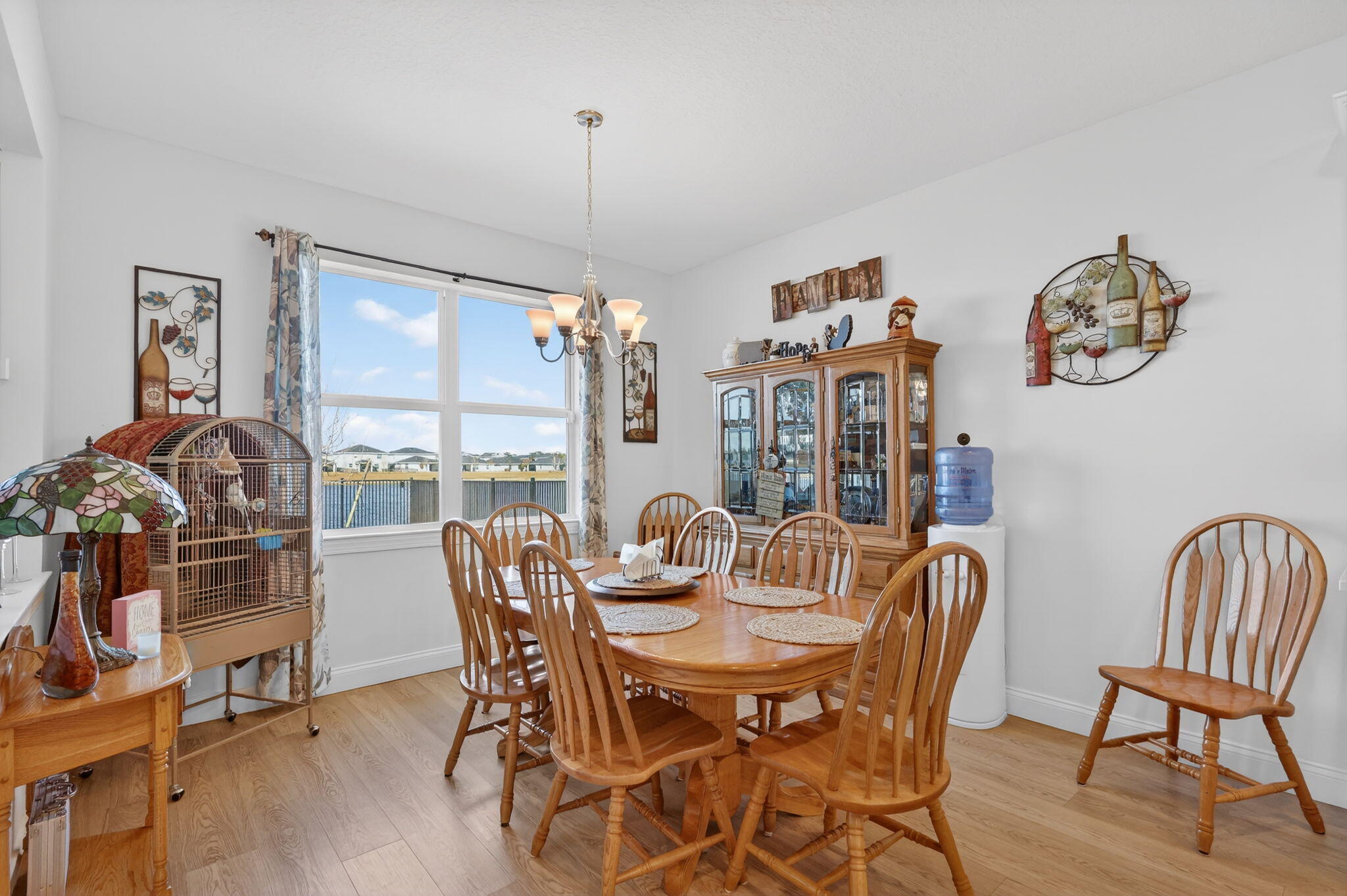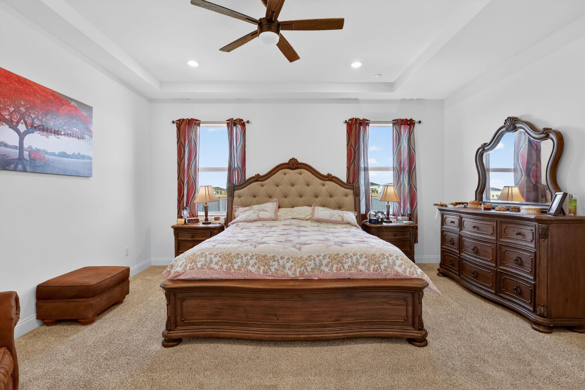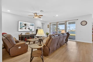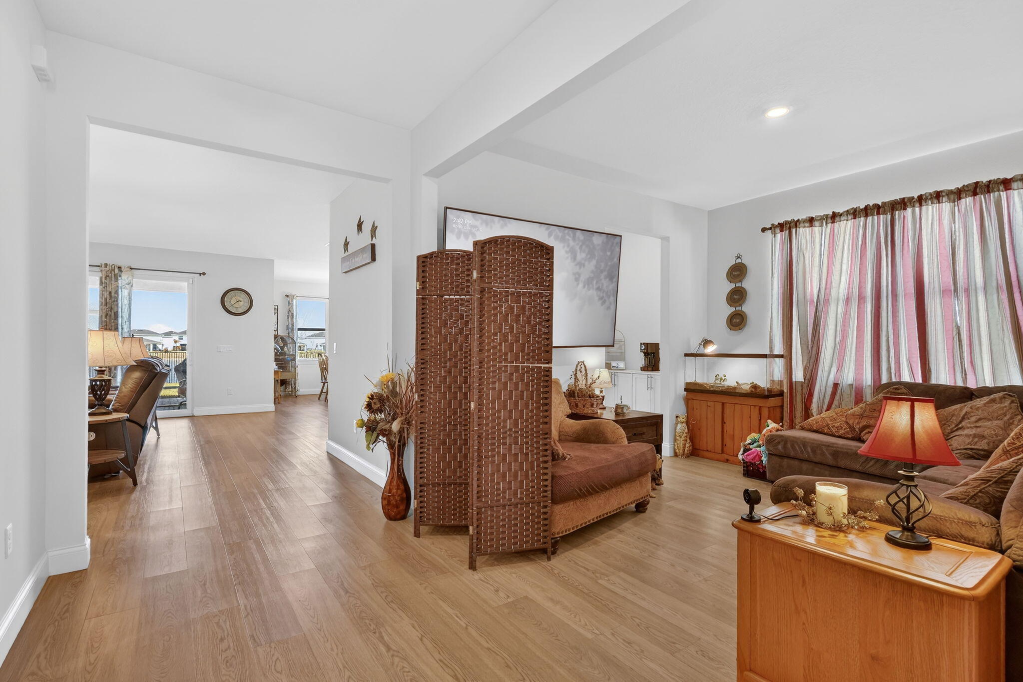 Hurry don't miss out on this upgraded Meritage Onyx model in Brystol at Wylder! Spacious 4 BR/ 3BA / 3-car garage, with impact windows and doors throughout. Home features an open floor plan where you can enjoy awesome lake views from every window and the 3-panel easy glide sliding impact doors in the rear of the house. Entertain in the screened-in covered Lani with extended patio and fenced yard. Gourmet Kitchen with generous size dining area, huge island, soft close cabinets with pullout shelves, smooth cook top, stainless steel appliances, hands free Moen faucet, walk-in pantry. Private owner's suite is situated in the rear of the home, with oversized closet and Spa style shower.Plus, there are 2 Flex rooms that can be use as office/den/2nd living area. Home includes Alarm system hook up and smart home features (keyless entry, Honeywell Thermostat etc.) Laundry room is massive sporting utility sink, and plenty of cabinets. The garage is equipped with MyQ garage door openers, non-slip epoxy flooring and plenty of storage shelves. Enjoy resort-style living Amenities with Walk in pool and fitness center, pickle ball courts, dog parks, walking trails and entertainment area. Minutes from I-95 and plenty of shopping areas. Built by Meritage Homes for Energy efficiency and modern comfort in Port St. Lucie's newest master- planned community. HOA fees include lawn and tree maintenance, landscaping of both home and common area, plus access to all Amenities