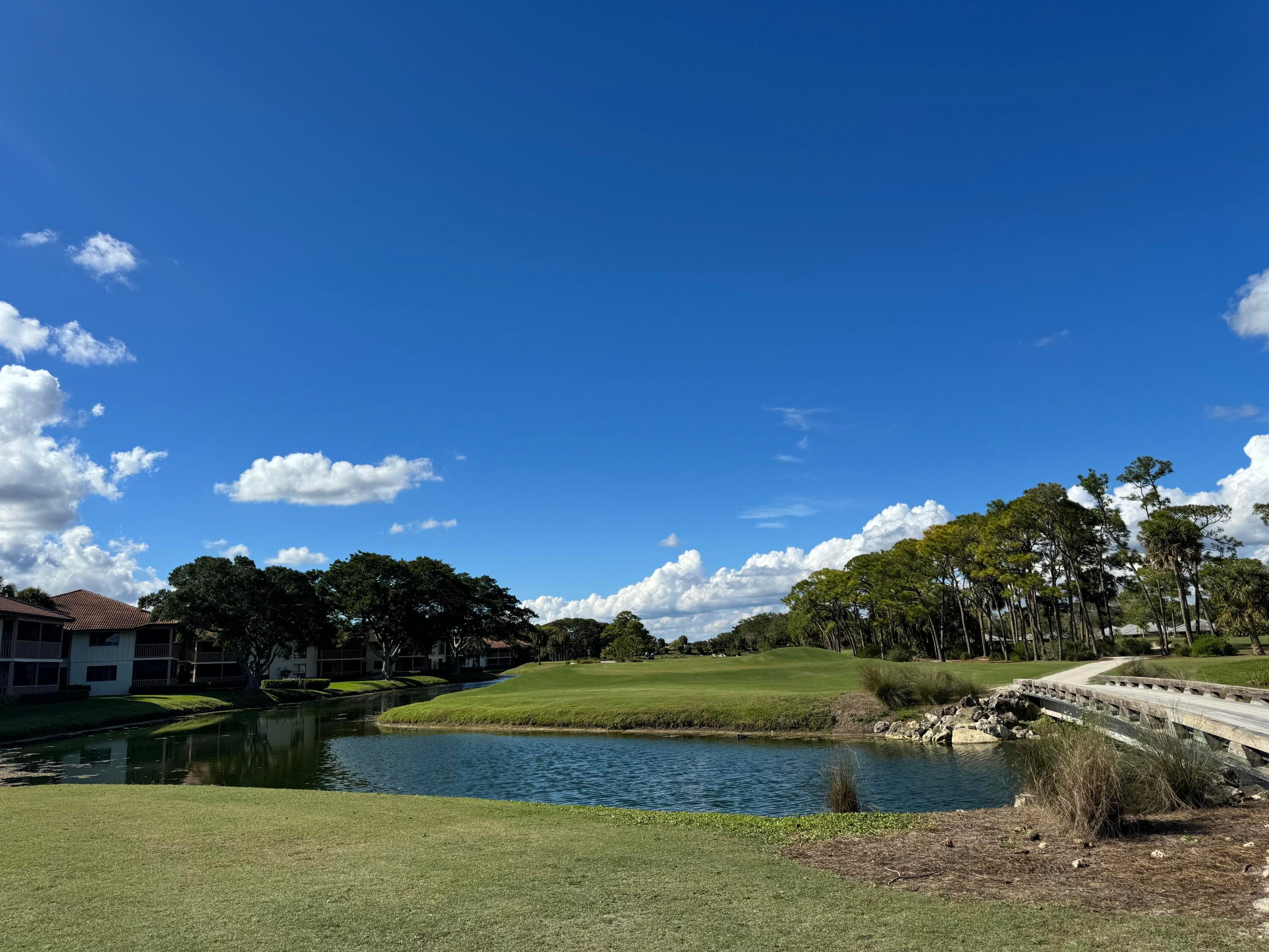 Enjoy all the comforts of home in this light, bright and open corner end unit Golf Villa now available for seasonal or off-seasonal rent (commencing June 1, 2026) in PGA National. Enjoy panoramic views of Champion Golf Course and Lake. This unit is perfectly perched on a private corner steps away from the community pool. Renovated kitchen and baths. Tastefully furnished with one king bed in primary bedroom and queen bed in 2nd bedroom. Come and enjoy gorgeous sunsets from this lovely unit. Close to PGA Resort, PBI Airport, fabulous shopping and restuarants.