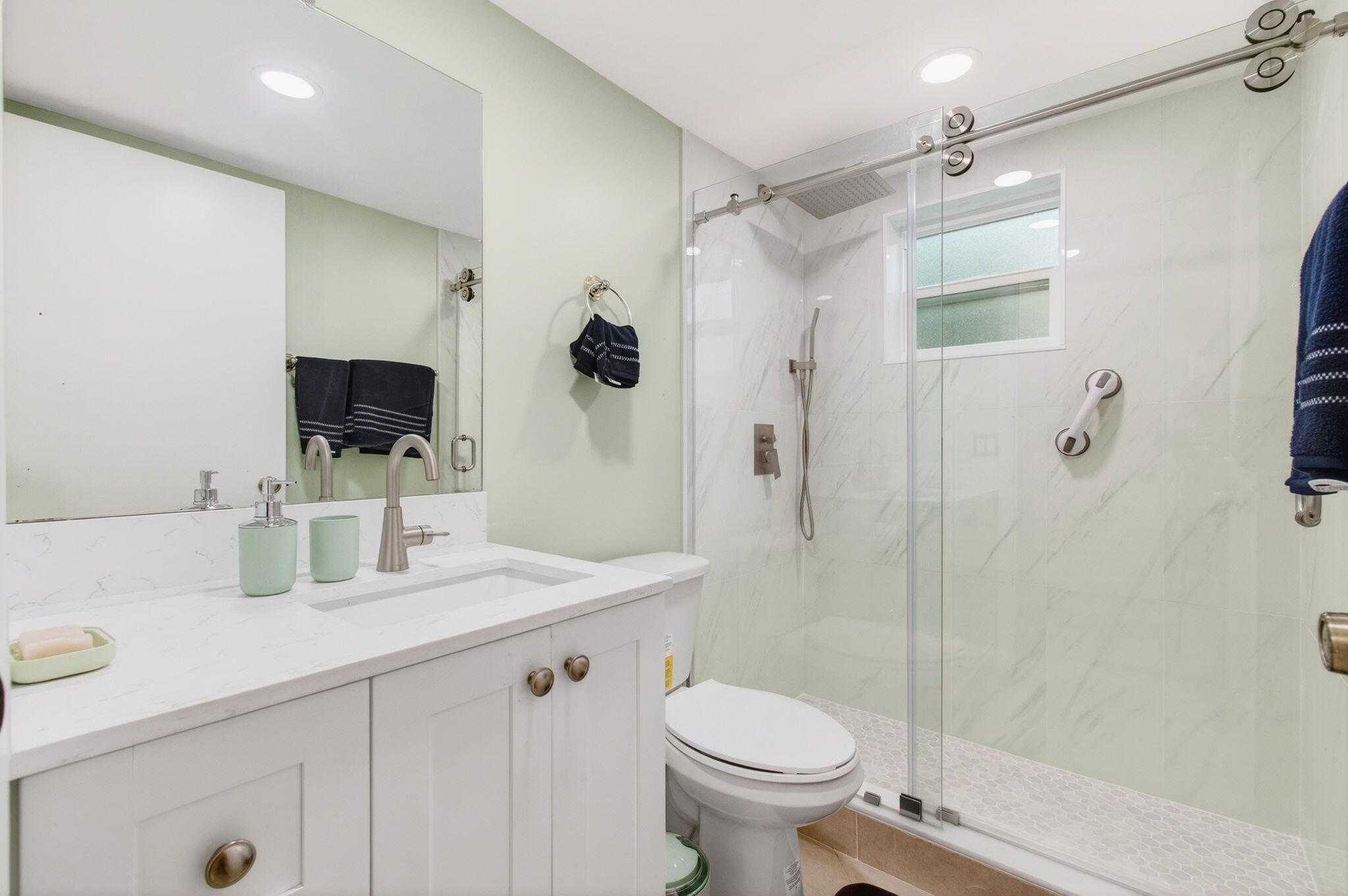 55 plus adult community.Move right into this SPECTACULAR REMODELED 2-bedroom, 2-bath ground-floor condo featuring quality upgrades throughout. Renovated approx. 3 years ago, this light-filled home offers full hurricane-IMPACT windows and doors for comfort, security, and efficiency. The modern kitchen boasts a true island, quartz countertops, and stylish finishes, opening to spacious living and dining areas ideal for entertaining. Updated baths, ceiling fans in every room, A/C (2019) and water heater (2022) add peace of mind. Enjoy a private primary suite and serene screened patio with exterior door and tranquil views. Blackout shades in the second bedroom add functionality. Located in Kings Point 55+ with world-class amenities. UNFURNSIHED