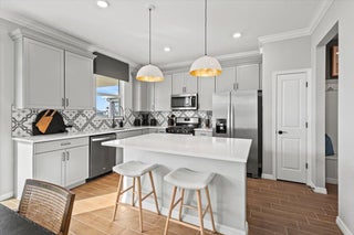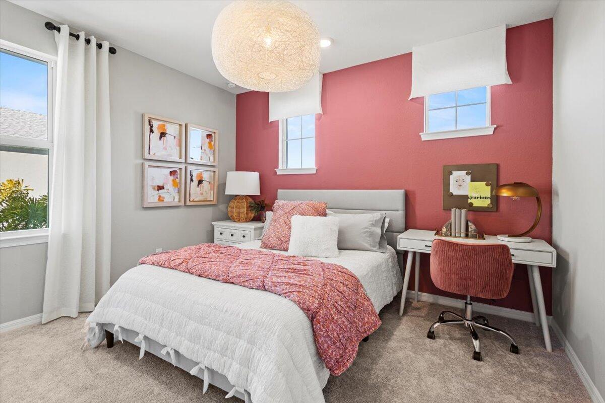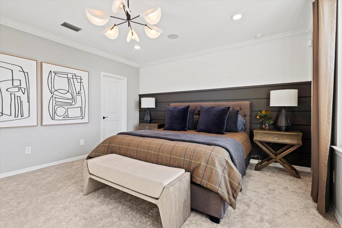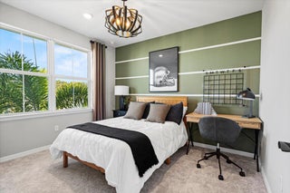 This is a beautiful builder's model, 2022 with 4 bedroom plus den, 2.5 bathrooms and 2 car garage with Impact windows. This great lakefront property is located in the very nice community of Heron Preserve. Come sit on your large covered lanai to BBQ and watch some sunsets on the long lake views. Buyer to verify all information and measurements.