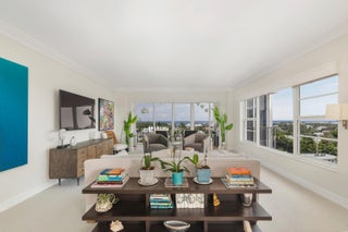 Welcome to Delray Beach, Seagate Manor 806! This beautiful 2-bedroom 2-bath, 55+ condo, located on the SE corner of the 8th floor, offers views of the ocean & Intracoastal Waterway. The bright living area flows seamlessly into the dinning & sun room, with views from every window. Subzero refrigerator & upgraded counters in kitchen. Primary suite features updated bath with double vanity & shower, 2 walk-in closets, and ocean views. Washer & dryer in its own room, providing more storage. The guest bed & bath includes an updated bathroom with a shower/tub, it is currently set up as an office, and walk-in closet for ample storage. All impact windows! Stroll down the street to beautiful beaches, vibrant nightlife & shopping on Atlantic Ave. Dock slips currently available.
