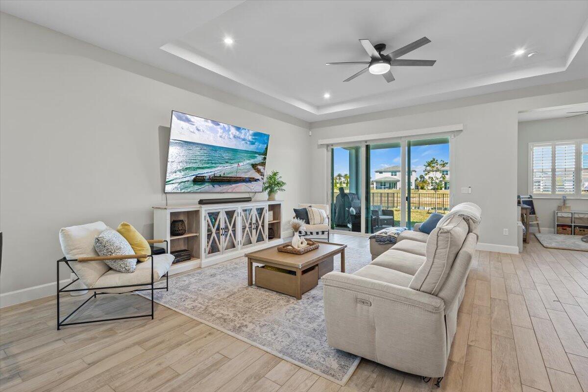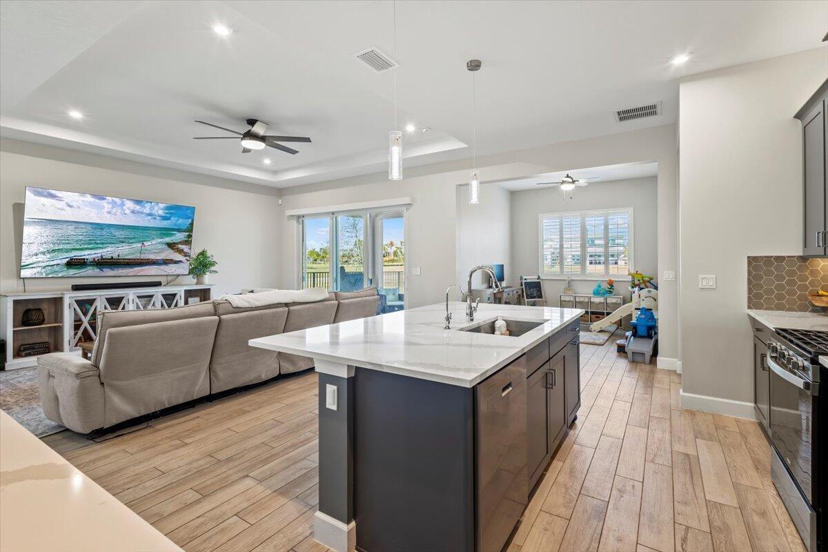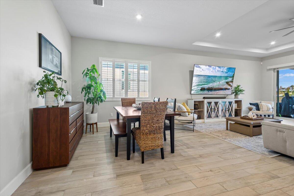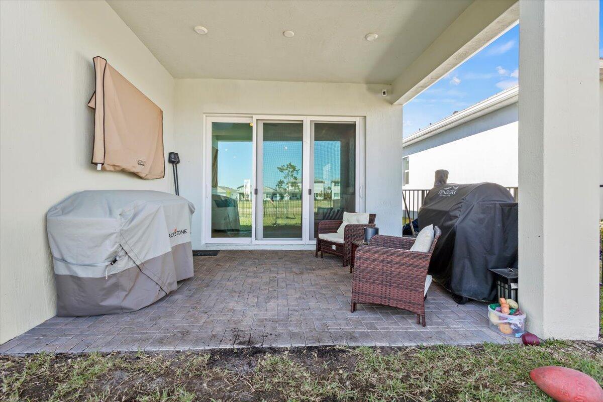 Move in ready.. Lakefront, 4bed 3 bath, built in 2024, Meridian Model..beautiful home with many already added in builder upgrades and then some; better than new! Some upgrades include custom built master closet and pantry (10/25) tile floors throughout home, plantations shutters on all windows, fenced in yard, epoxy garage floor, brand new whole house water treatment system & reverse osmosis filtration (1/26), retractable blinds on back door sliders, and upgraded LG washer and dryer..Turnkey modern home with spacious designer kitchen, and open layout located in Seville at Tradition offering resort-style amenities including a pool and pickelball..a playground for the kiddos.. new clubhouse and gym due 5/26..HOA fees include cable, internet, lawn, and regular neighborhood patrol.. a gem!!!