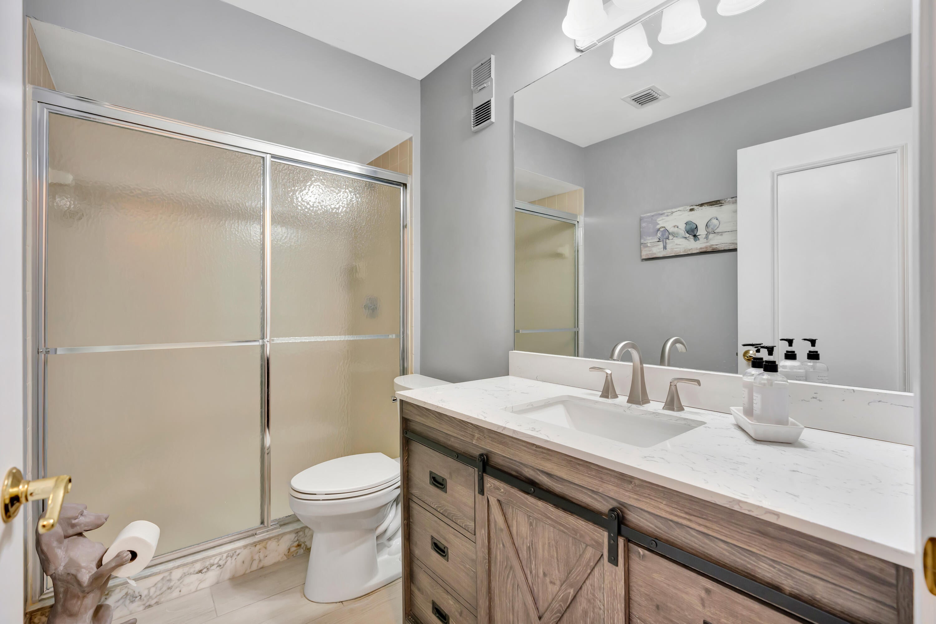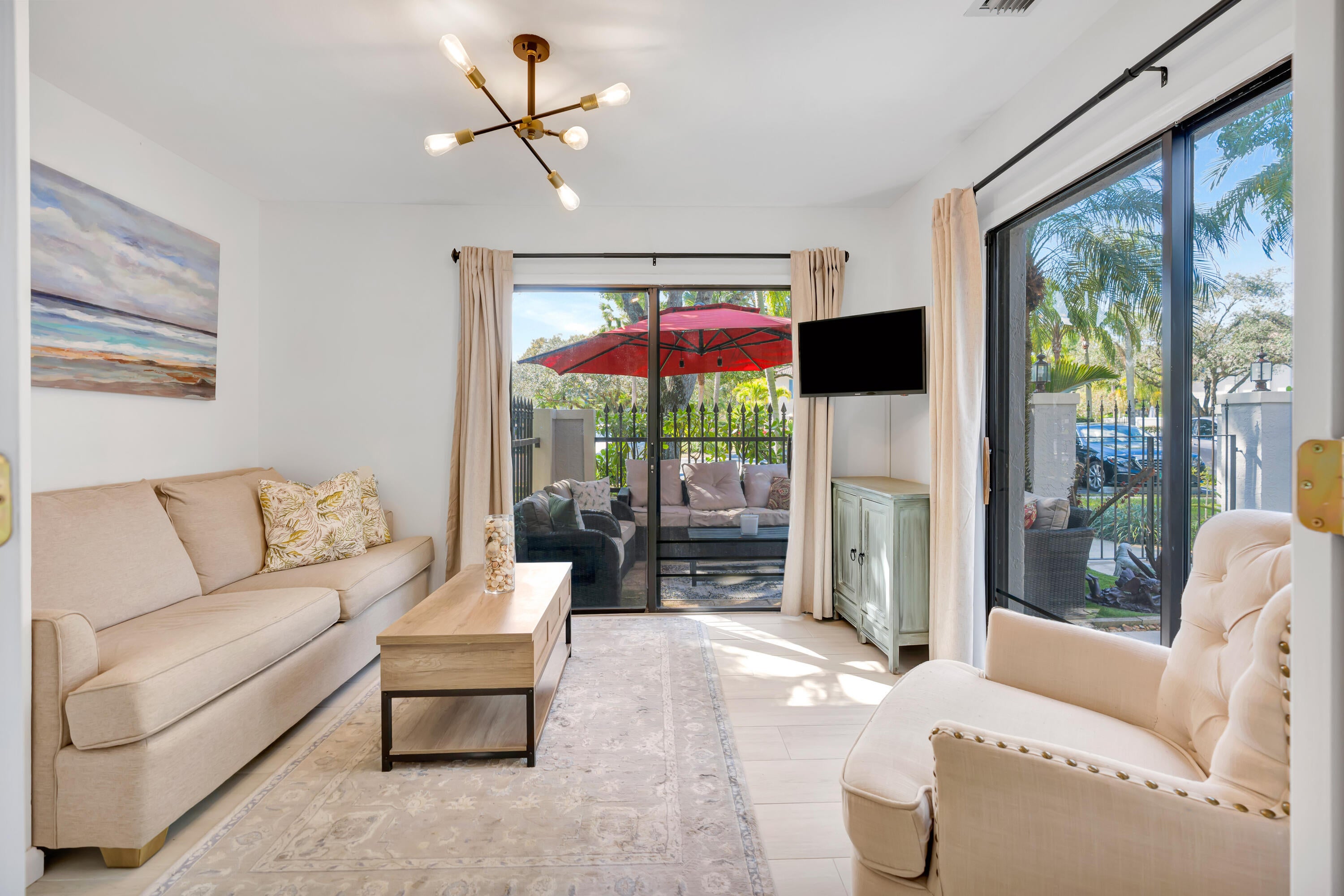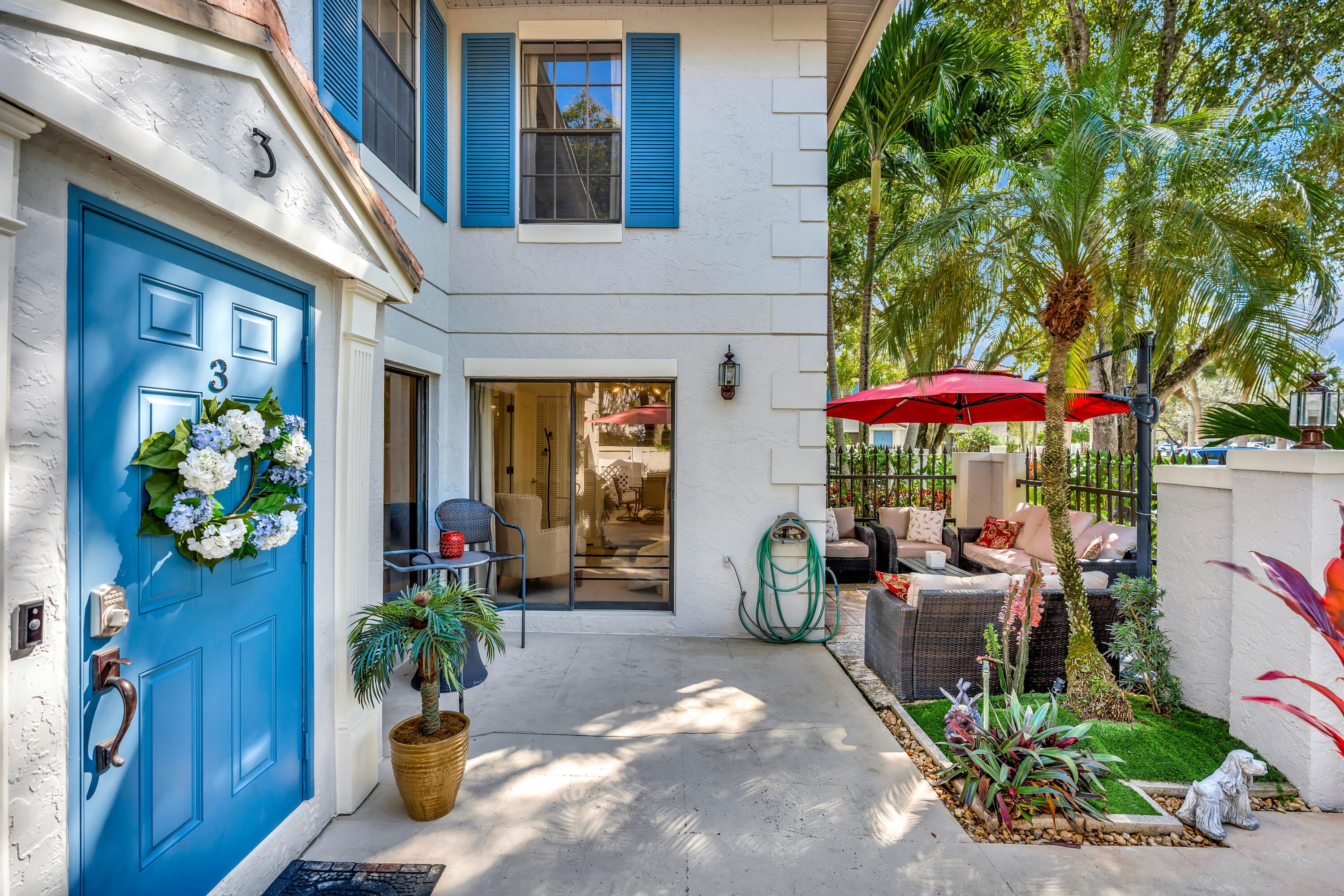 Don't miss this rare opportunity to own a true 3-bedroom, 3-bathroom townhome in the prestigious, world-renowned PGA National gated golf community. This two-story corner unit features a renovated kitchen and bathrooms, new flooring throughout, and is being sold fully furnished and completely turn-key.The light-filled, open floor plan includes a desirable first-floor bedroom with a full bath and opens to a spacious, private fenced courtyard patio--ideal for outdoor living and entertaining. The home is conveniently located just steps from the community pool.Enjoy low HOA fees, 24/7 roving security within a secure gated community, and optional (non-mandatory) PGA National resort memberships. This sought-after community borders the premier championship golf course.PGA National offers serene lakes and world-class amenities including resort-style pools, spa, dining, and more.