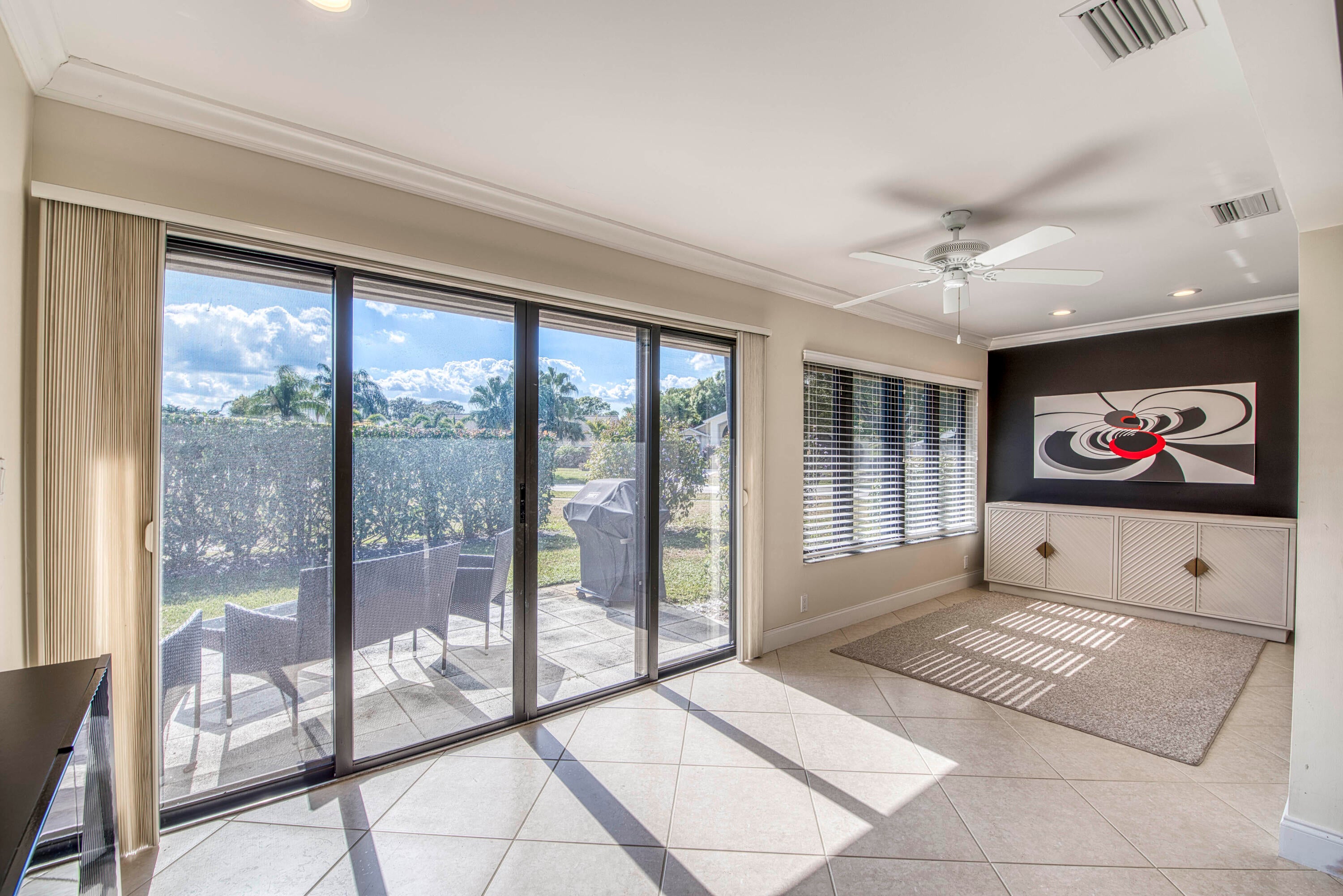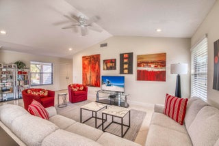 Welcome home to this delightful, bright and updated home in Eastpointe Country Club featuring a mostly open floor plan with 3 bedrooms and 2 full baths. The living room and dining room are open to each other w/tile floors and volume ceiling and sliders across the back to the yard. The primary is spacious with updated double vanity, separate water closet w/toilet & shower, walk-in closet. Both guest rooms have walk-in closets. The cherry kitchen is waiting for you to make your favorite meal. Enjoy the life at Eastpointe with 2 golf courses, tennis, pickle ball and a nice array of activities. Close to shopping and restaurants!