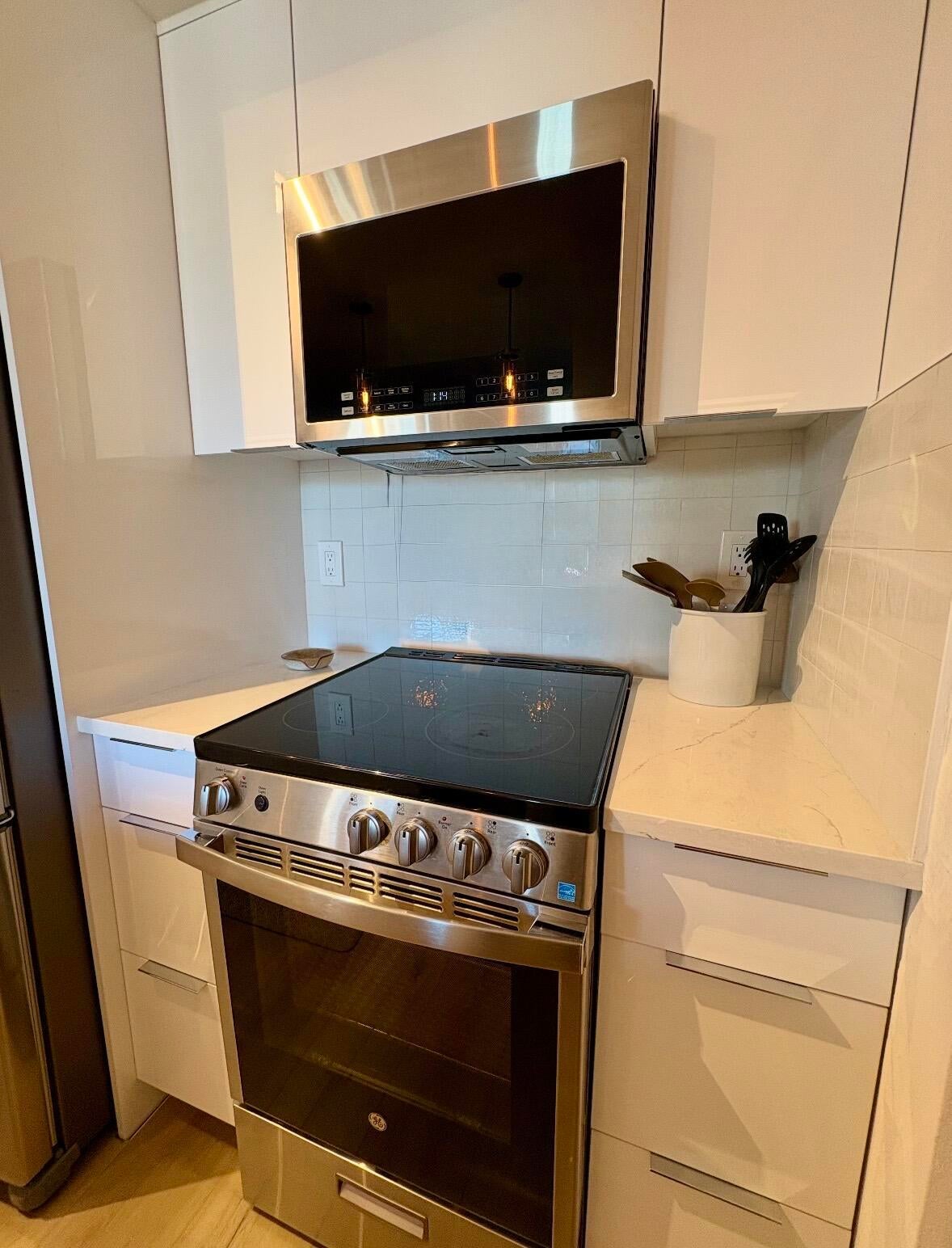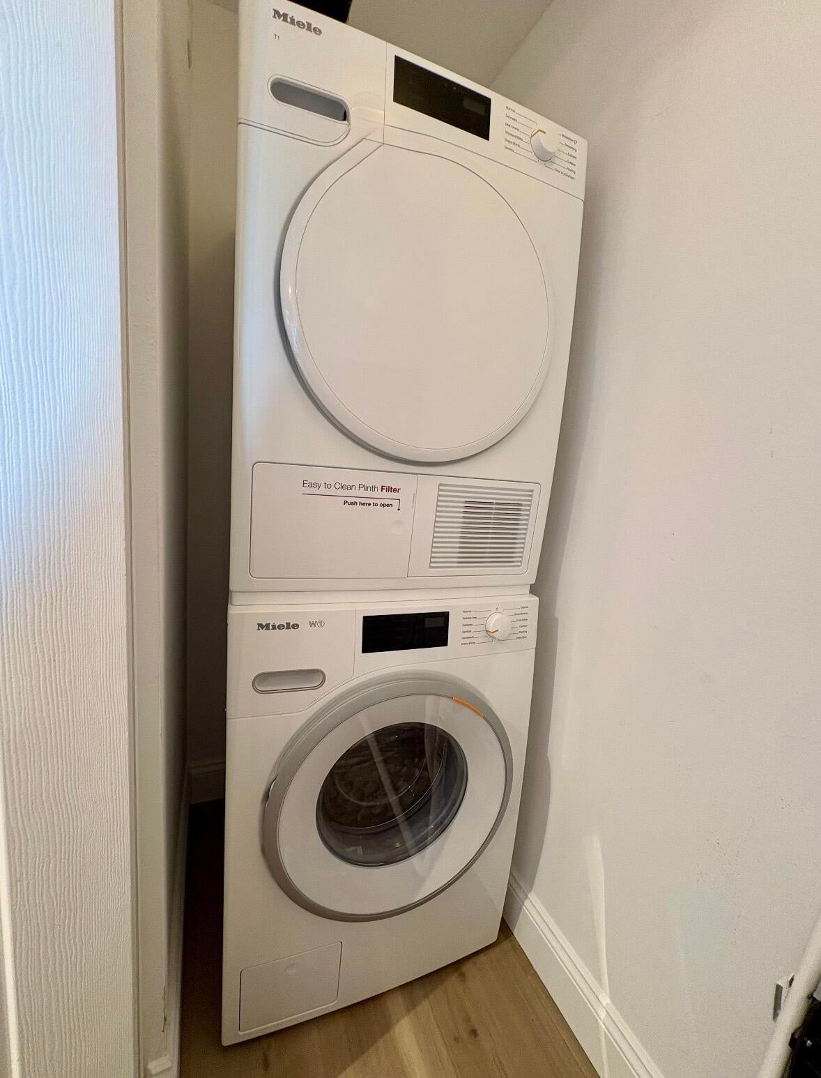 Enjoy upscale downtown living in this beautifully furnished, oversized studio facing north with breathtaking city views. This light-filled residence features high ceilings, an open layout, and an abundance of natural light throughout. The newly renovated kitchen showcases quartz countertops, stainless steel appliances, and a stylish coffee bar, perfect for starting your mornings right. You will find the washer and dryer are conveniently located in-unit, and the spacious bedroom area includes a generous walk-in closet. The large private covered balcony offers the perfect place to relax and take in the city skyline. The oversized bathroom features quartz countertops and ample space, adding to the home's modern appeal.The Prado offers exceptional amenities including a 24-hour front desk, resort-style pool, hot tub, fitness center, sauna, and social room. One assigned parking space in the building garage is included. Ideally located in the heart of Downtown West Palm Beach, you're just steps from shopping, dining, entertainment, the Brightline station, and the waterfront. Enjoy easy access to Palm Beach Island via the North or South Bridge , making beach days effortless. Come and see what downtown living has in store for you!