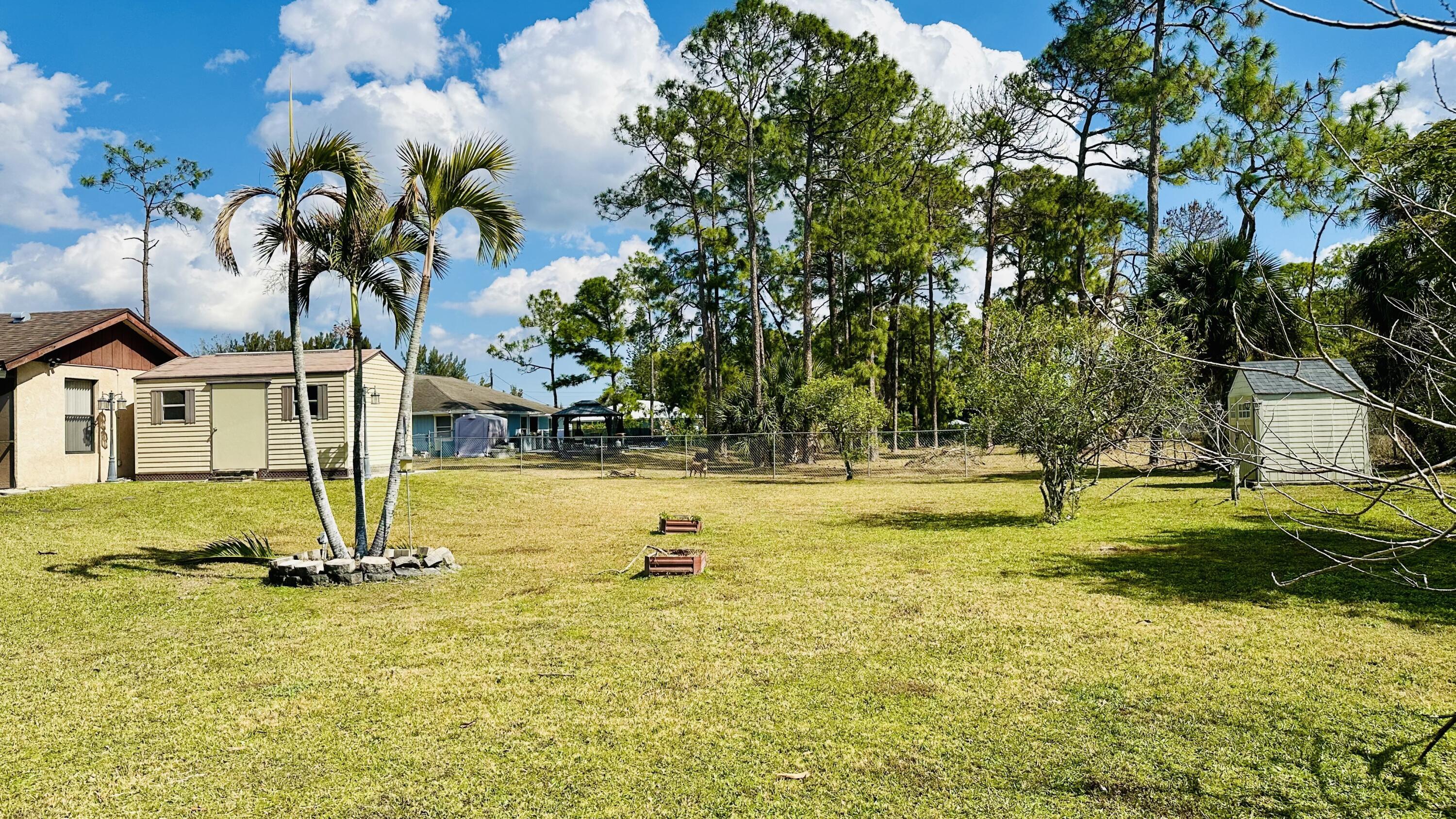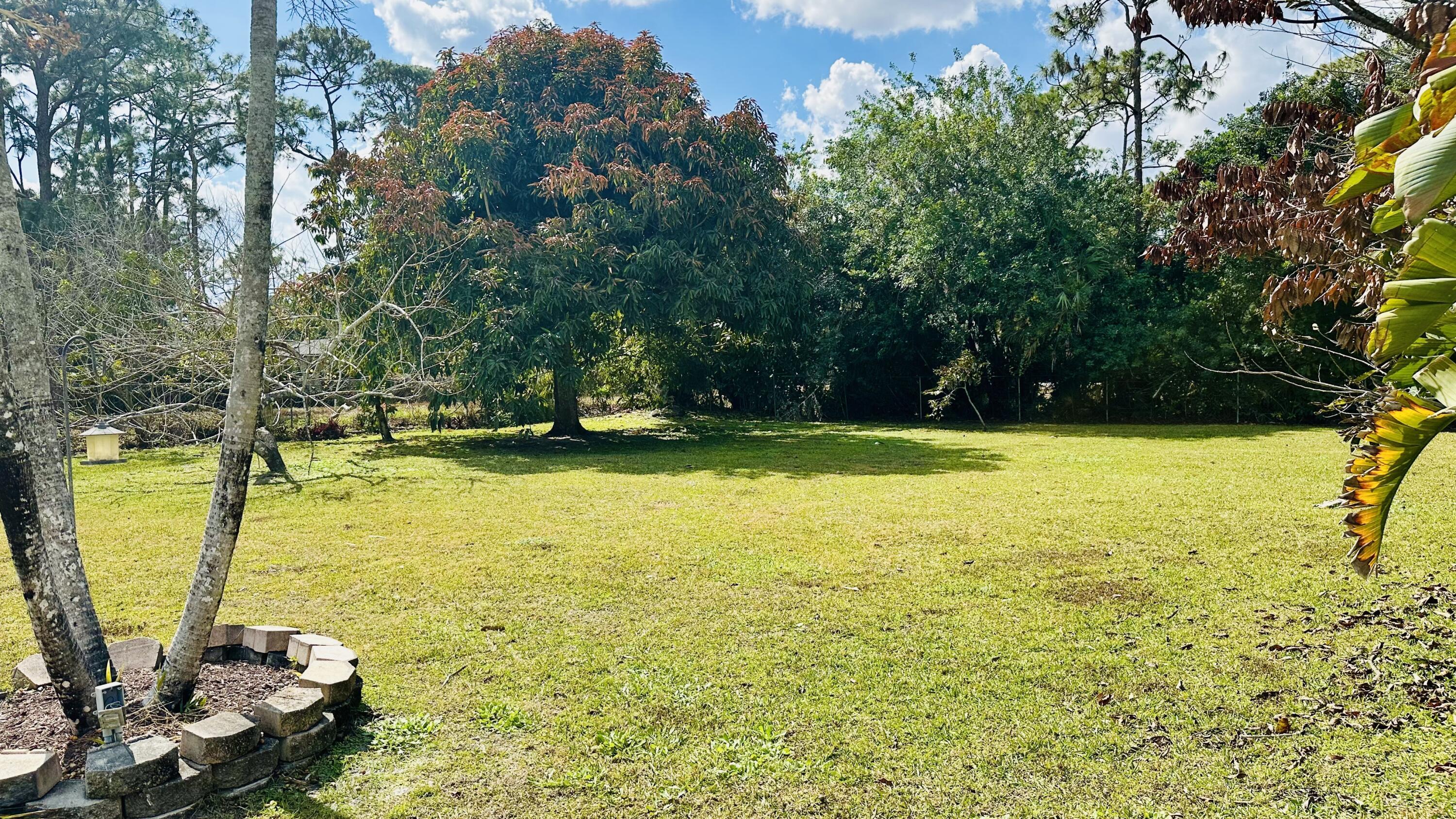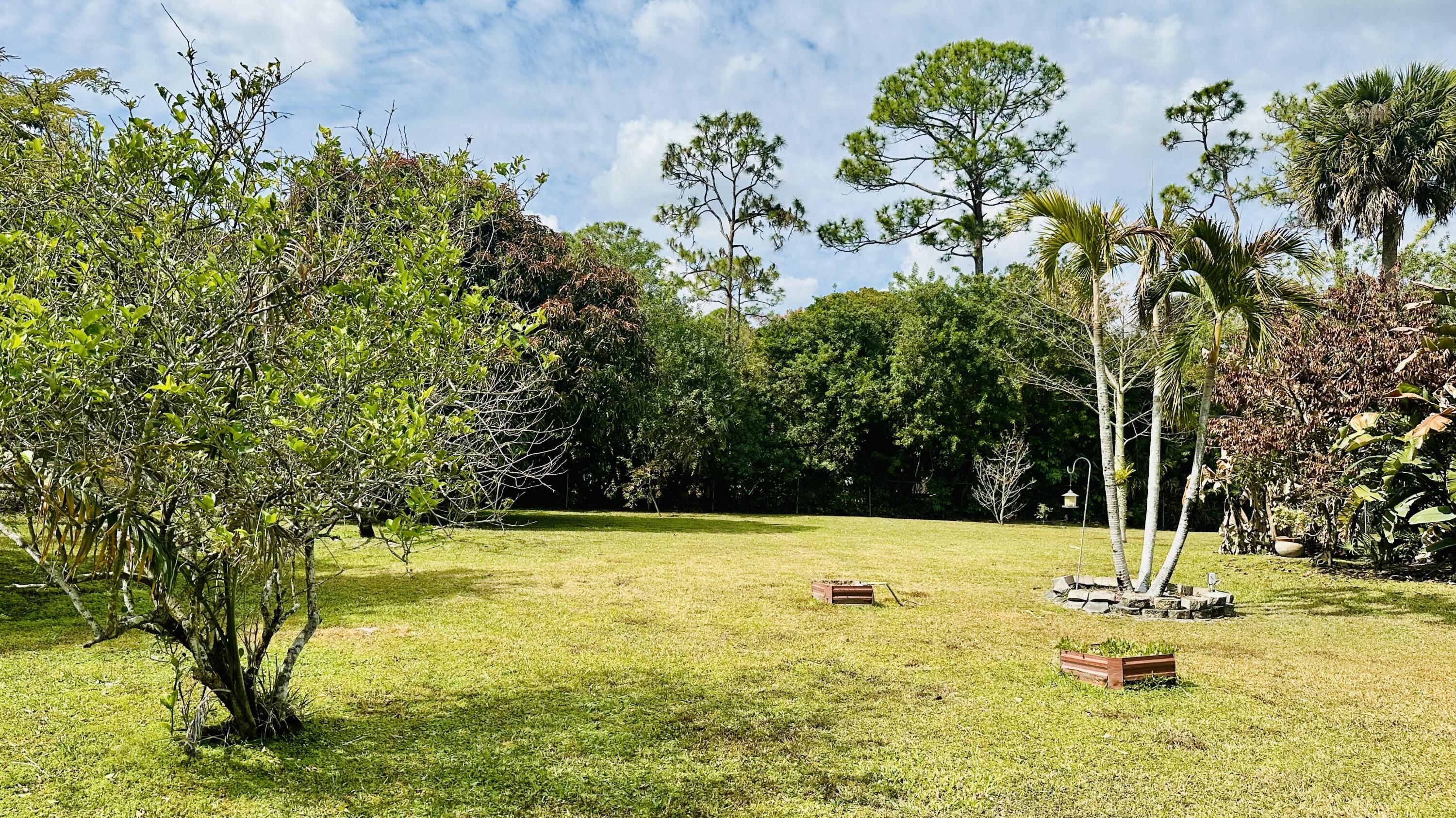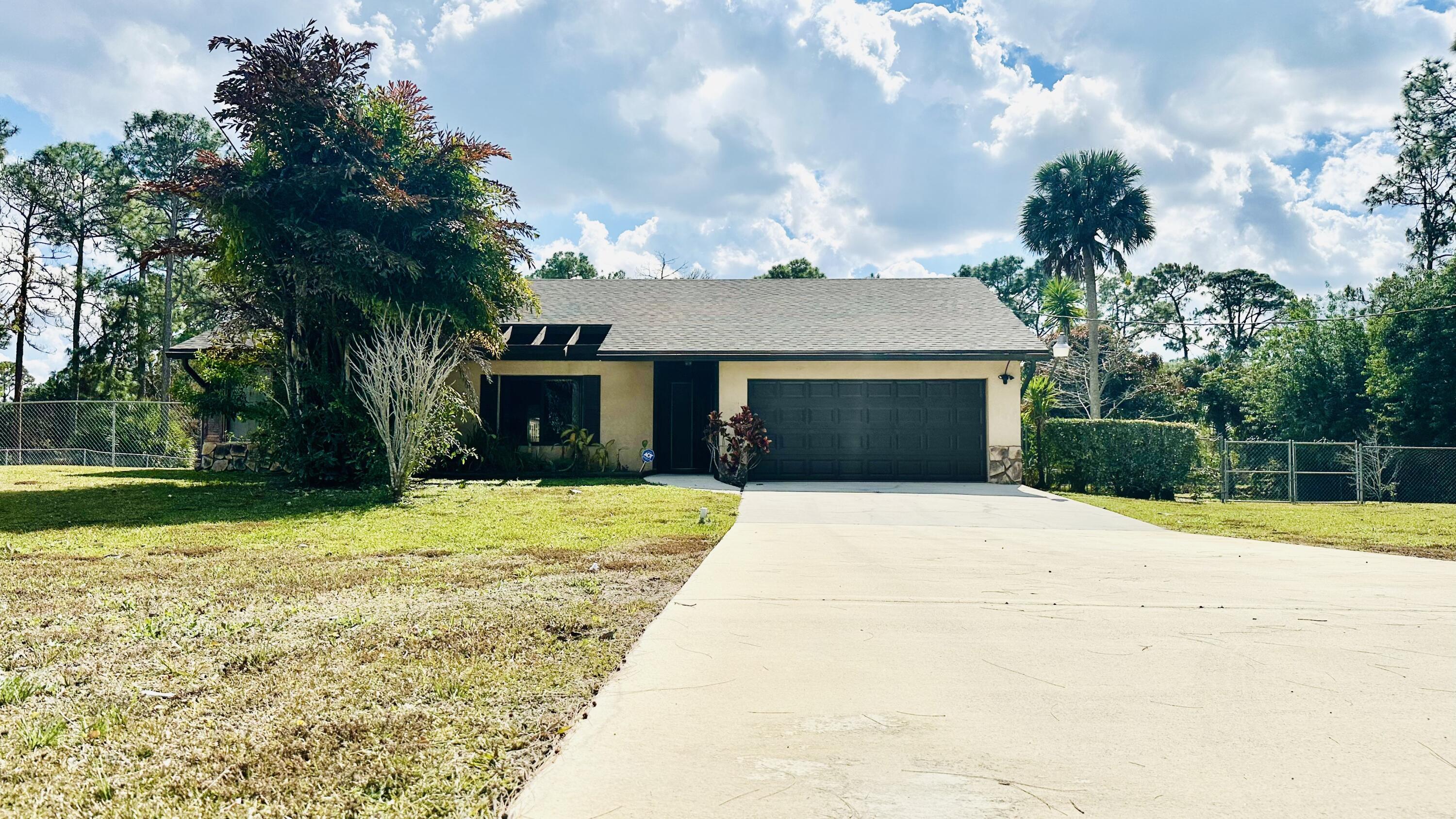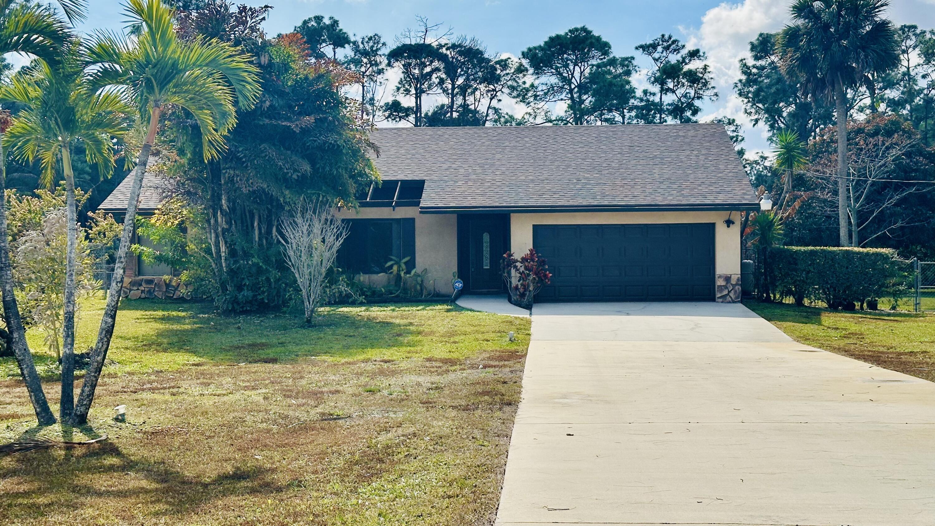 Charming single-family home for rent in The Acreage, West Palm Beach, situated on a spacious 1.25-acre lot. A long, private driveway lined with open green space welcomes you to the home, offering both curb appeal and extra privacy as you arrive. This beautiful property features 4 bedrooms and 2 bathrooms, plus a 2-car garage with plenty of parking for trucks, boats, and RVs. Enjoy a relaxing screened patio perfect for outdoor living. New roof and new A/C. The property is filled with mature trees and fruit plants, including mango, banana, fig, orange, and sugar apple trees, creating a peaceful, tropical setting. Conveniently located close to shopping plazas, restaurants, and everyday amenities.
