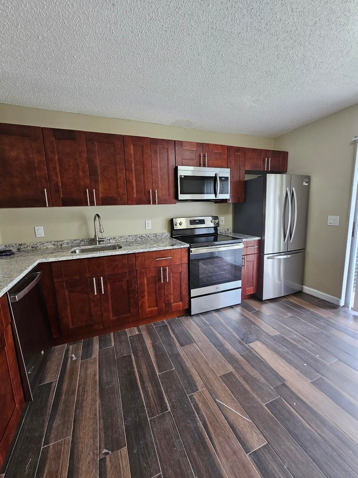 Looking for the perfect home that combines comfort, convenience, and style? Welcome to this beautifully renovated 3-bedroom, 2-bathroom townhouse offering 1,392 sq ft of modern living space. This home features a custom-designed kitchen with wood cabinets, stainless steel appliances, and granite countertops. Elegant laminate flooring runs throughout the entire home, and both bathrooms have been renovated with new vanities. Conveniently located just minutes from Palm Beach International Airport, I-95, Florida Turnpike, and major roads, making commuting a breeze. With its sleek design and prime location, this townhouse is perfect for homeowners or investors. Investor-friendly community with the ability to rent immediately; current market rent approximately $2,300. A great opportunity.