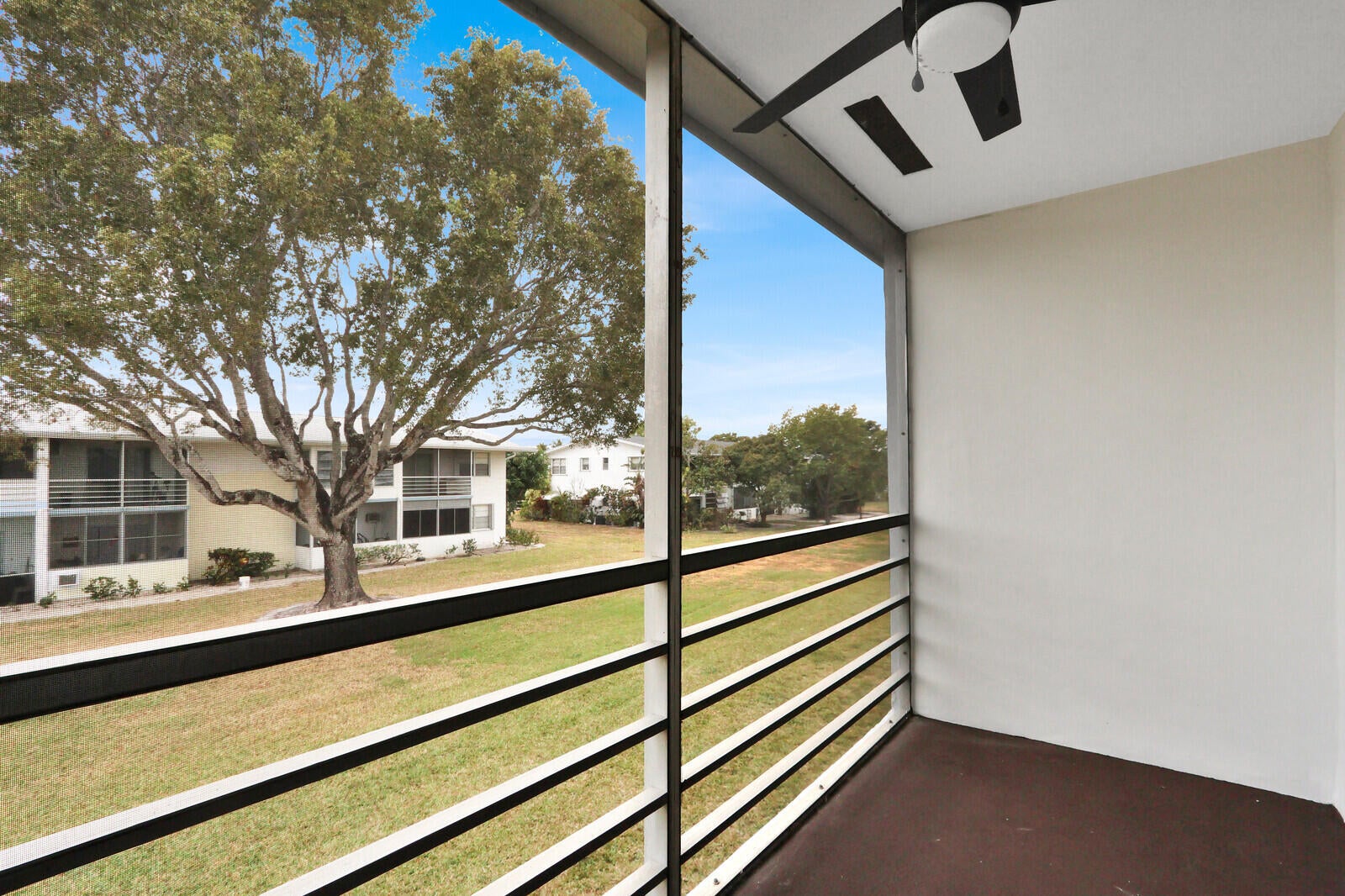 Welcome to easy Florida living in this sun-filled 2-bedroom corner condo in Norwich H at Century Village. You'll love the granite countertops, new ceiling fans, and the added savings and security of impact windows, front door and sliders installed in 2025. The home is clean, updated, and truly move-in ready, with a screened patio off the bedrooms for enjoying the breeze. The building shines with updated cement work, fresh paint, and a beautiful courtyard setting. Plus, there's a working laundry room close by for convenience. A/C maintained every six months for peace of mind. Pet friendly (up to 25 lbs.). Rentals permitted after 3 years of ownership. COA is $464.32 & POA is $185.29. *Some photos may be Virtual staged.