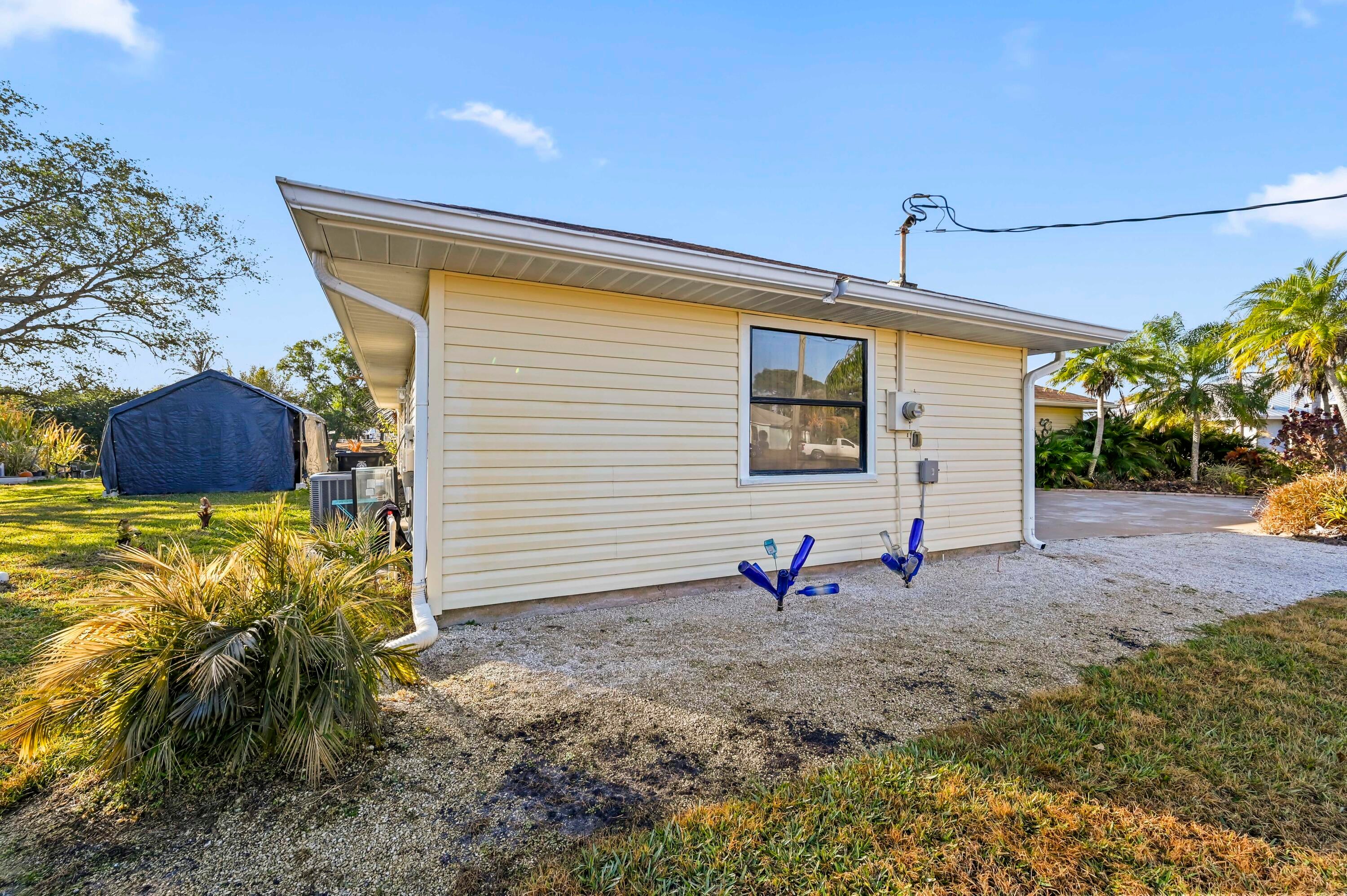 *Open house 02/22 1-3* This property offers a lifestyle that is increasingly hard to find in Florida. Space, location & privacy! This home provides the ''elbow room'' and natural ambience most Florida lots lack. This quiet, oversized cul-de-sac lot is the perfect canvas to add a custom pool, detached garage/workshop or both. Featuring lush landscaping and mature fruit trees, the expansive yard leads to a private tributary perfect for kayaking and fishing. Short distance to pristine beaches, I-95/Turnpike, downtown Jensen, Stuart and Ft. Pierce and shopping and dining. AC & water heater six years of age. Leaseback optional. All dimensions are provided as a courtesy accuracy is not guaranteed and should be independently verified by the buyer.