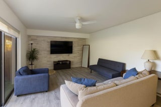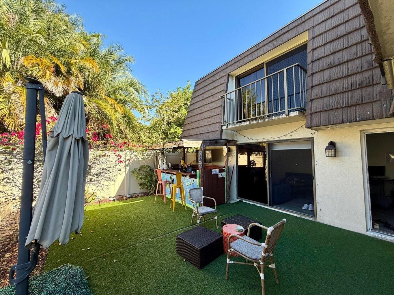 Spacious 2-bedroom, 2.5-bath two-story townhome with private fenced patio. First floor features an open living area, modern kitchen with Samsung gunmetal gray stainless steel appliances, dining area, laundry, and half bath. Upstairs offers two bedrooms, each with its own private en-suite bath (dual master layout). Fully turfed patio with tiki bar. Rent includes high-speed fiber internet, lawn care, exterior pest control, water, and sewer. Amenities include two parking spaces, guest parking, and access to the community pool, tennis, basketball, and racquetball courts. Conveniently located less than 7 miles from Downtown West Palm Beach, under 5 miles from Tanger Outlets, and under 2 miles to I-95. Close to Wawa, Publix, dining, and shopping.