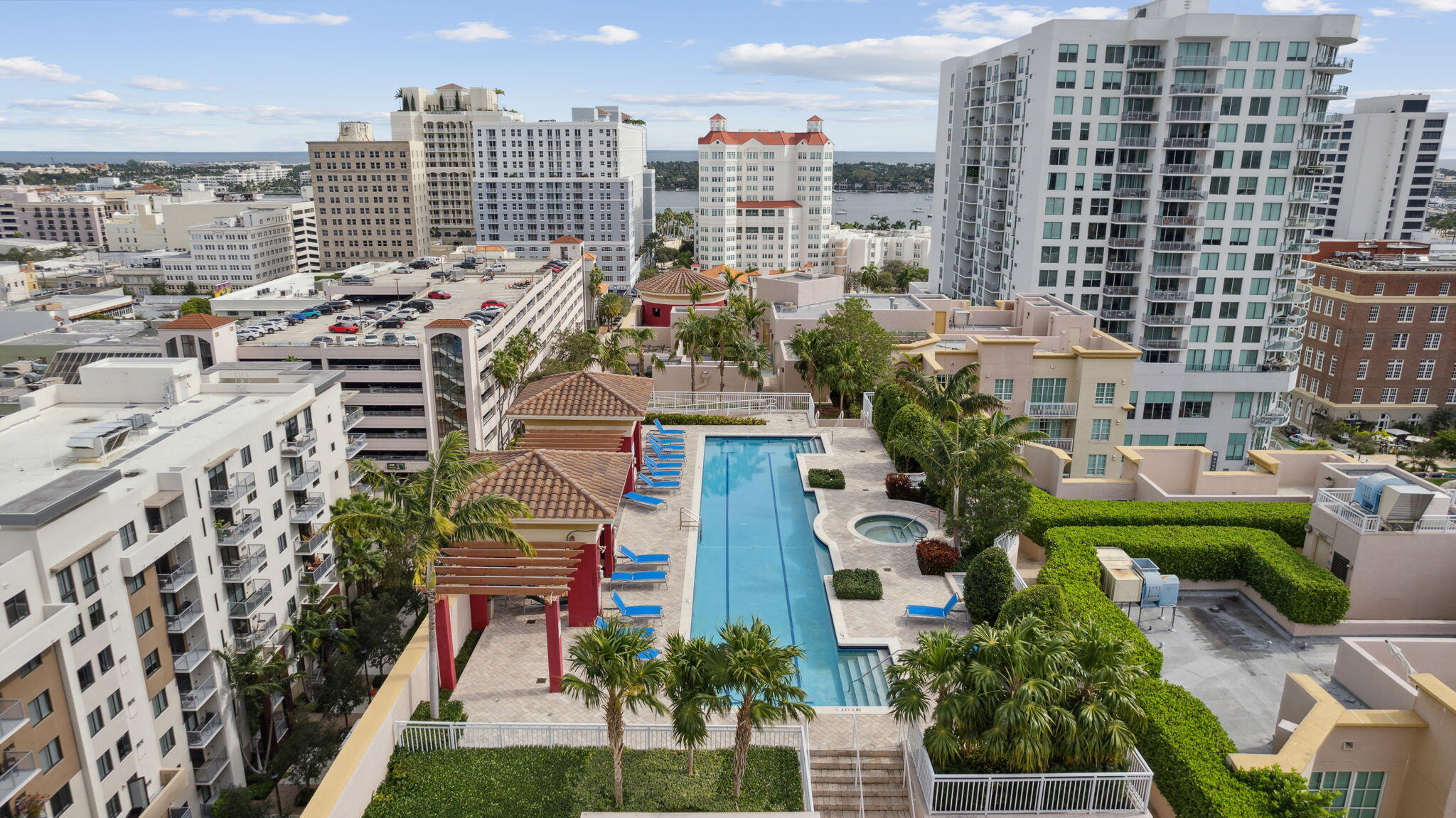 HEART OF DOWNTOWN ~ Plenty of natural light in this luxuriously furnished condo. Featuring high ceilings, tile/ marble flooring, granite countertops, stainless steel appliances, custom European cabinetry, large walk-in closets, hurricane impact windows and washer/ dryer in the unit. Amenities include lush landscape courtyards, rooftop pool, community room for private parties and outdoor BBQ grill, 24 hour fitness center, 24 hour front desk service and a gated garage. Clematis Street and Rosemary Square contains dining, events and shopping all within a 2 block radius. Rent includes Water/Sewer/Trash, and basic cable/ wifi. Second bedroom features a pull out sofa, queen size bed. Min 6 month rental, 9 month term preferred.
