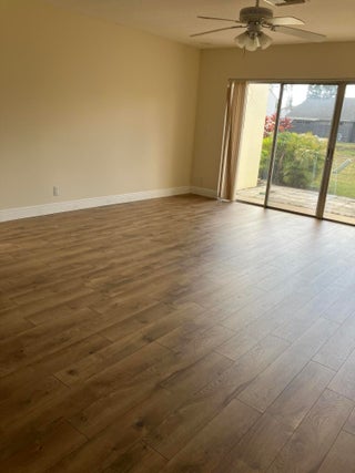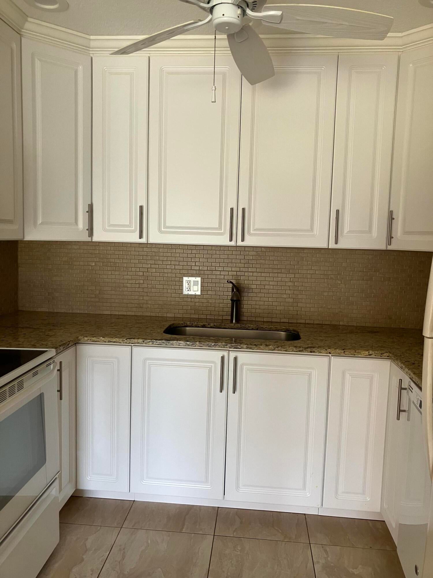 Look no further - Fully redone and ready for move-in - This is a wonderful one bedroom with a full bath - Fully equipped kitchen with range, refrigerator, microwave over the range, dishwasher, ceiling fan & LED ceiling lights & tile floor -The washer & dryer are inside - Very large Florida room gives so much for space & has LED ceiling lights - The living room also has LED ceiling lights - The bath is redone also - Your bedroom has blinds LED ceiling lights and ceiling fan for comfort plus a walk-in closet - There are two parking spaces directly in front assigned for you - The clubhouse, pool and amenities are walking distance from home - Close to all major roads and Palm Beach International airport